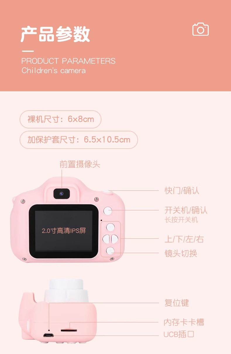 어린이 카메라 장난감 만화 고화질 더블 샷 단일 카메라 전자 장난감 디지털 카메라 학생 선물