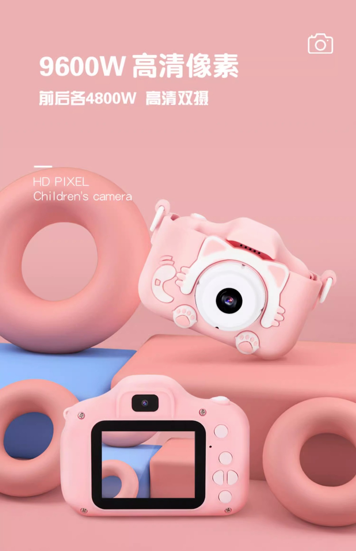 어린이 카메라 장난감 만화 고화질 더블 샷 단일 카메라 전자 장난감 디지털 카메라 학생 선물스토어 가기