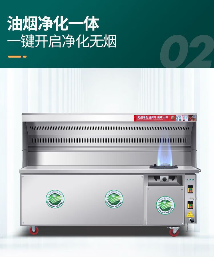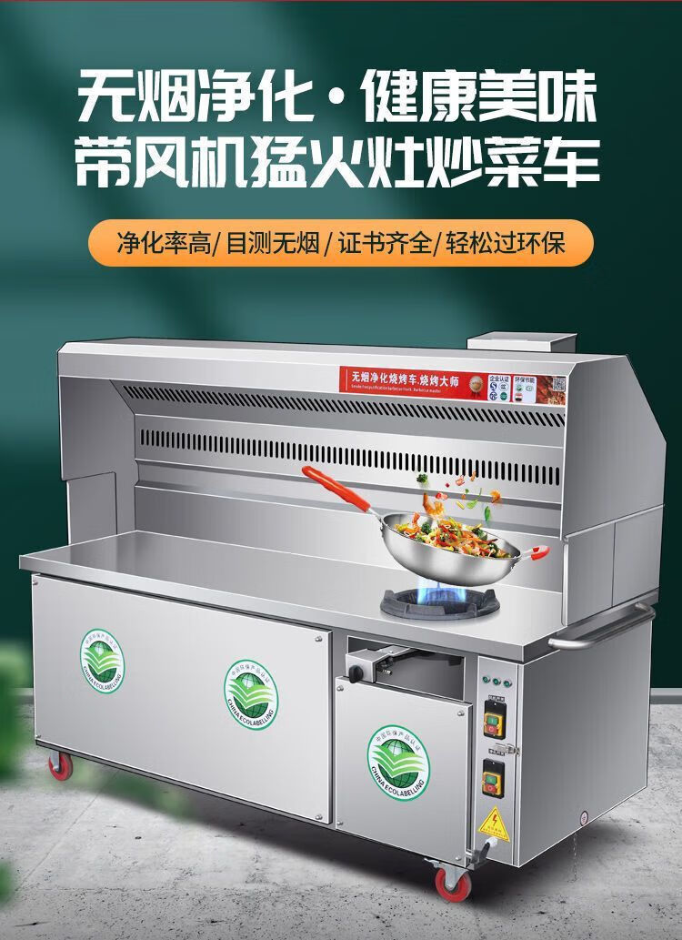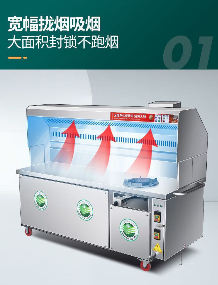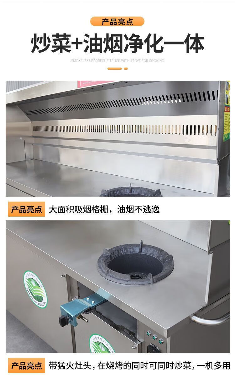 무연 정화 바베큐 카트, 정화 일체형 스토브, 스토브가 포함된 투인원 오븐, 상업용 가정용 친환경 가스 조리 카트