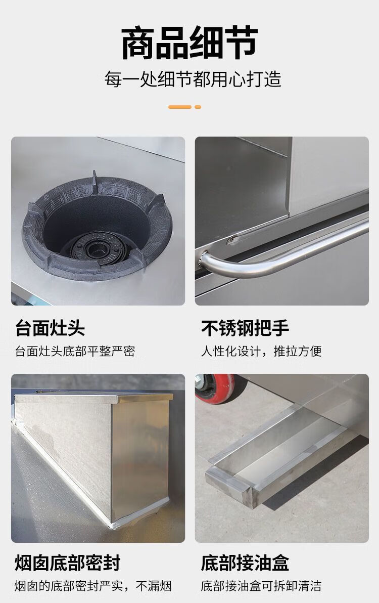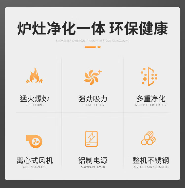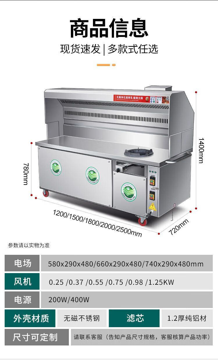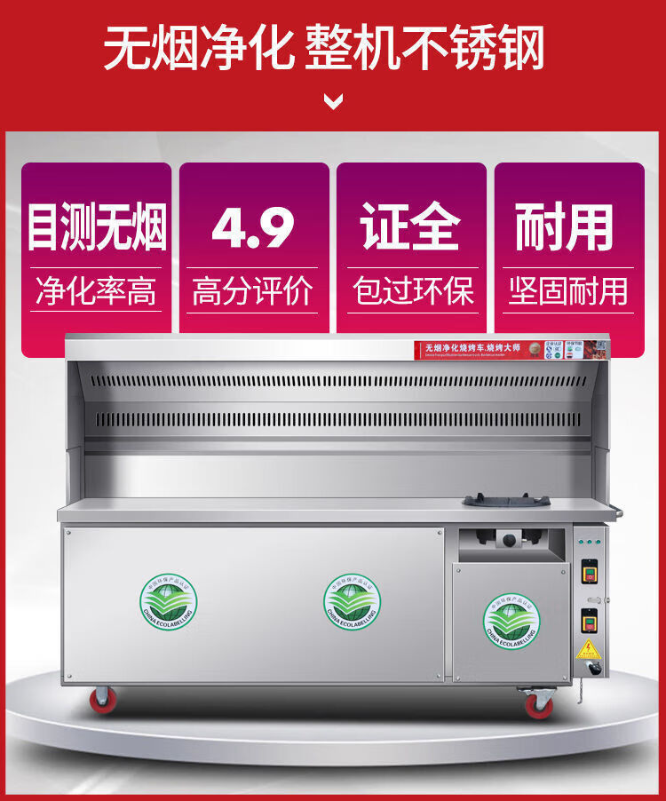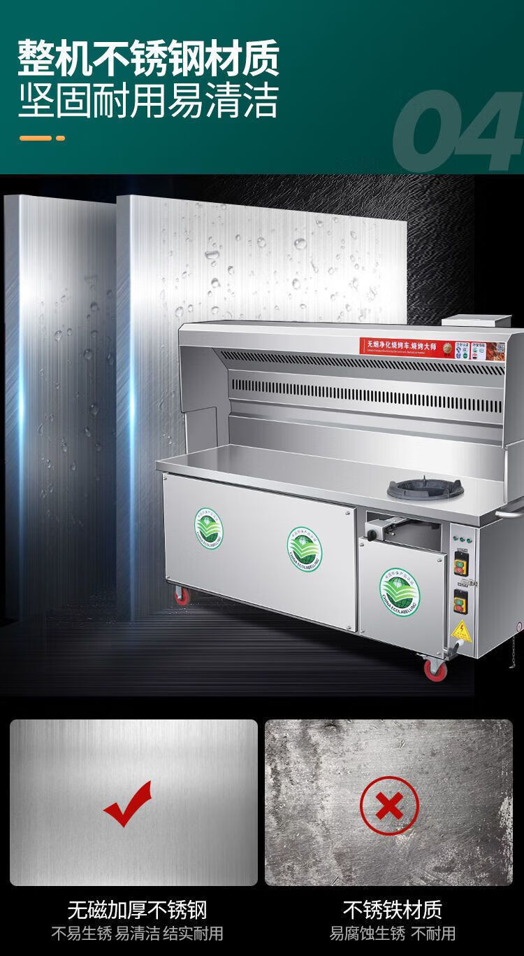 무연 정화 바베큐 카트, 정화 일체형 스토브, 스토브가 포함된 투인원 오븐, 상업용 가정용 친환경 가스 조리 카트