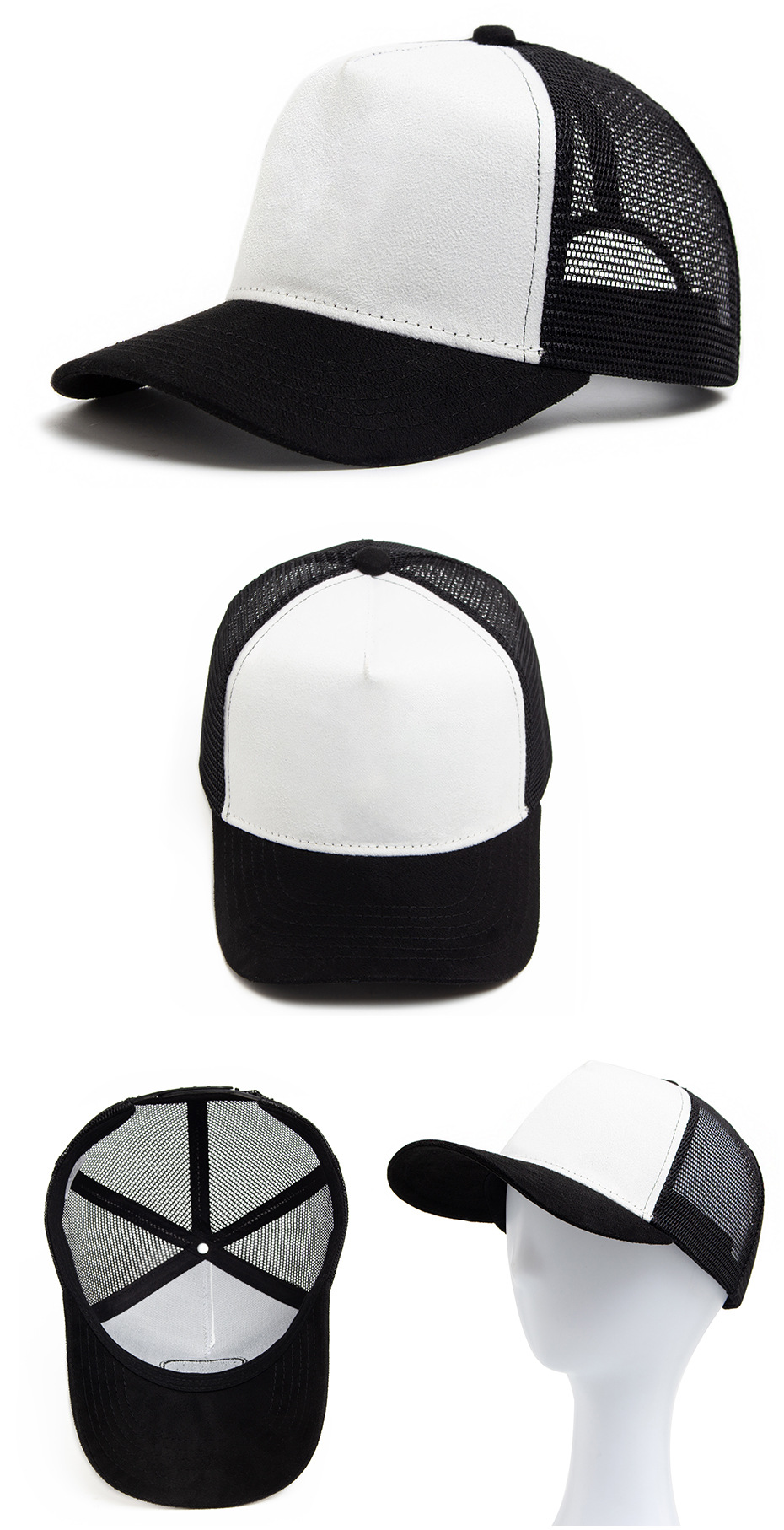 • 화이트 & 블랙 - 무지 스웨이드 야구 모자