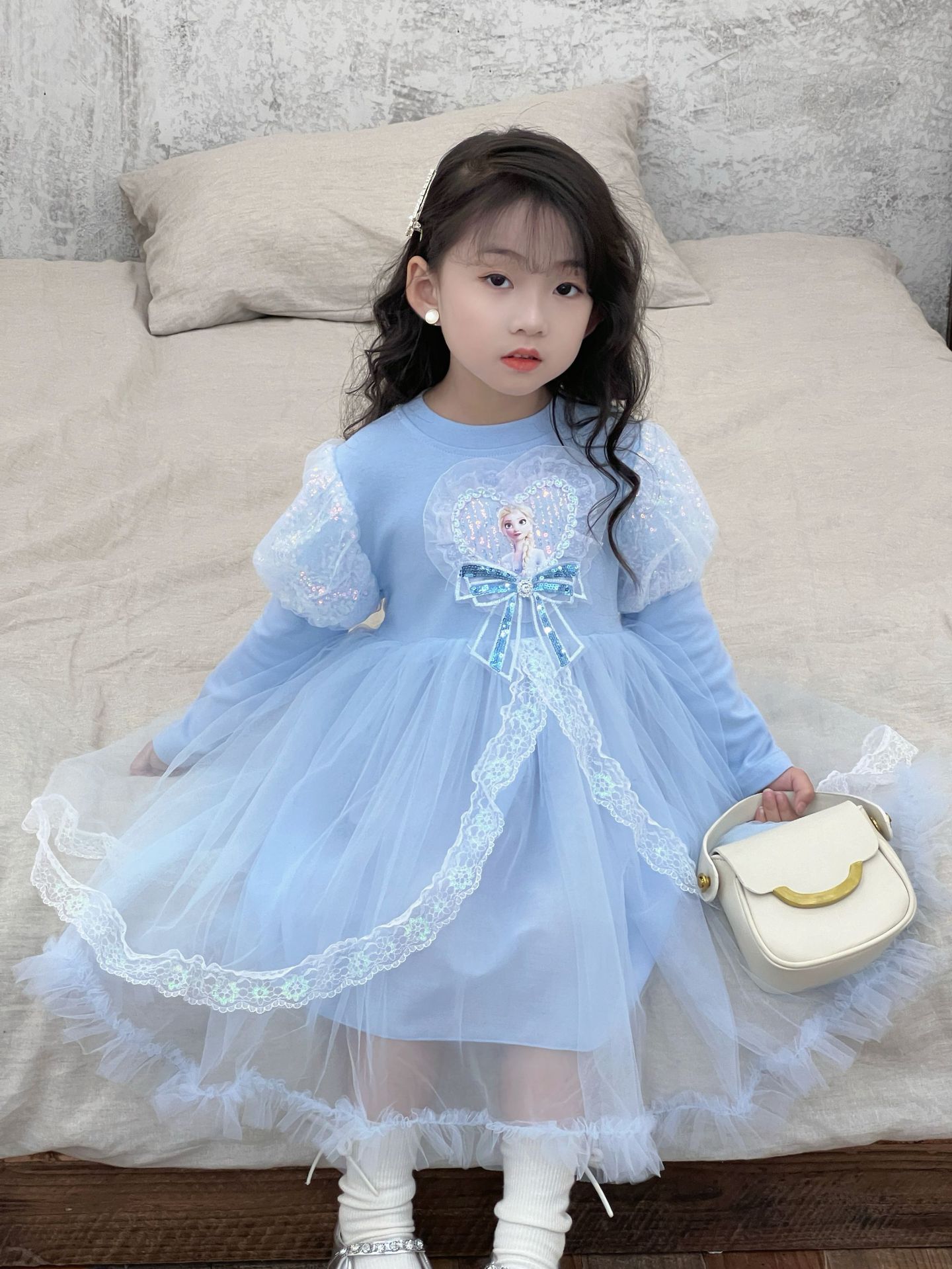 새로운 공주 아이샤 원피스 2024 가을 소녀 아이샤 냉동 아기 생일 원피스스토어 가기