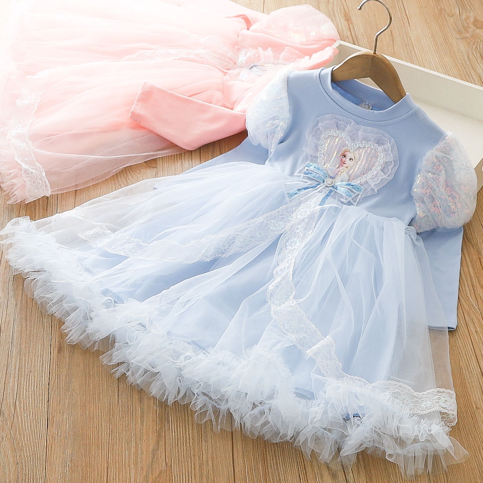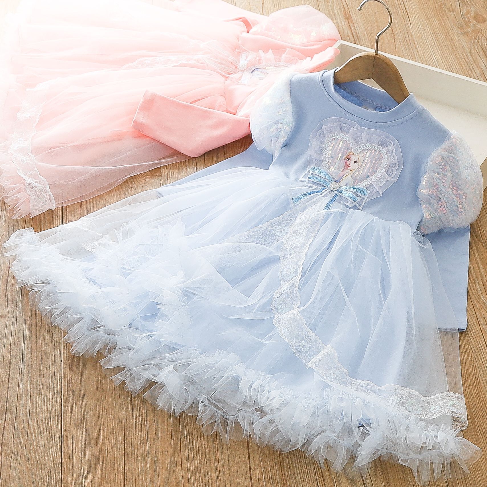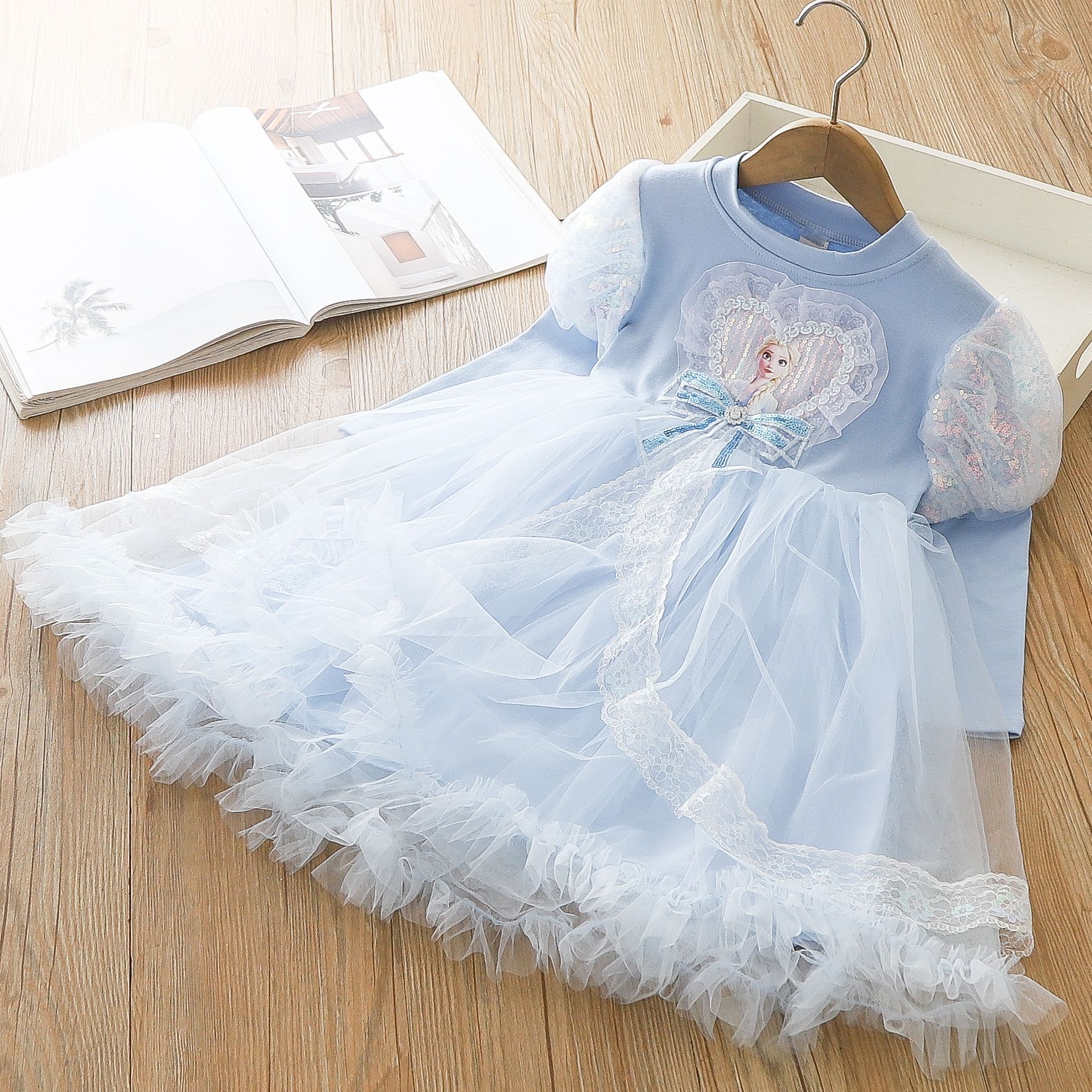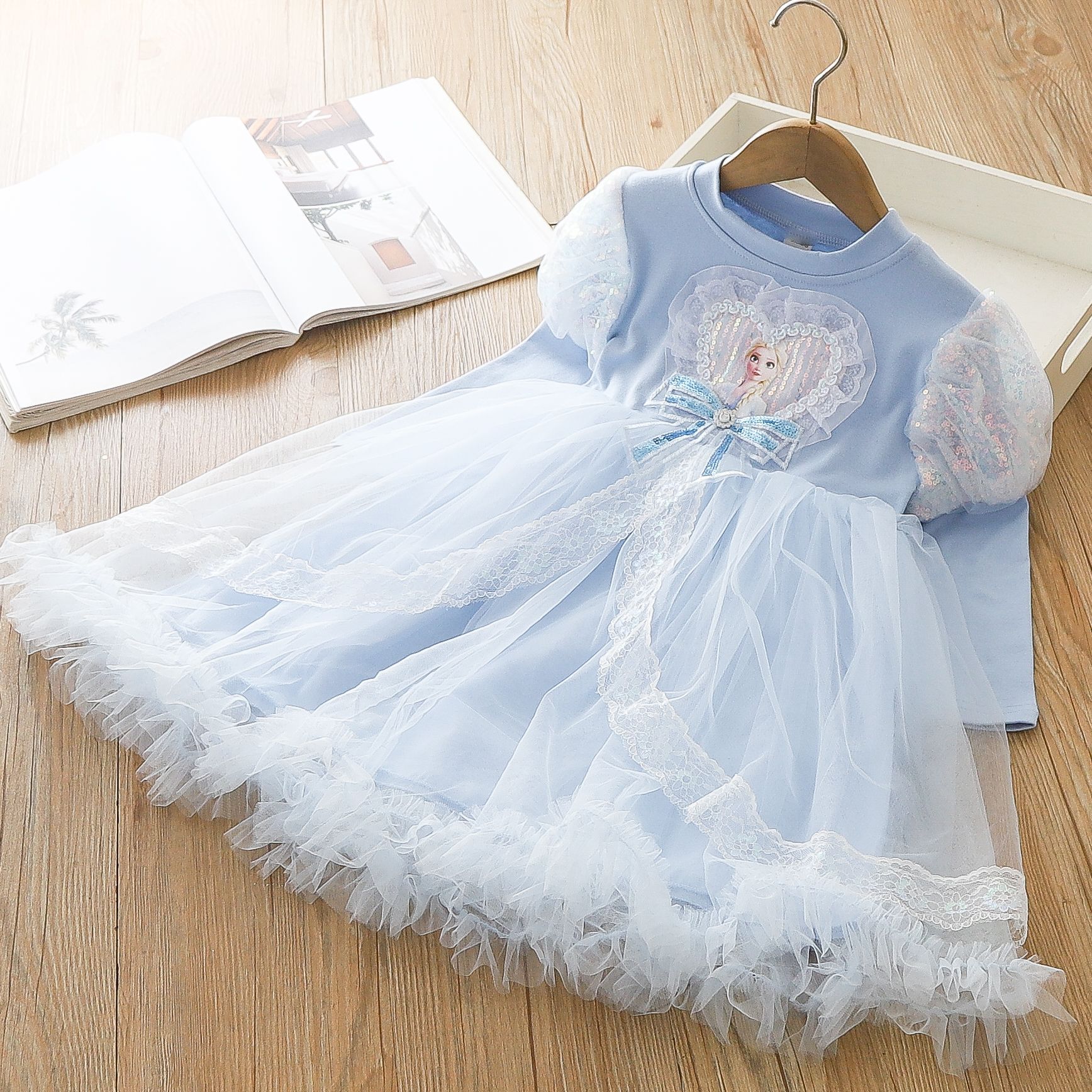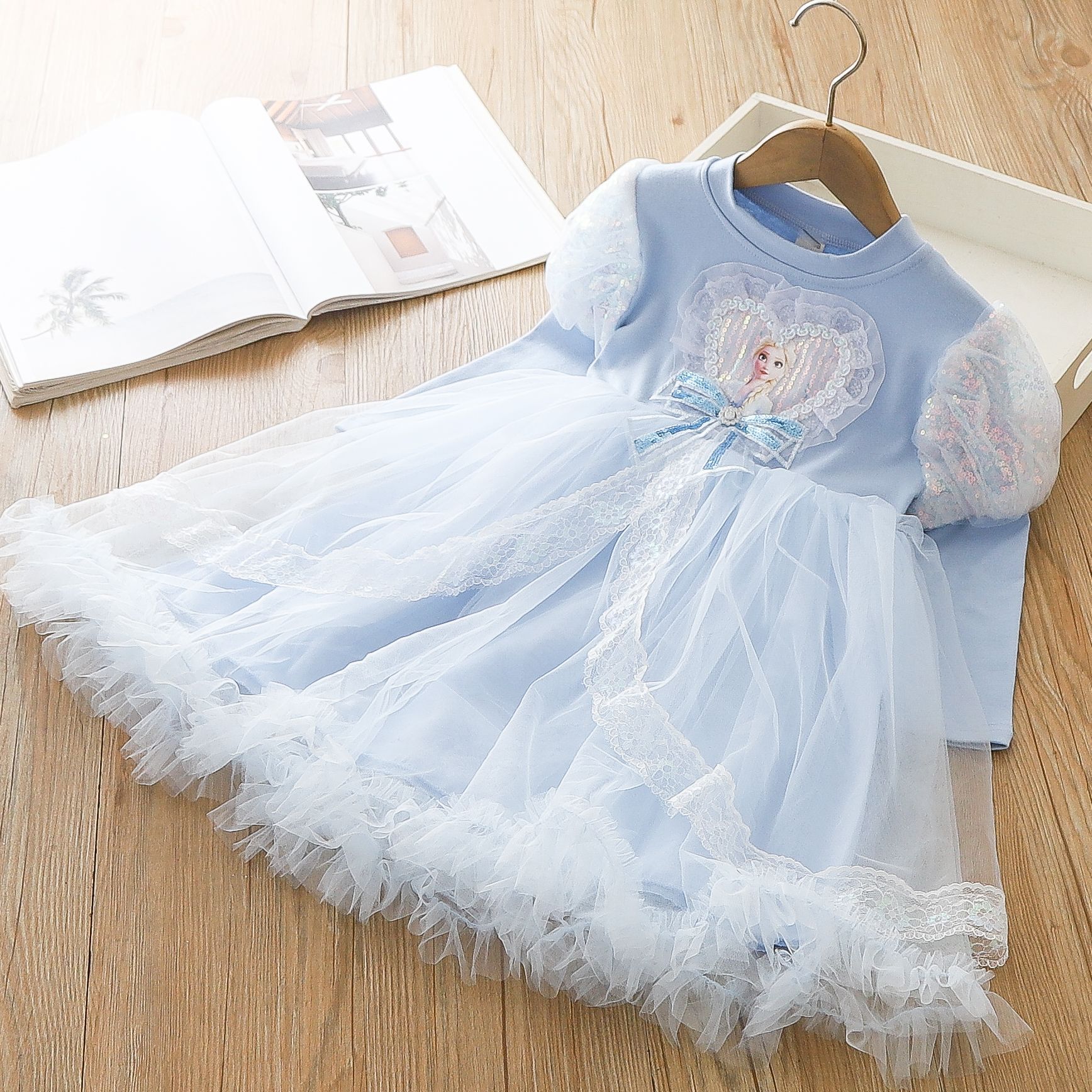 새로운 공주 아이샤 원피스 2024 가을 소녀 아이샤 냉동 아기 생일 원피스