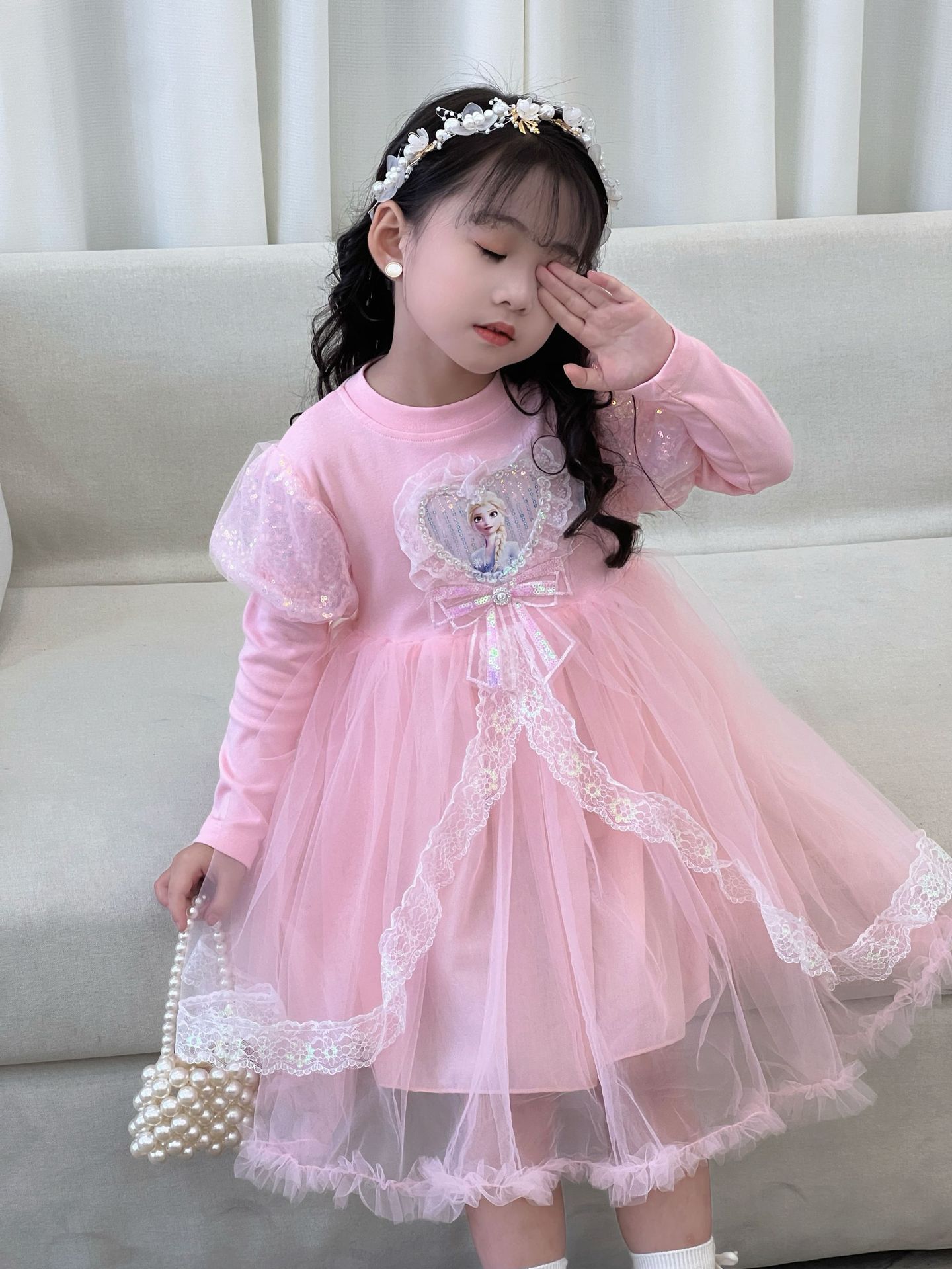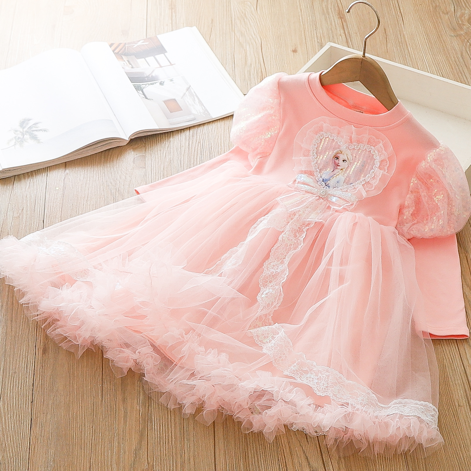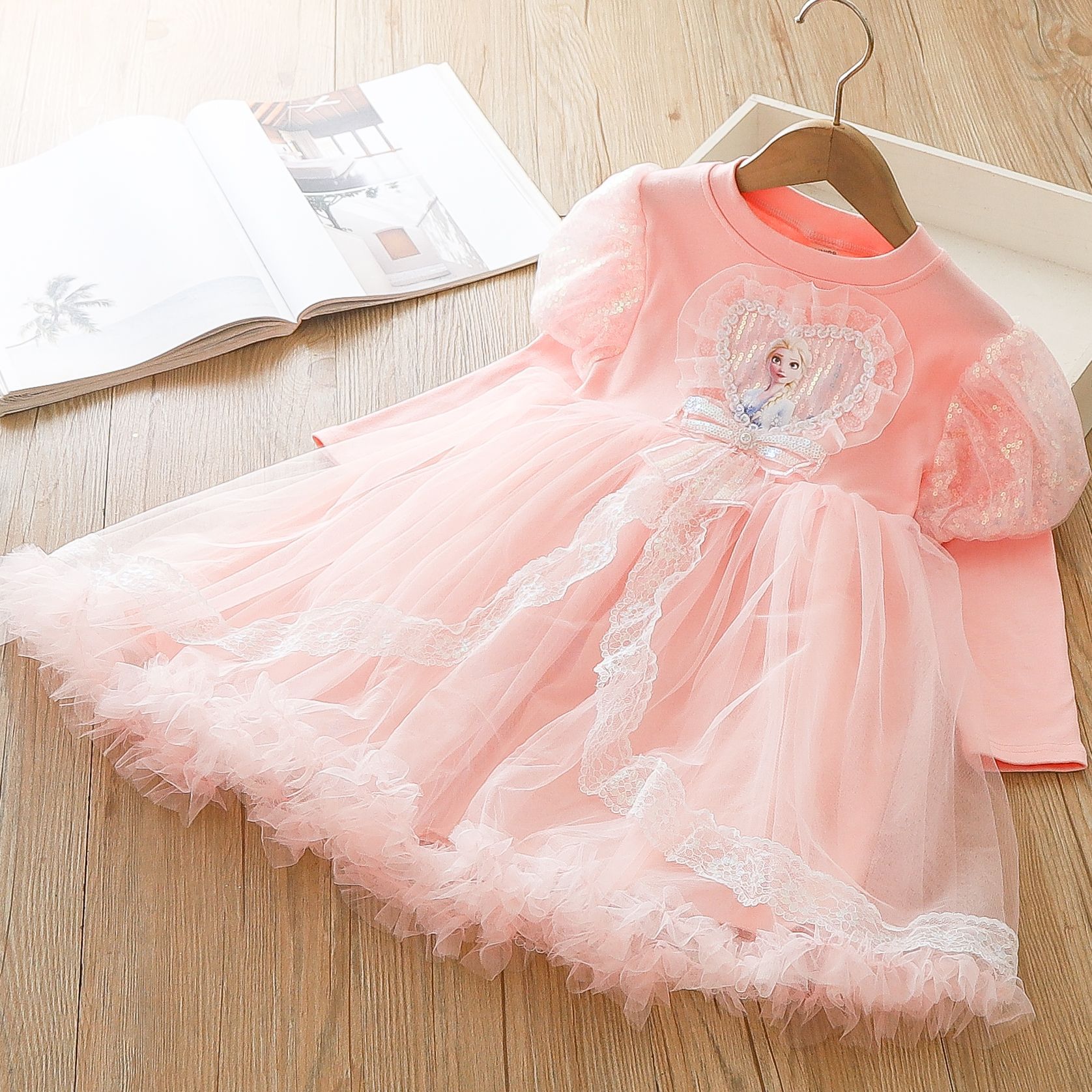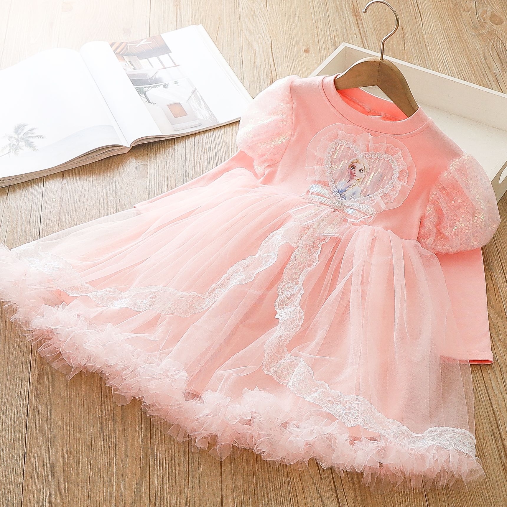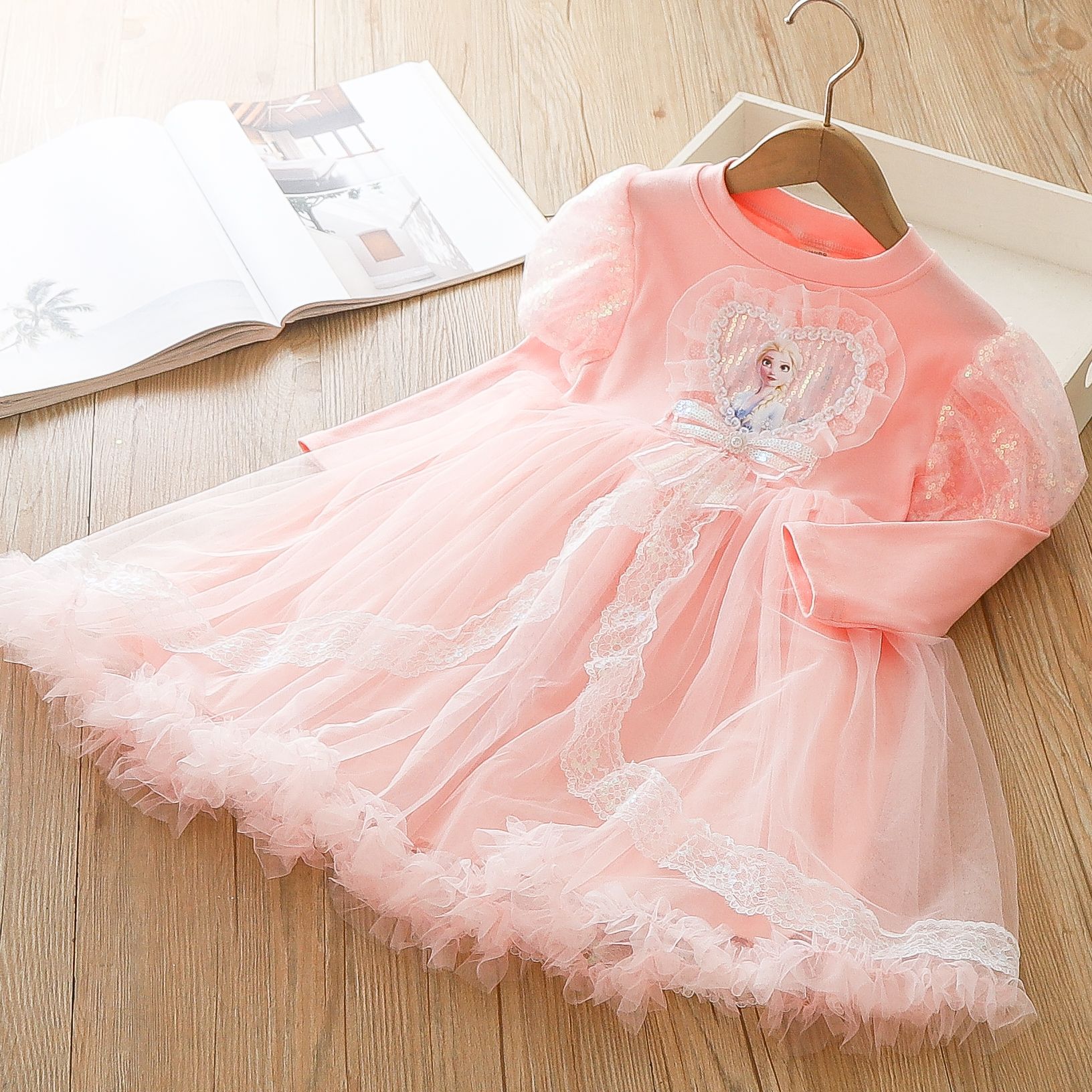 새로운 공주 아이샤 원피스 2024 가을 소녀 아이샤 냉동 아기 생일 원피스