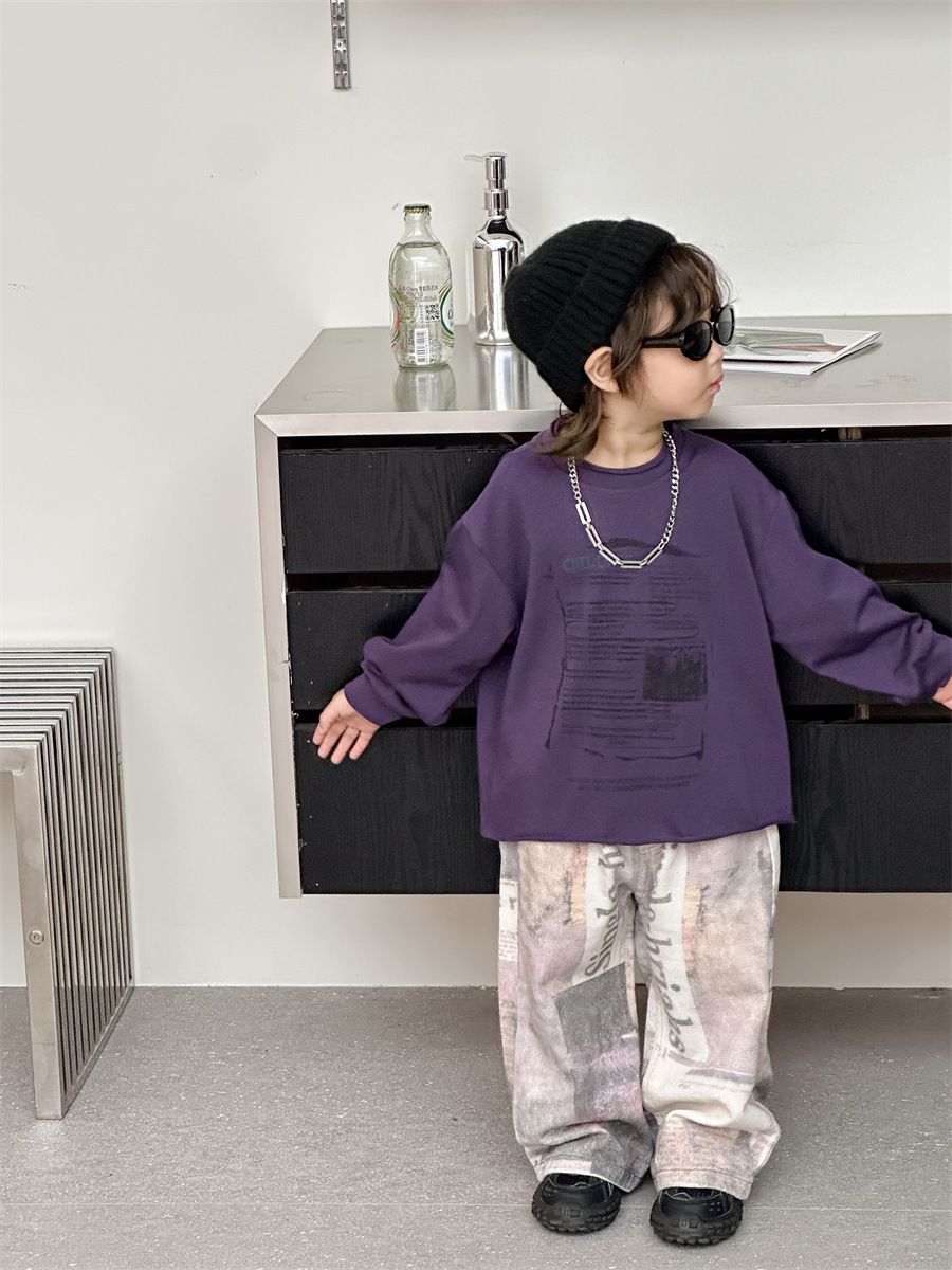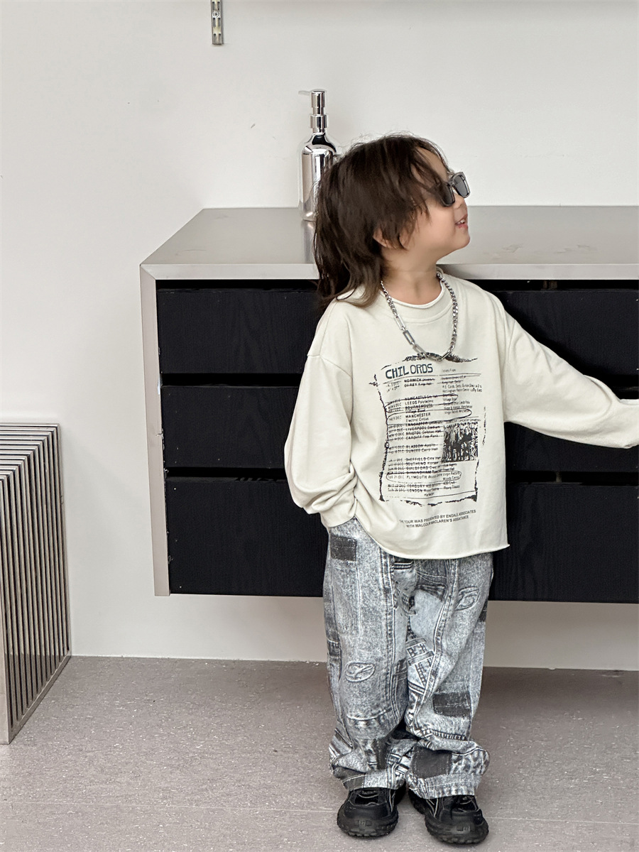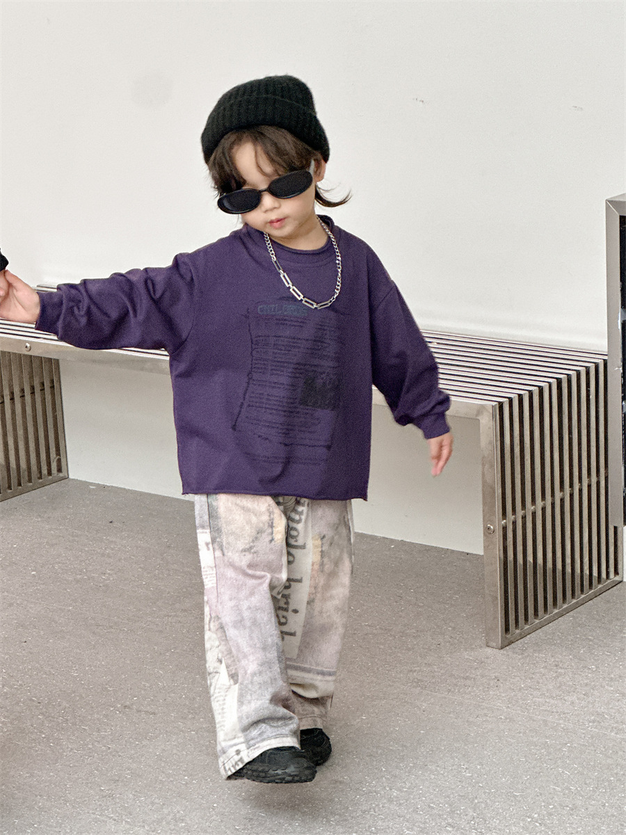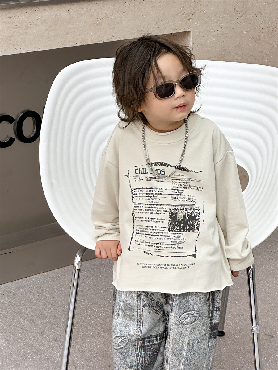 [7 월 23 일 새 우표] 면화 가게 소년 가을 한국 아동복 어린이 편지 프린트 긴팔 티셔츠스토어 가기
