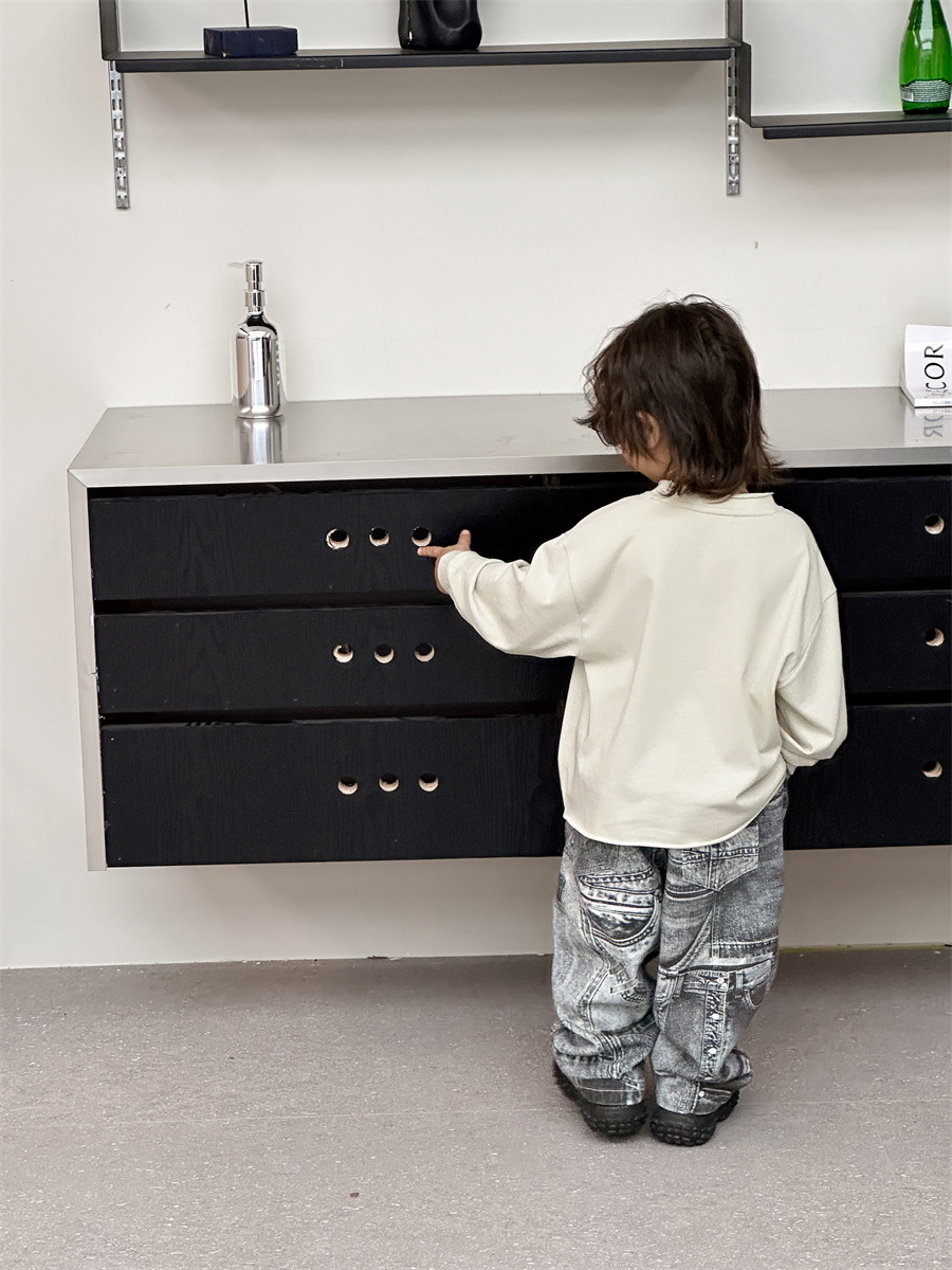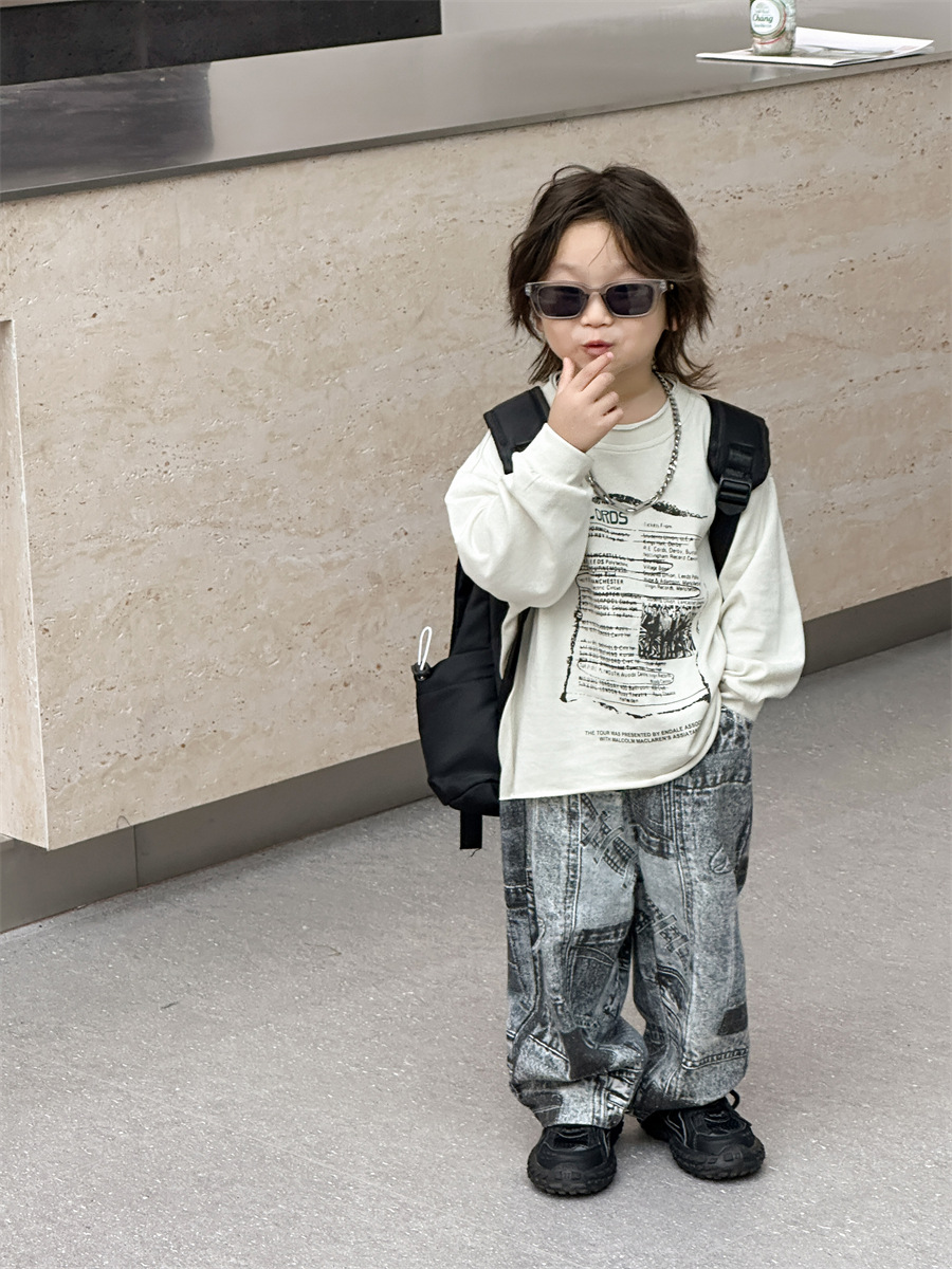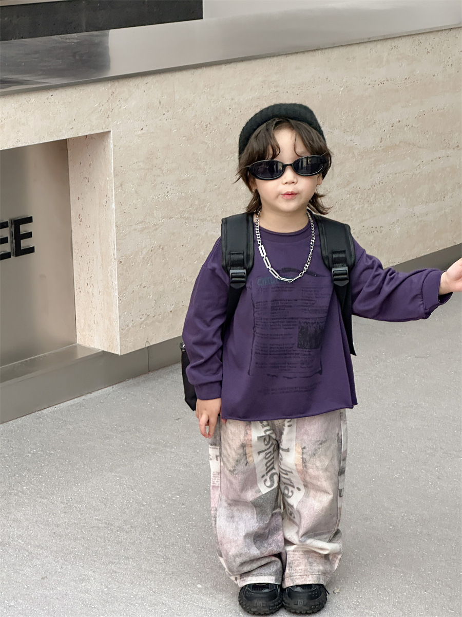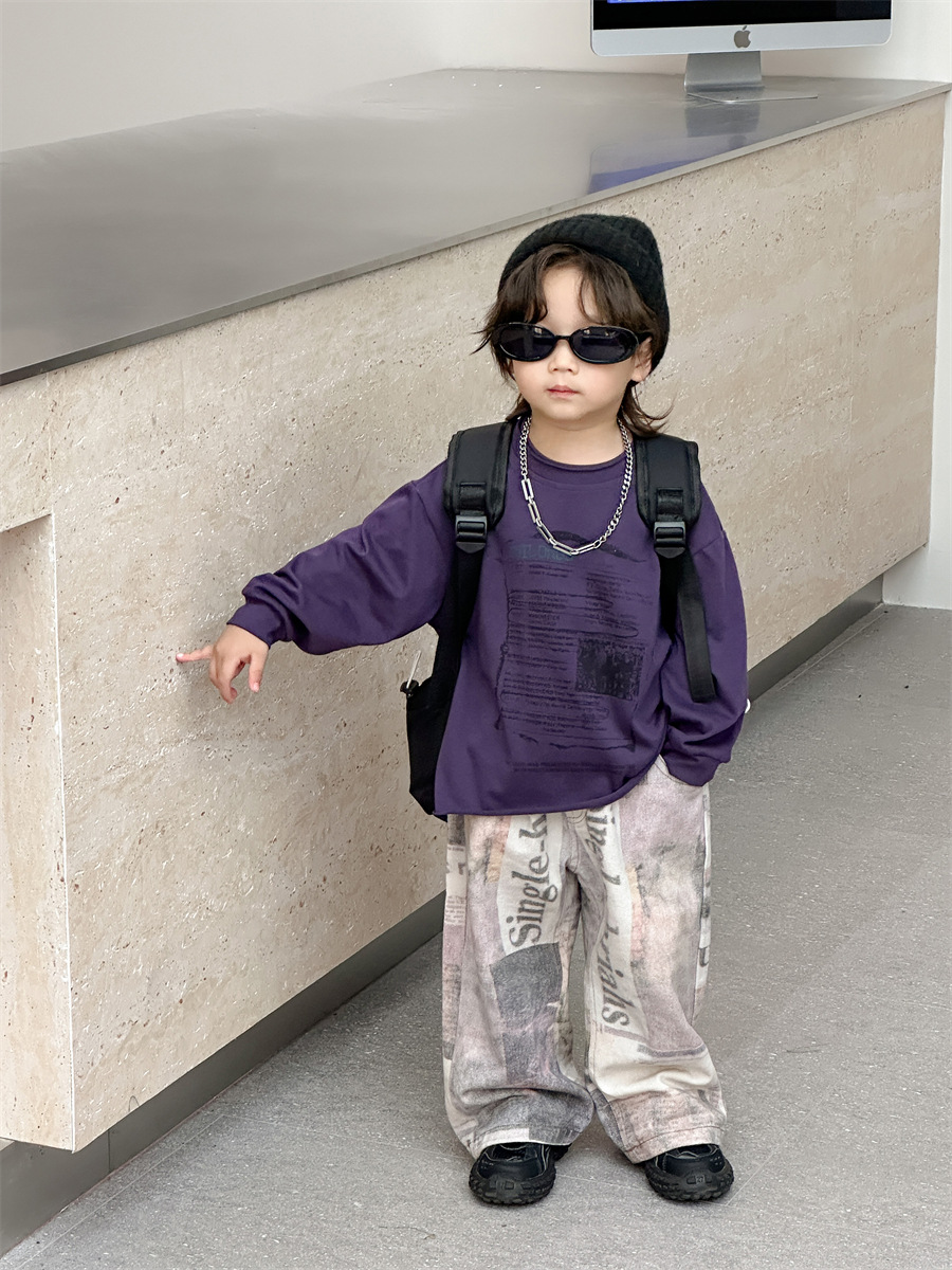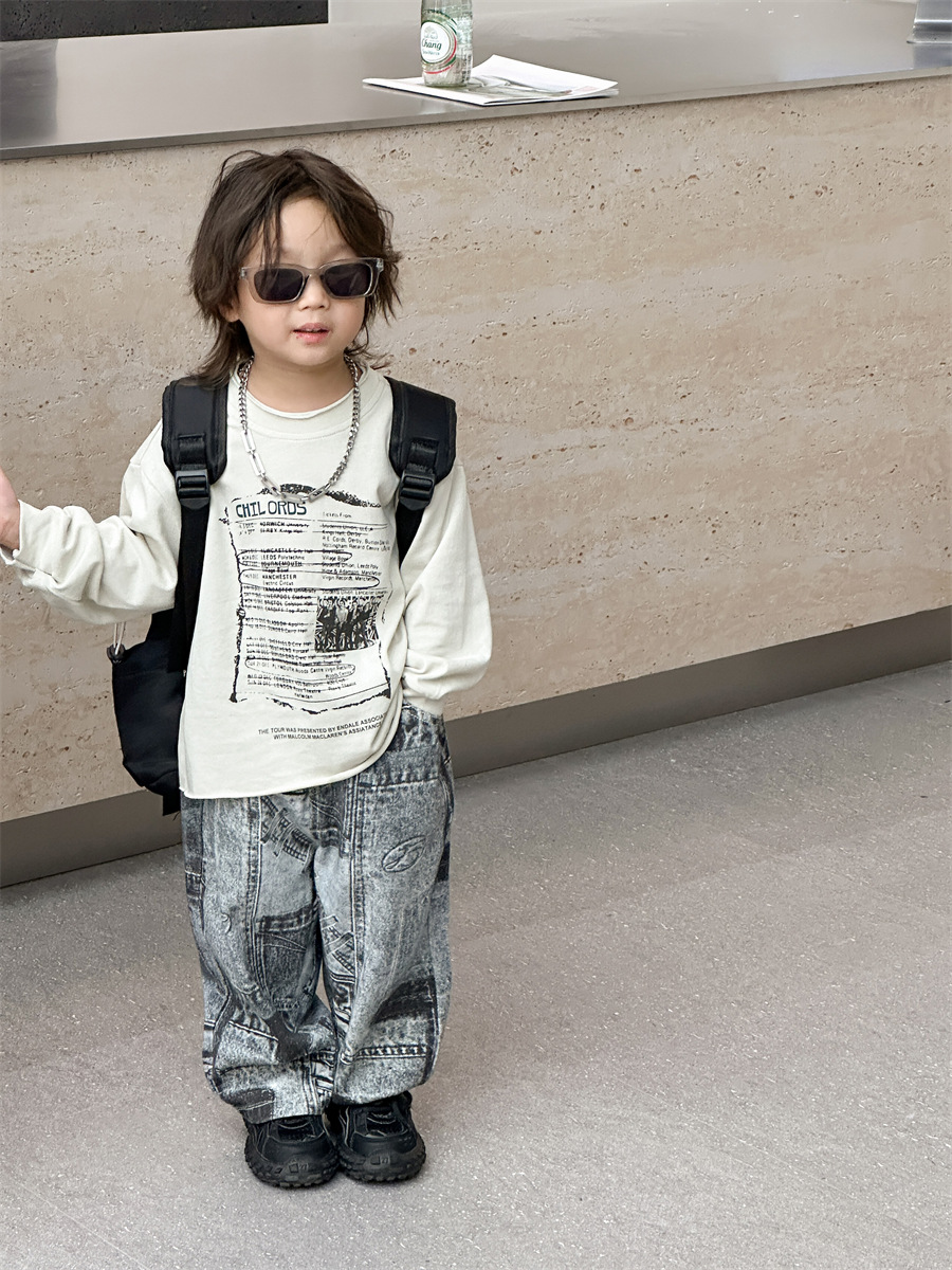 [7 월 23 일 새 우표] 면화 가게 소년 가을 한국 아동복 어린이 편지 프린트 긴팔 티셔츠스토어 가기
