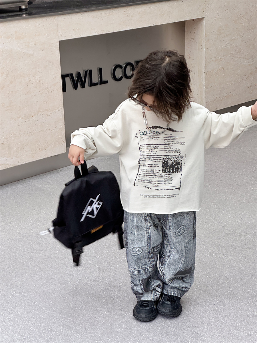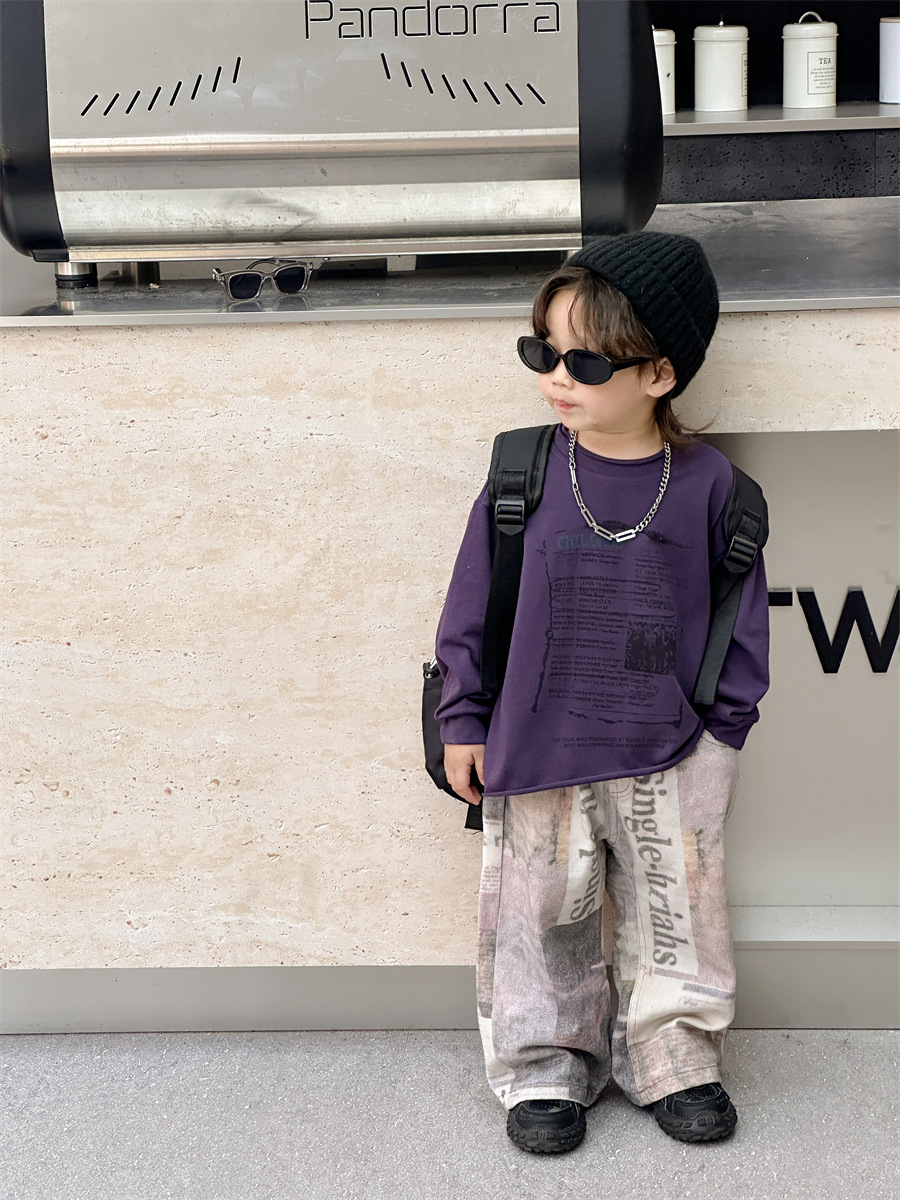[7 월 23 일 새 우표] 면화 가게 소년 가을 한국 아동복 어린이 편지 프린트 긴팔 티셔츠