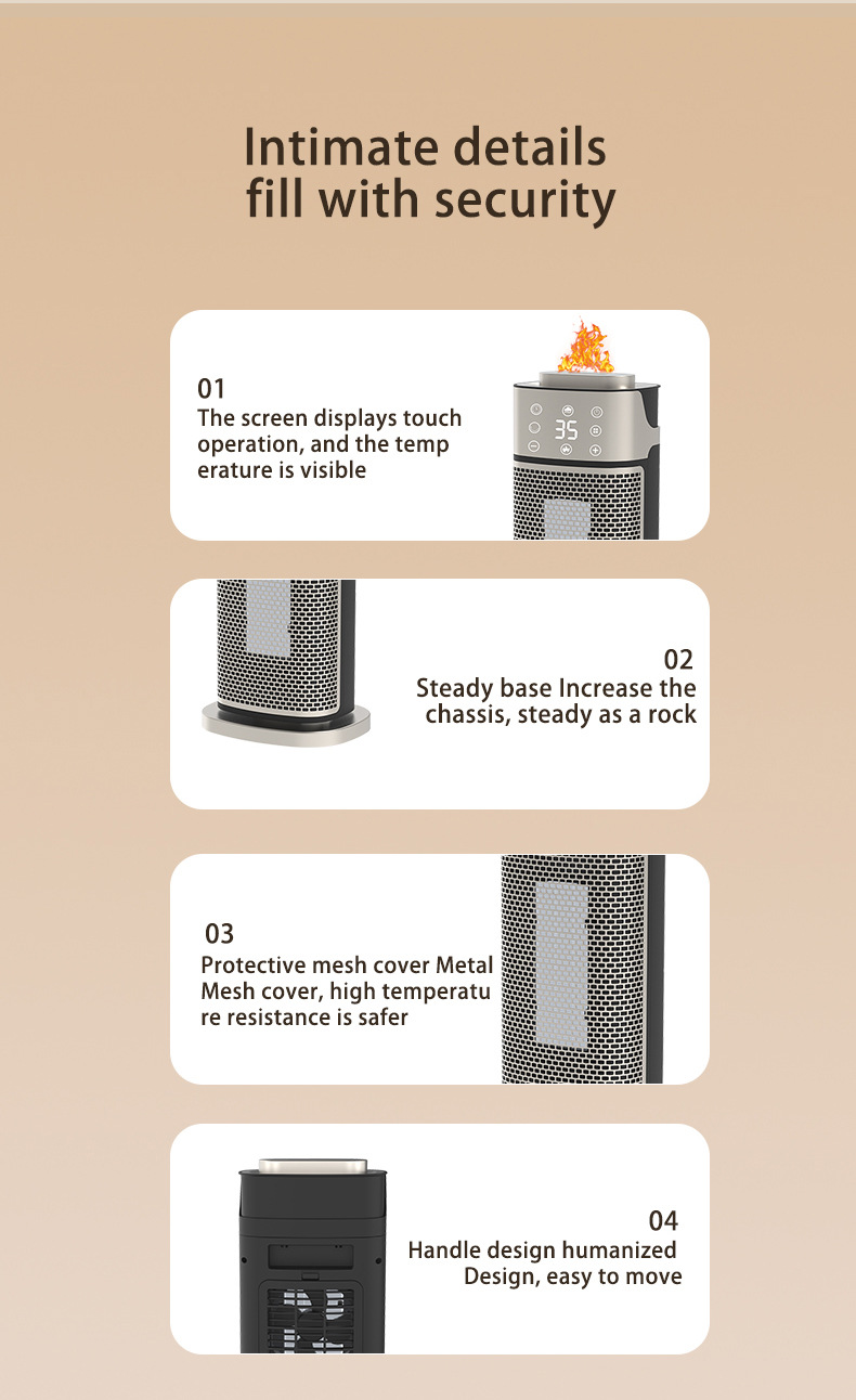 새로운 국경 히터 3D 화염 가습 히터 수직 이동 헤드 원격 제어 빠른 난방 PTC 전기 히터 공장