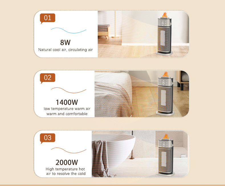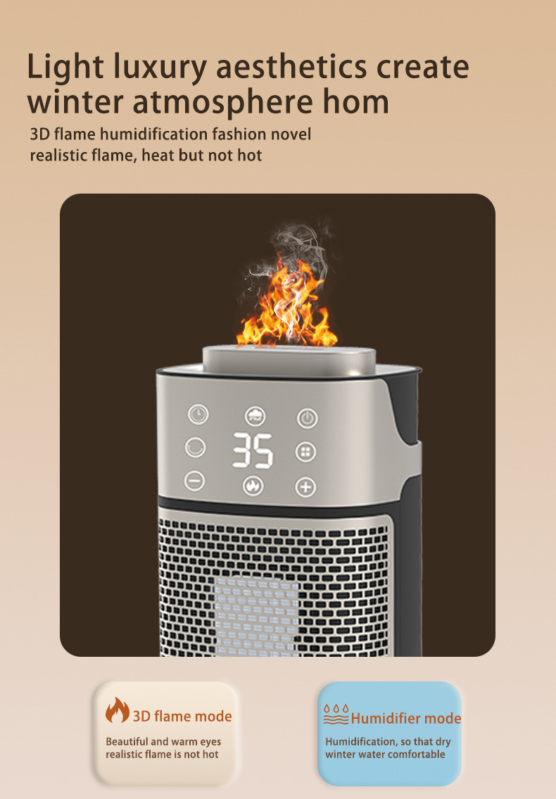 새로운 국경 히터 3D 화염 가습 히터 수직 이동 헤드 원격 제어 빠른 난방 PTC 전기 히터 공장스토어 가기