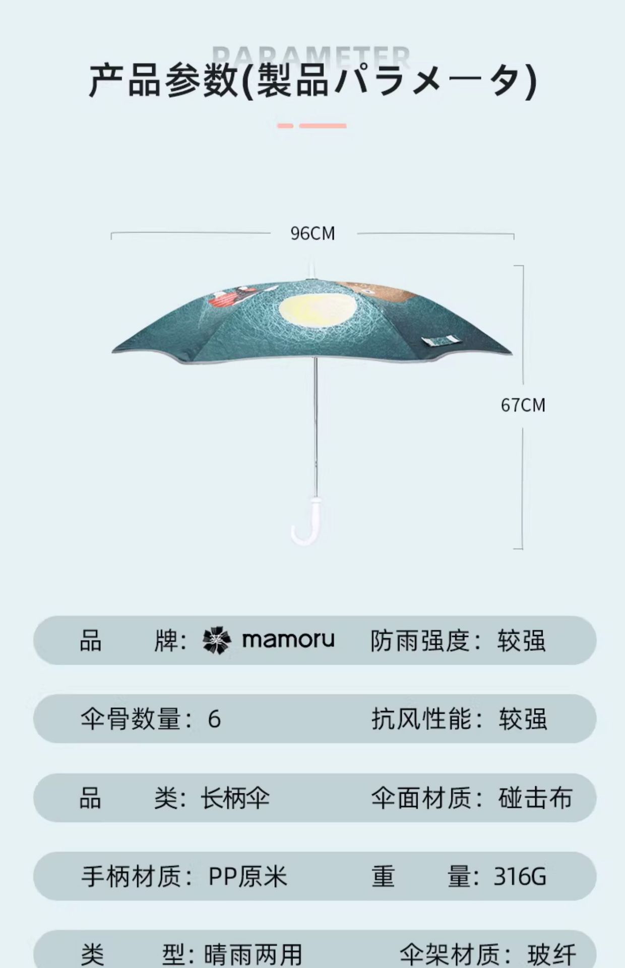 마모루 어린이 우산 긴 손잡이 검은 고무 선 스크린 우산 안티 핀치 핸드 작은 우산 초등학교 어린이 및 유치원