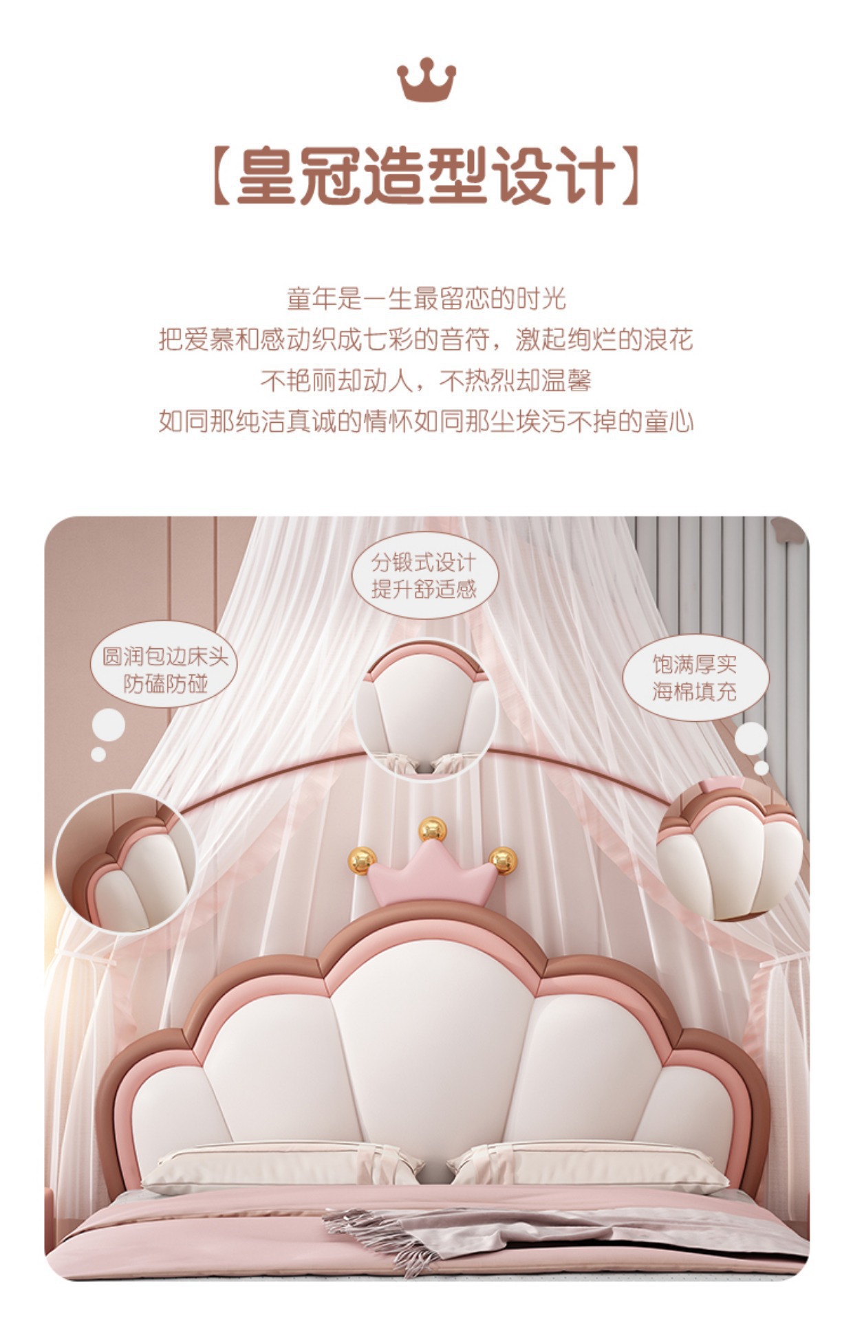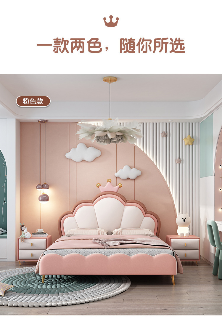 어린이 침대, 꿈꾸는 소녀, 왕관 공주 침대, 청소년, 소형 아파트, 라이트 럭셔리, 수납형, 소프트 가죽 침대, 원목스토어 가기