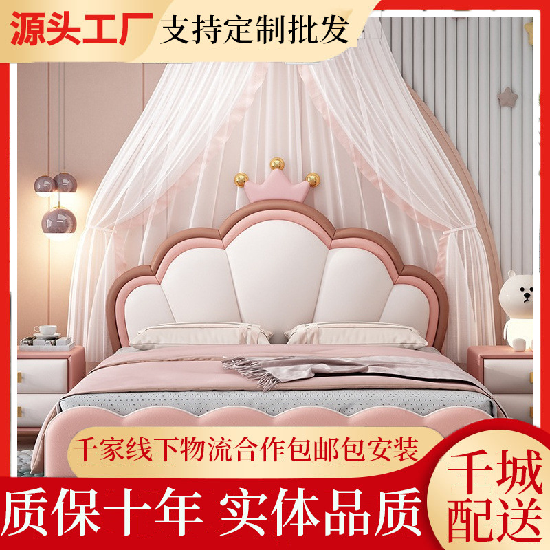 어린이 침대, 꿈꾸는 소녀, 왕관 공주 침대, 청소년, 소형 아파트, 라이트 럭셔리, 수납형, 소프트 가죽 침대, 원목