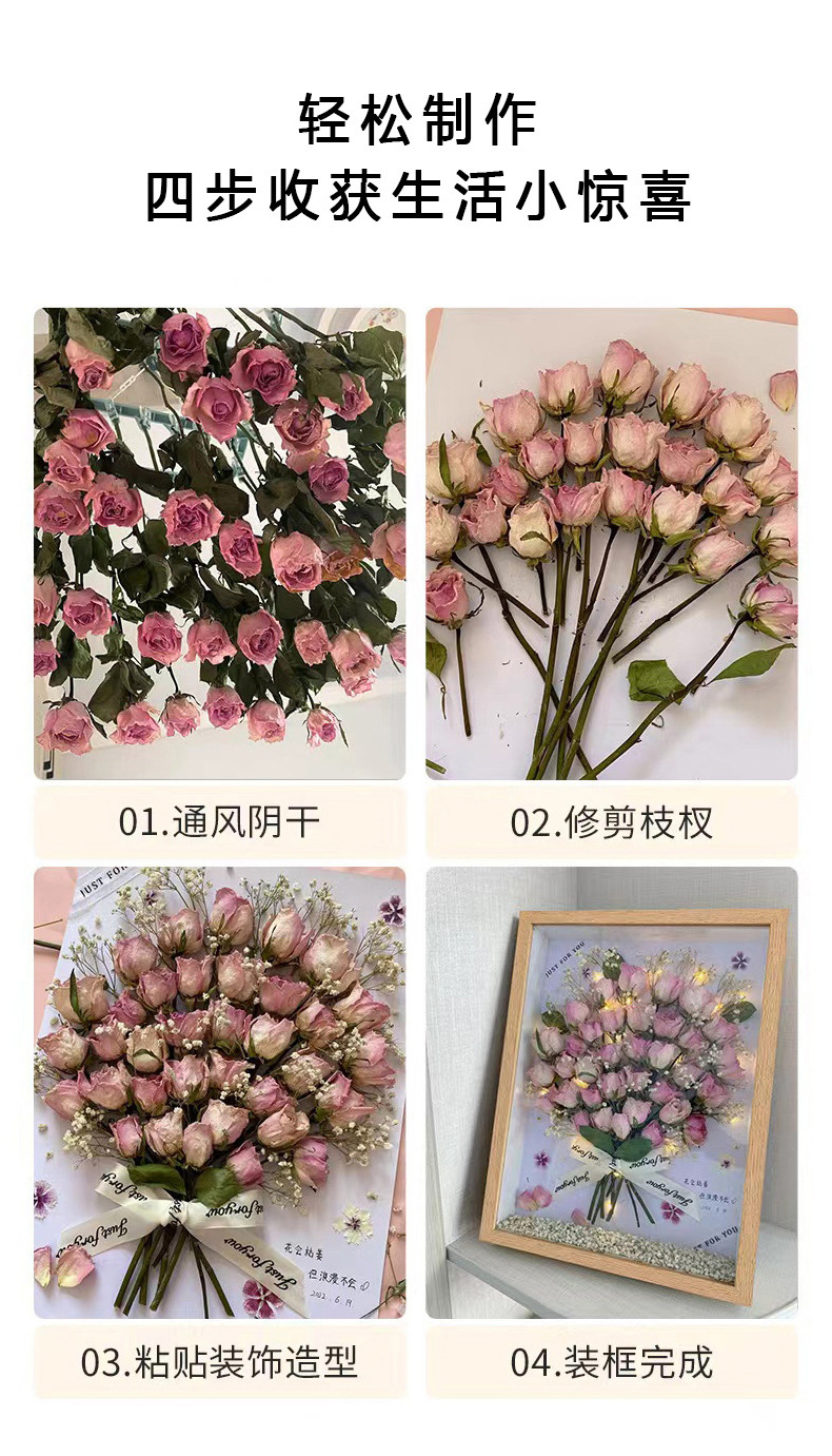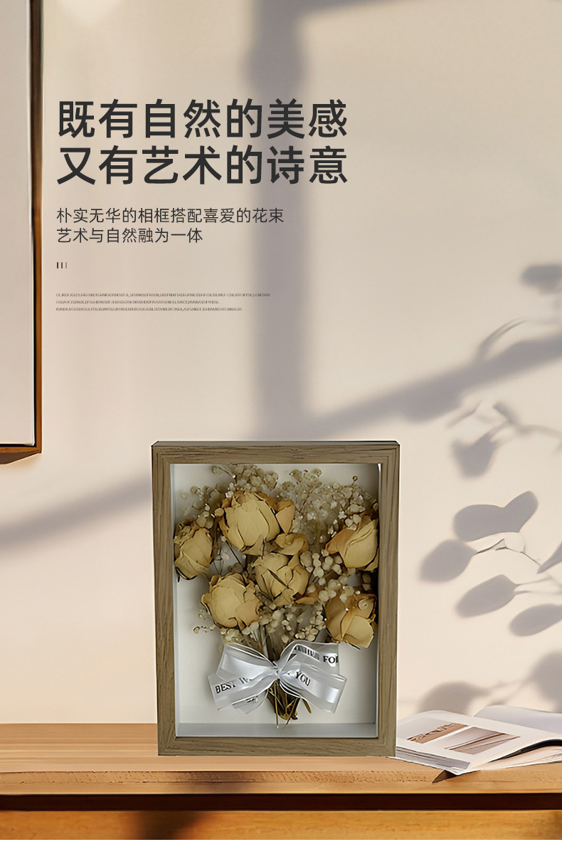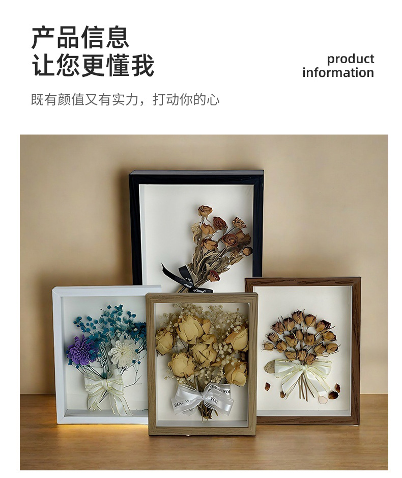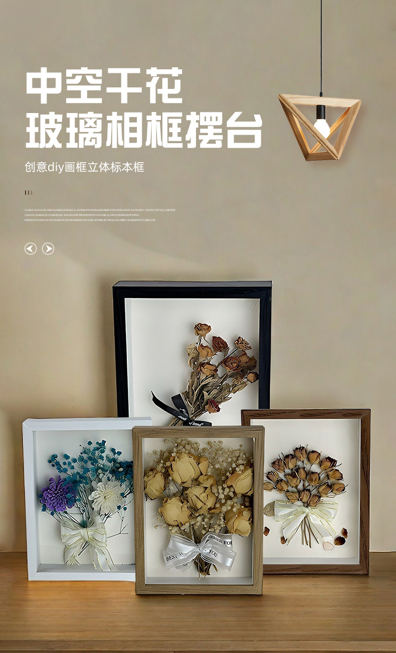 중공 건조 꽃 사진 프레임 테이블 보존 영원한 꽃 장미 수제 창조적 인 DIY 그림 프레임 스테레오 표본 프레임스토어 가기
