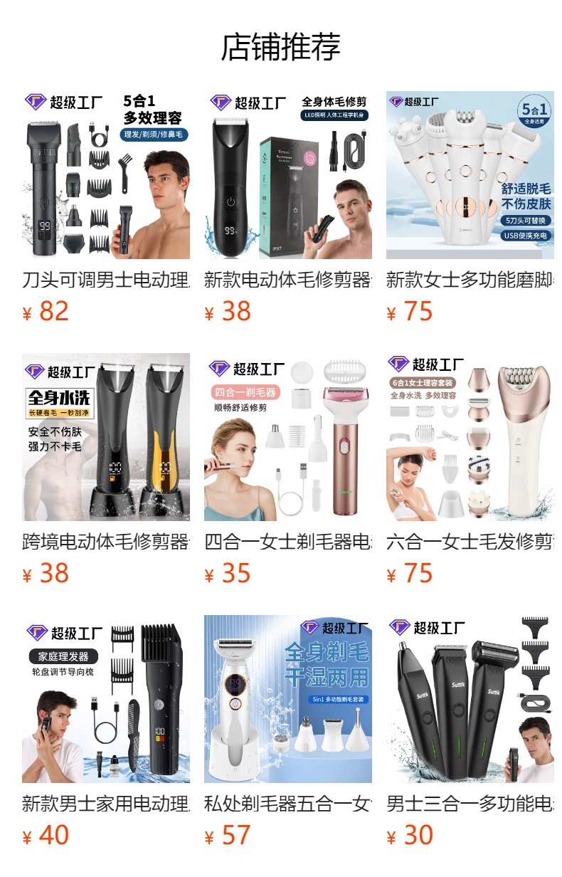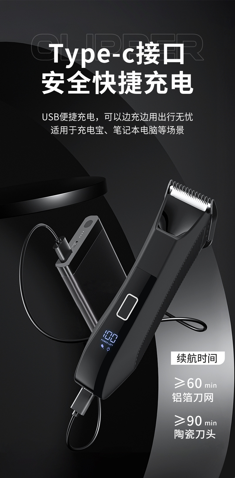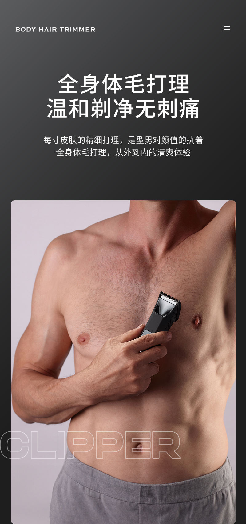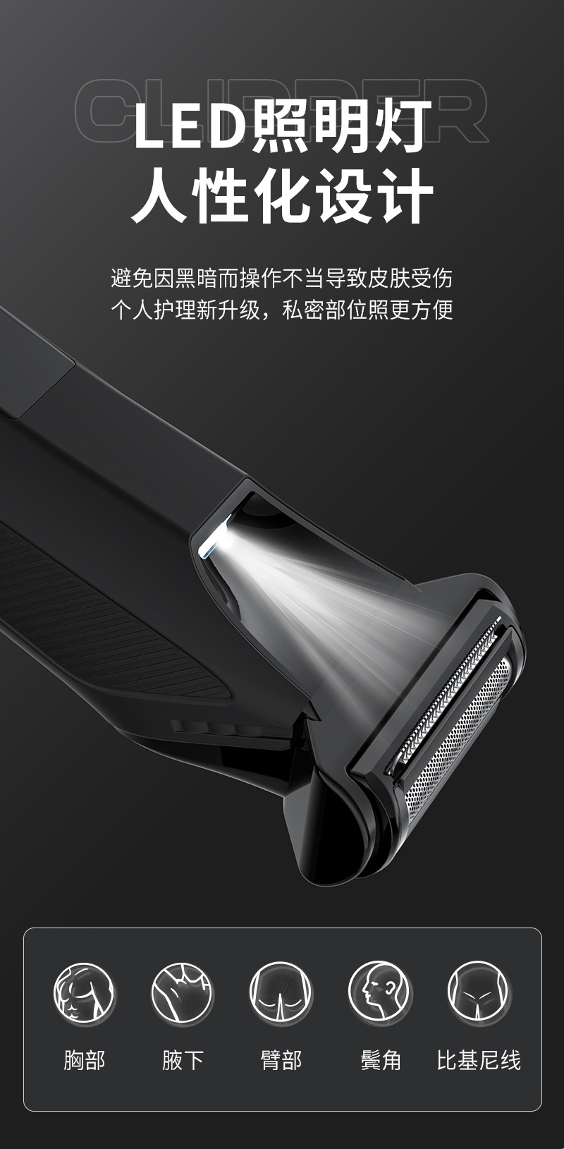 配件:剃毛刀头 刮毛刀头 调节卡尺 USB充电线 清洁刷