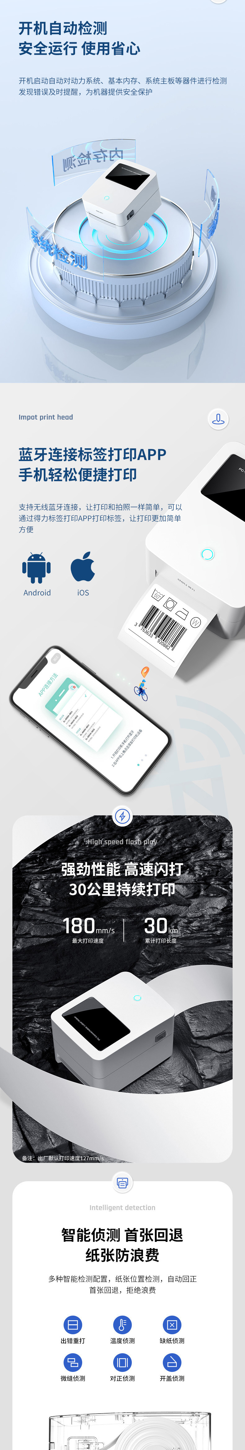 델리 720C/720W 라벨 프린터 익스프레스 전자 표면 단일 열 접착 바 코드 블루투스 프린터스토어 가기