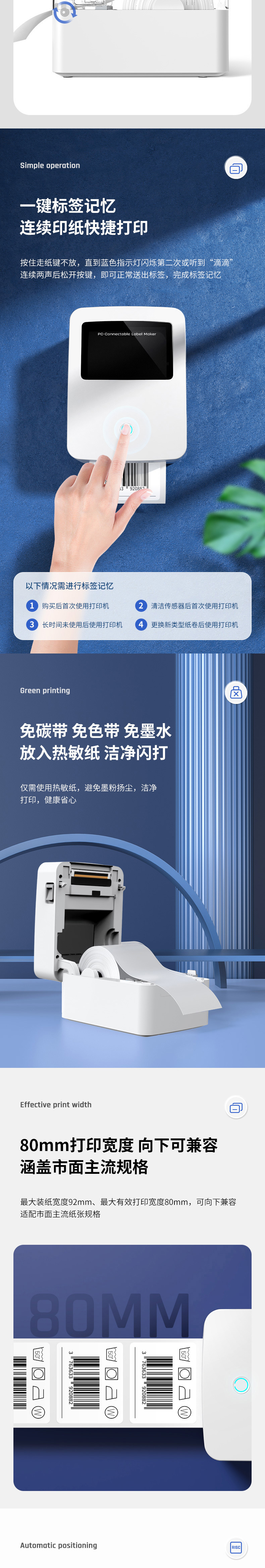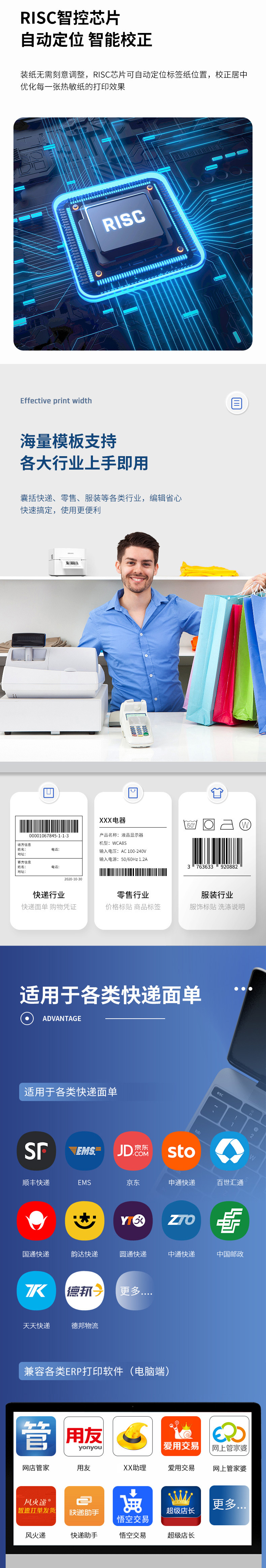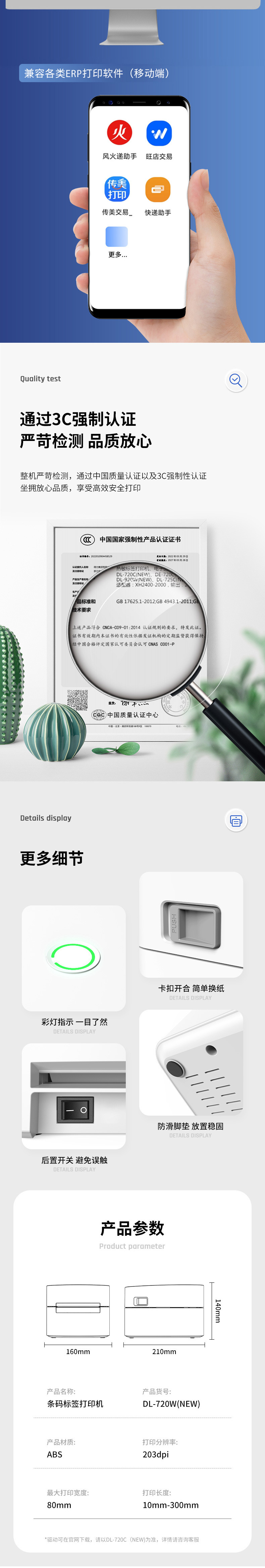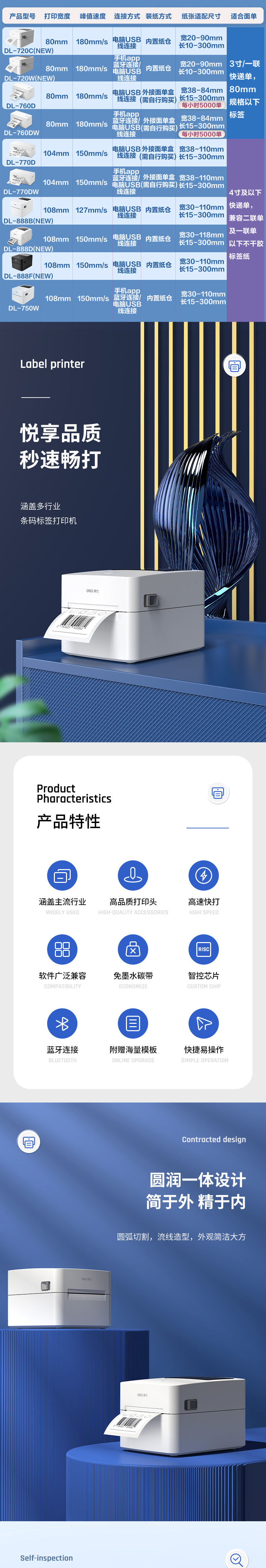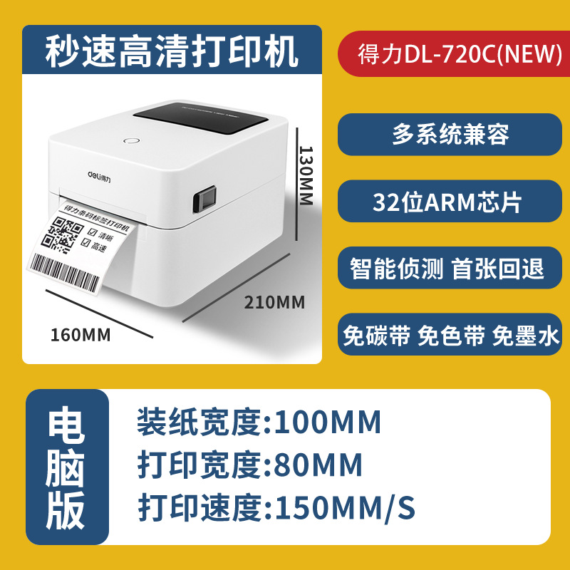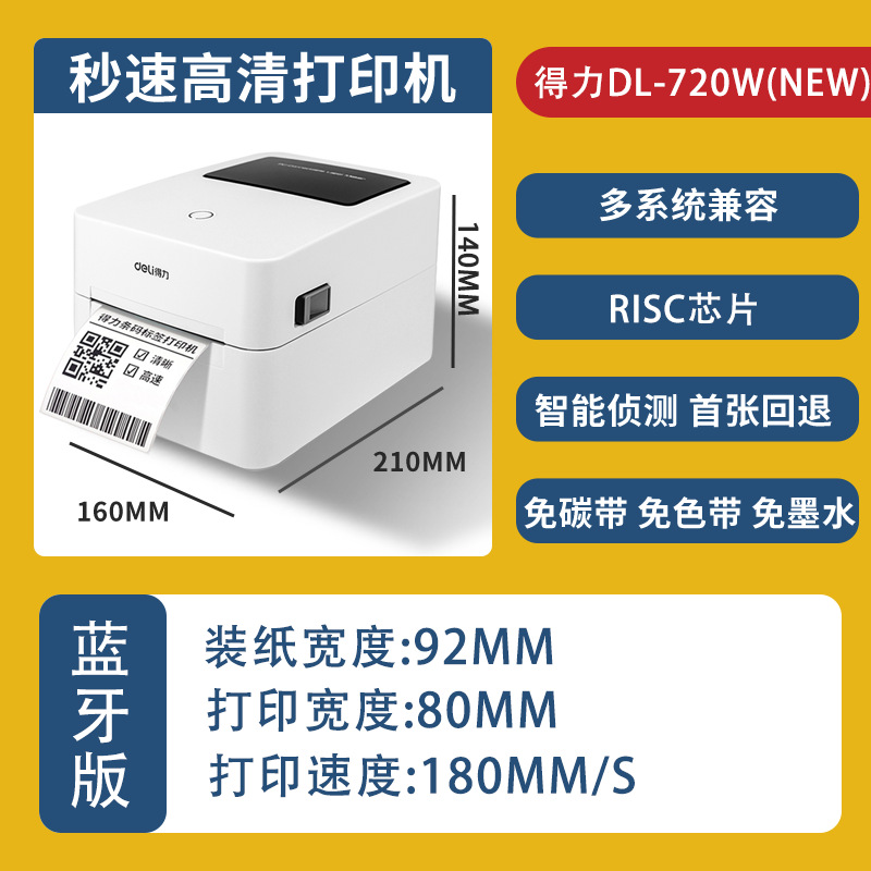 델리 720C/720W 라벨 프린터 익스프레스 전자 표면 단일 열 접착 바 코드 블루투스 프린터
