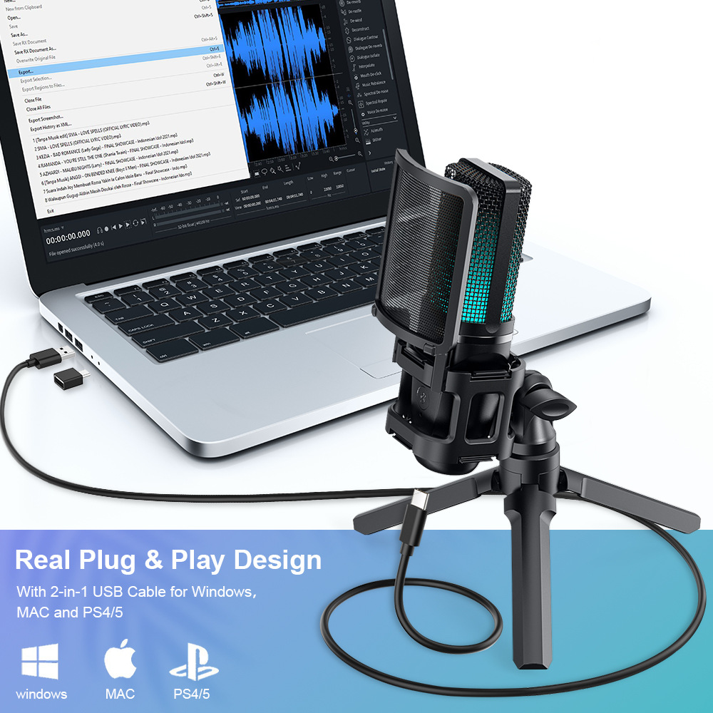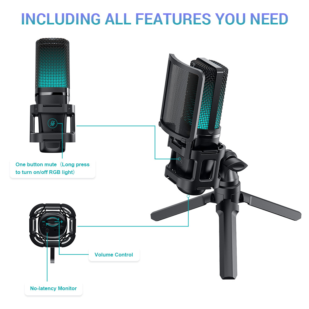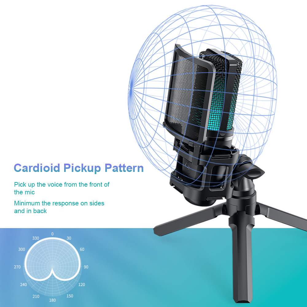 공장 맞춤형 전문 컴퓨터 콘덴서 마이크 USB RGB 게임용 마이크, 녹음 라이브 스트리밍스토어 가기