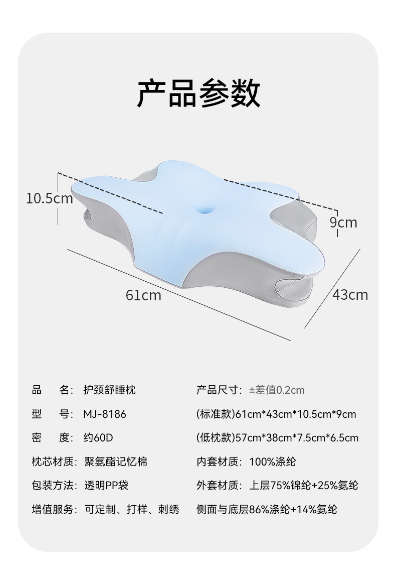 메모리폼 경추 베개, 느린 복원 메모리 베개, 나비형 목 보호 베개, 성인 가정용 측면 수면 특허 디자인