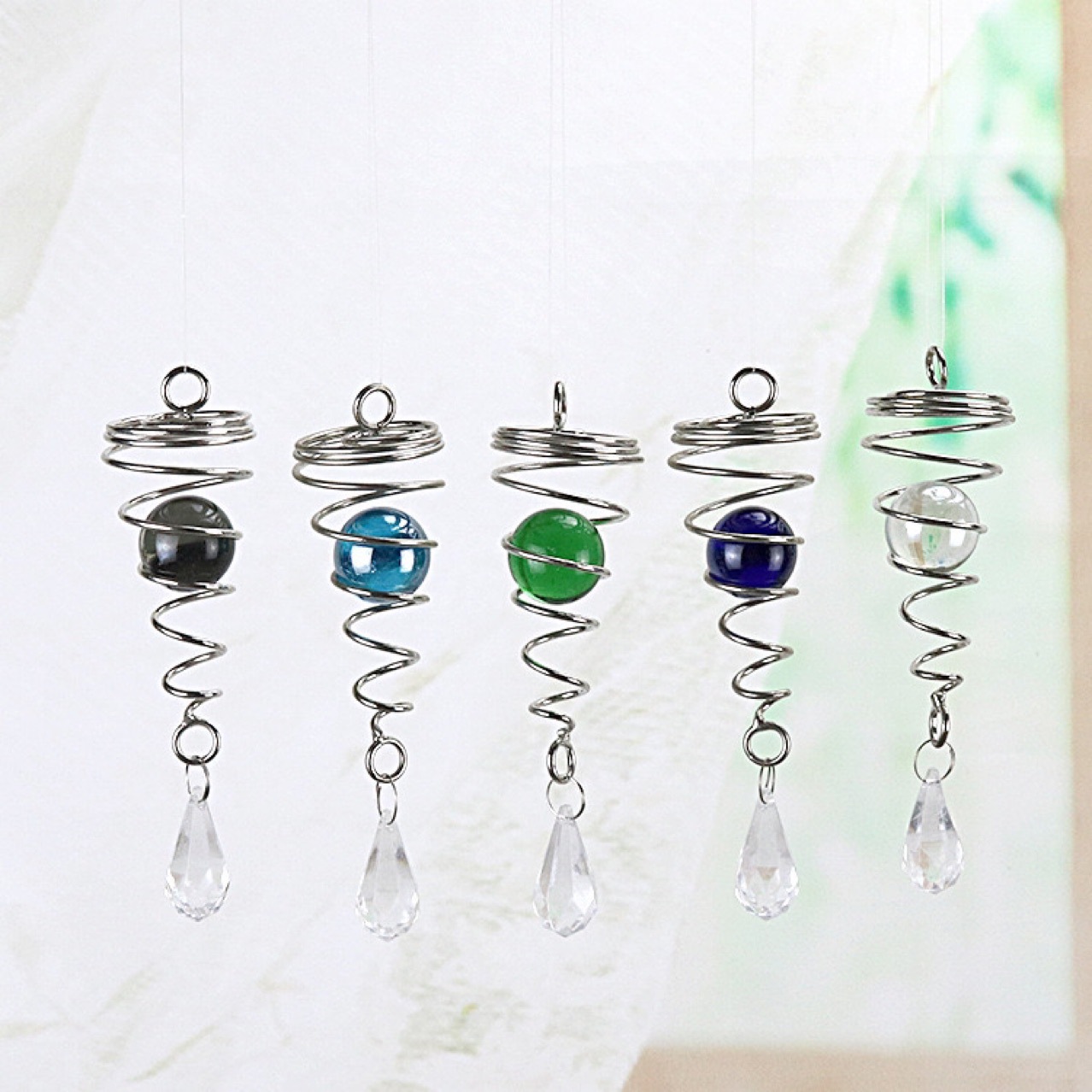 도매 판매 중인 도금 풍경종 펜던트 회전 풍차 꼬리형 이중 나선형 소형 회전 풍차 크리스탈 장식 종
