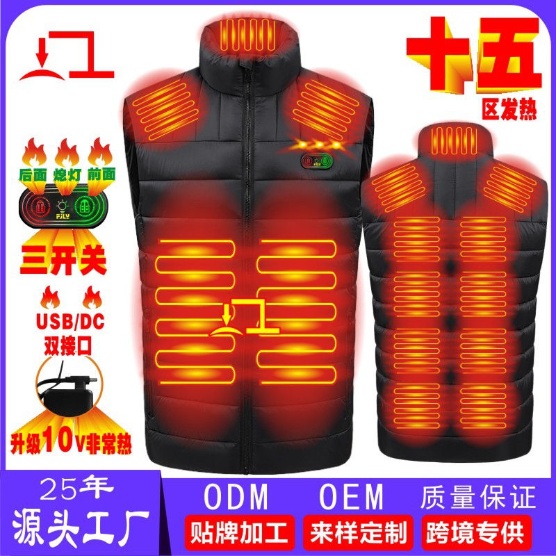 난방 양복 조끼 스탠드 칼라 커플의 15 존 난방 조끼 야외 냉장 따뜻한 옷 남성과 여성을위한 플러스 사이즈 입을 수 있습니다.스토어 가기