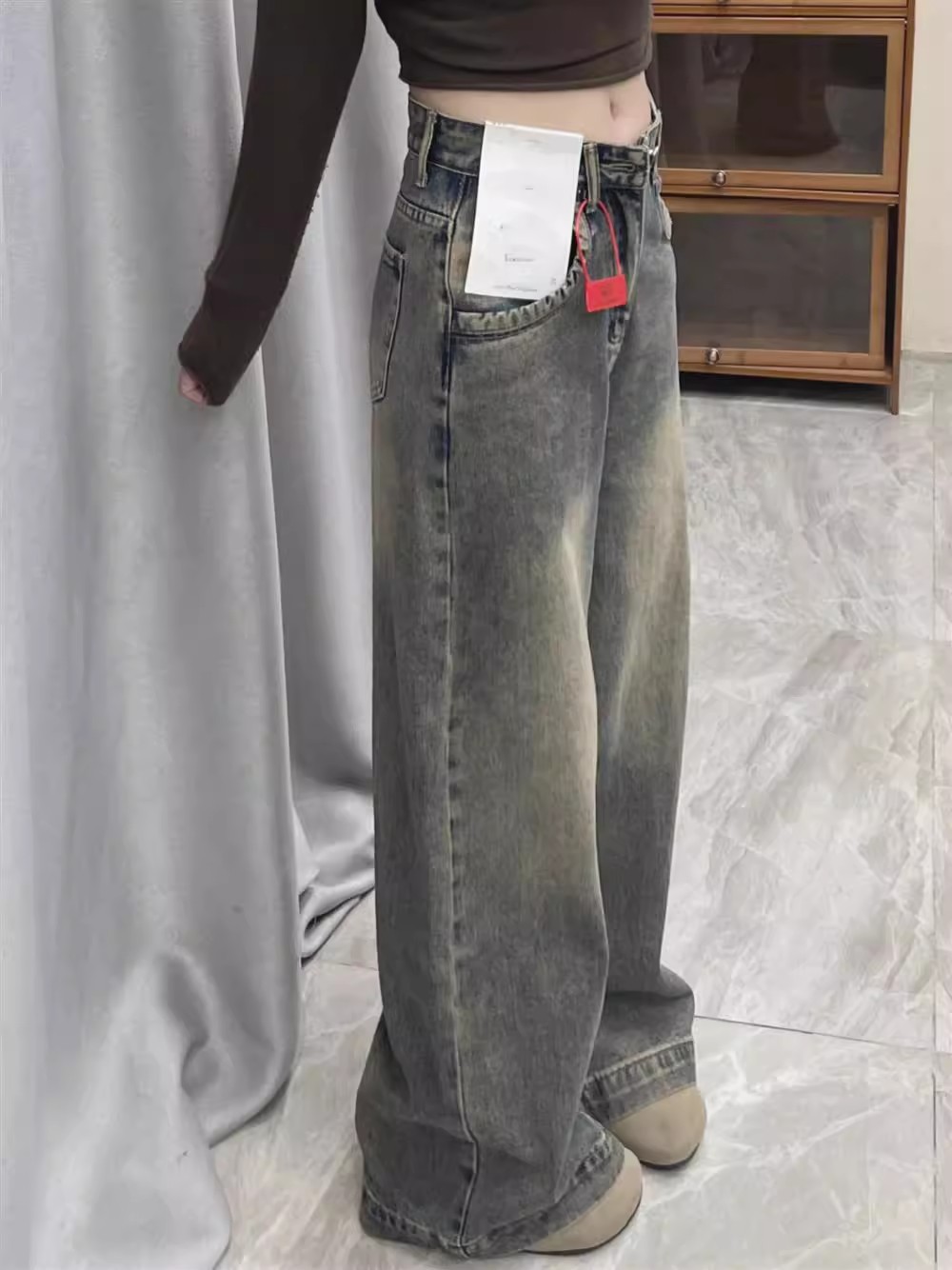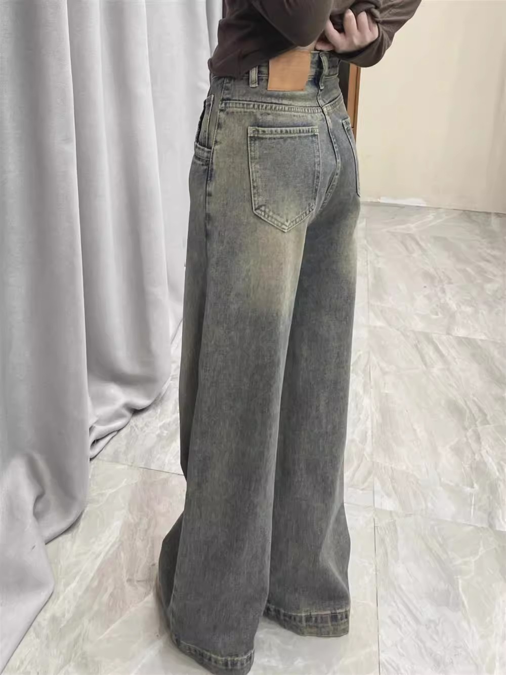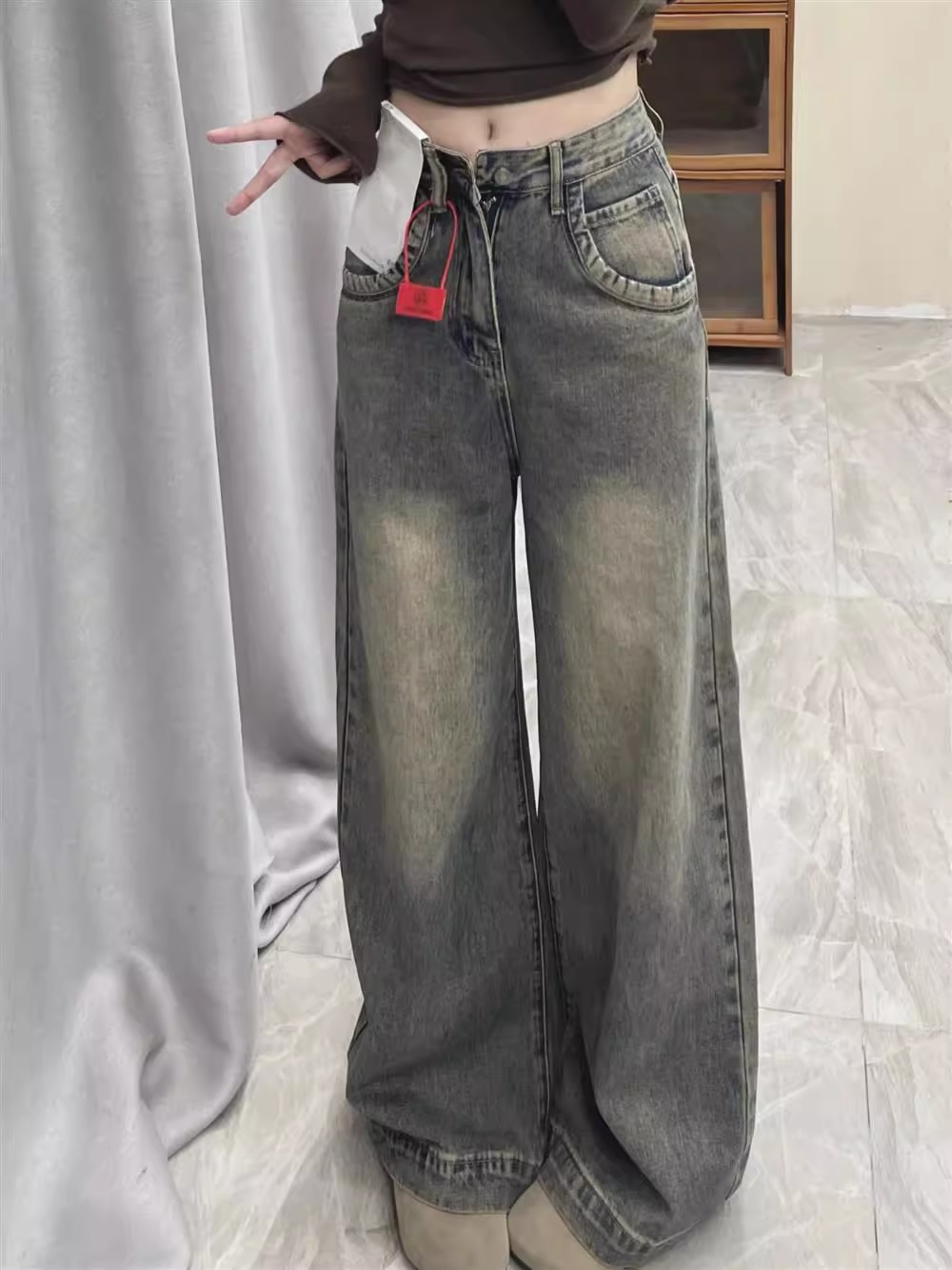 2026년 레트로 스타일 여성용 봄/가을 하이웨이스트 루즈핏 롱 스트레이트 데님 팬츠, 슬림하고 키가 커 보이는 효과