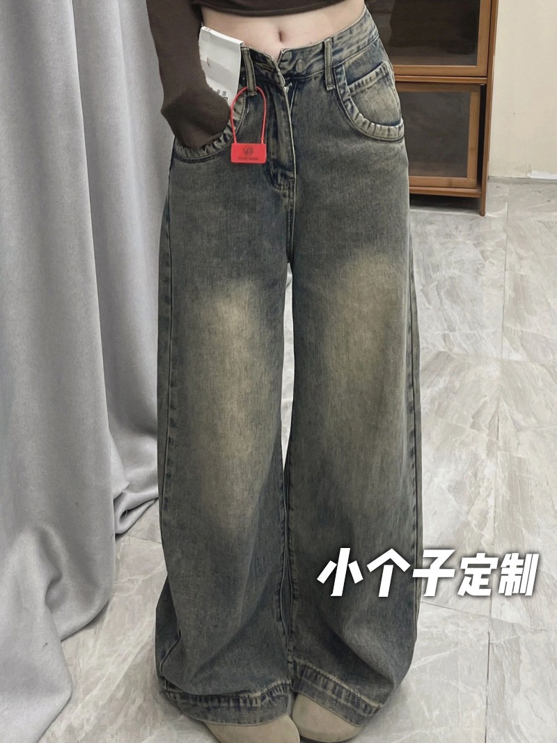 2026년 레트로 스타일 여성용 봄/가을 하이웨이스트 루즈핏 롱 스트레이트 데님 팬츠, 슬림하고 키가 커 보이는 효과스토어 가기