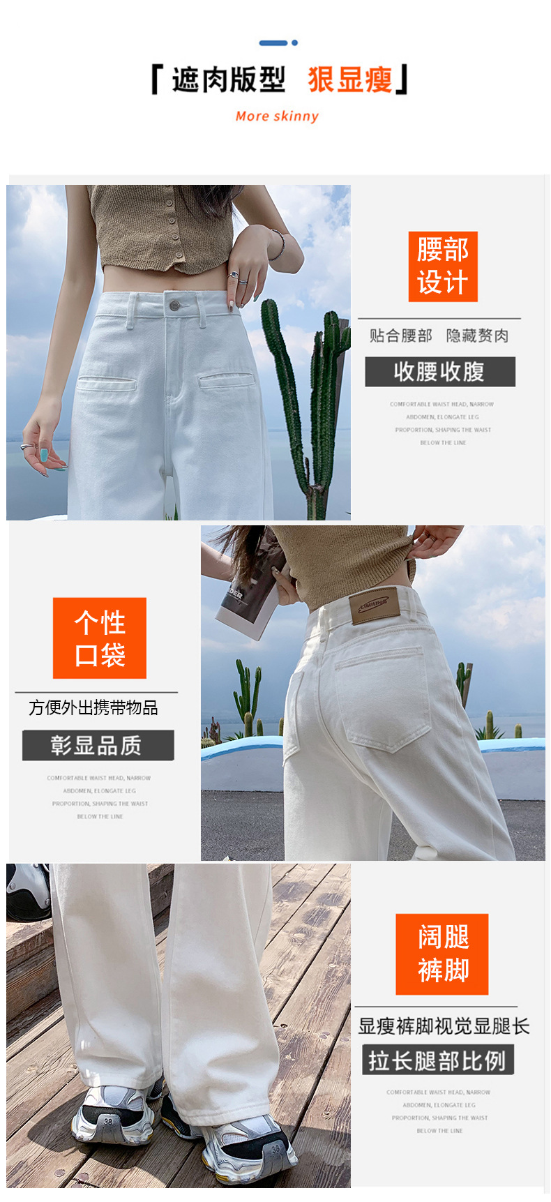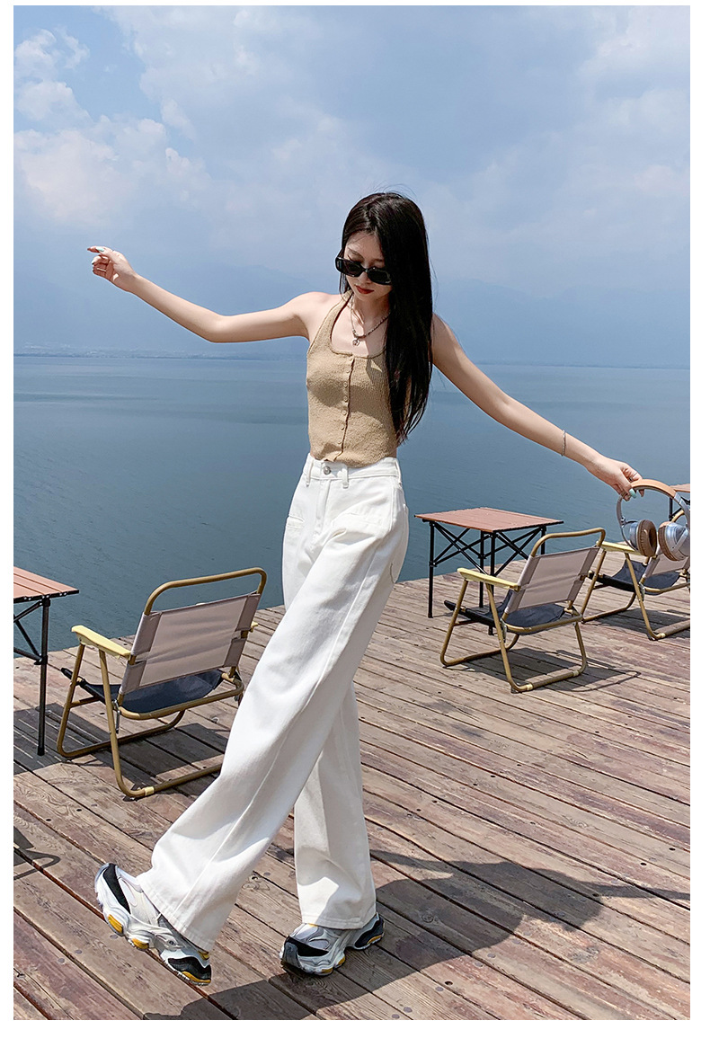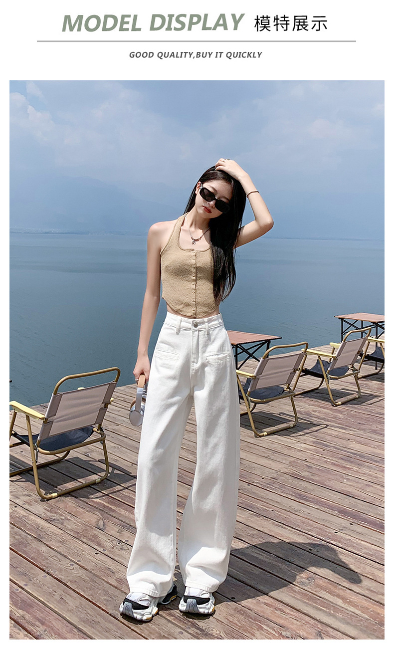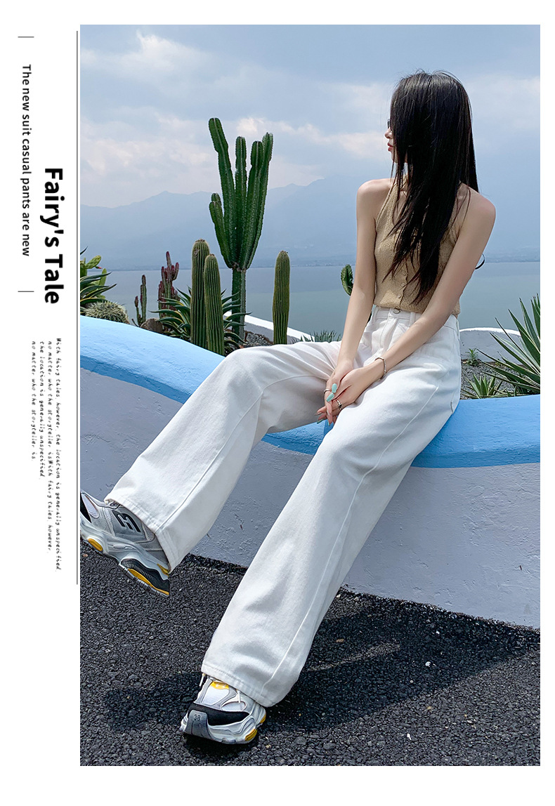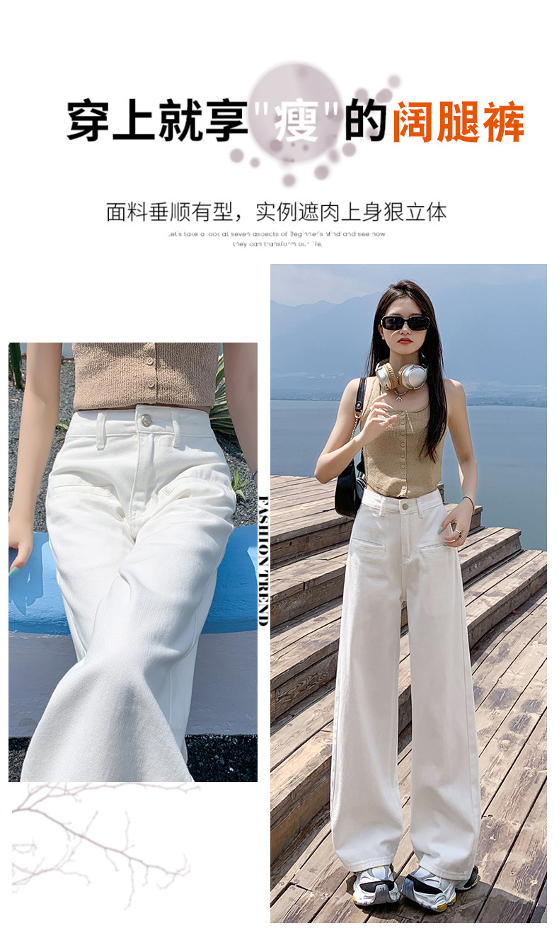 [진인] 여성용 화이트 슬리밍 와이드 레그 진, 봄 가을 신상 스트레이트 네일 버전 하이웨이스트 캐주얼 바닥 기장 팬츠