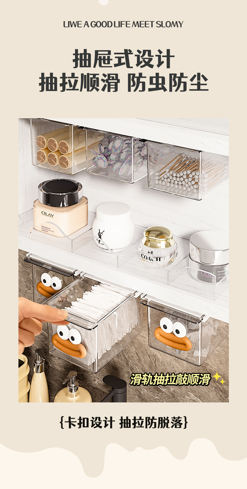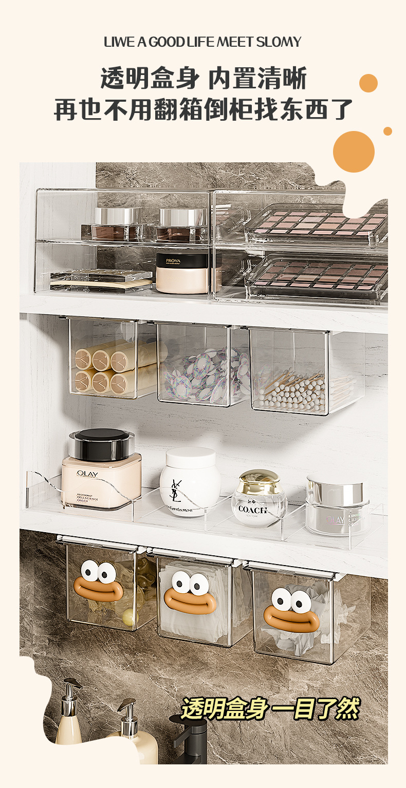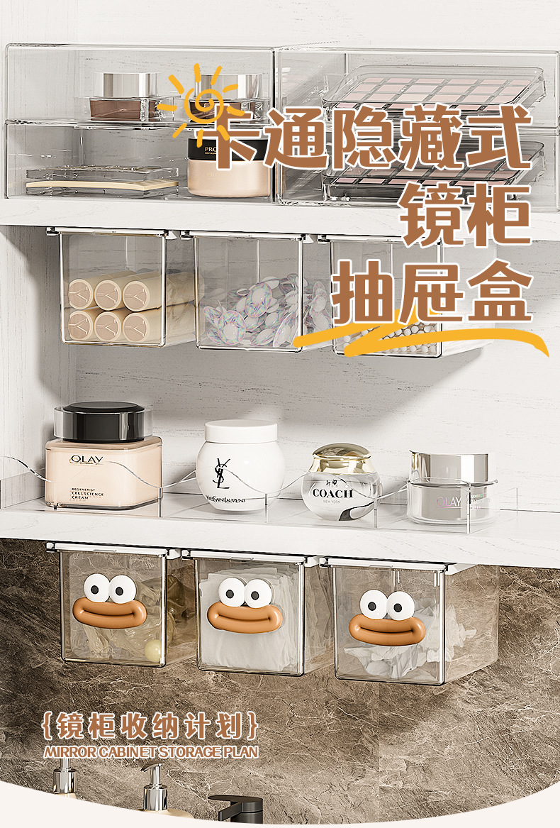 거울 캐비닛 서랍 유형 저장 상자 투명한 만화 화장실 면봉 화장품 면 욕실 캐비닛 풀아웃 저장 랙
