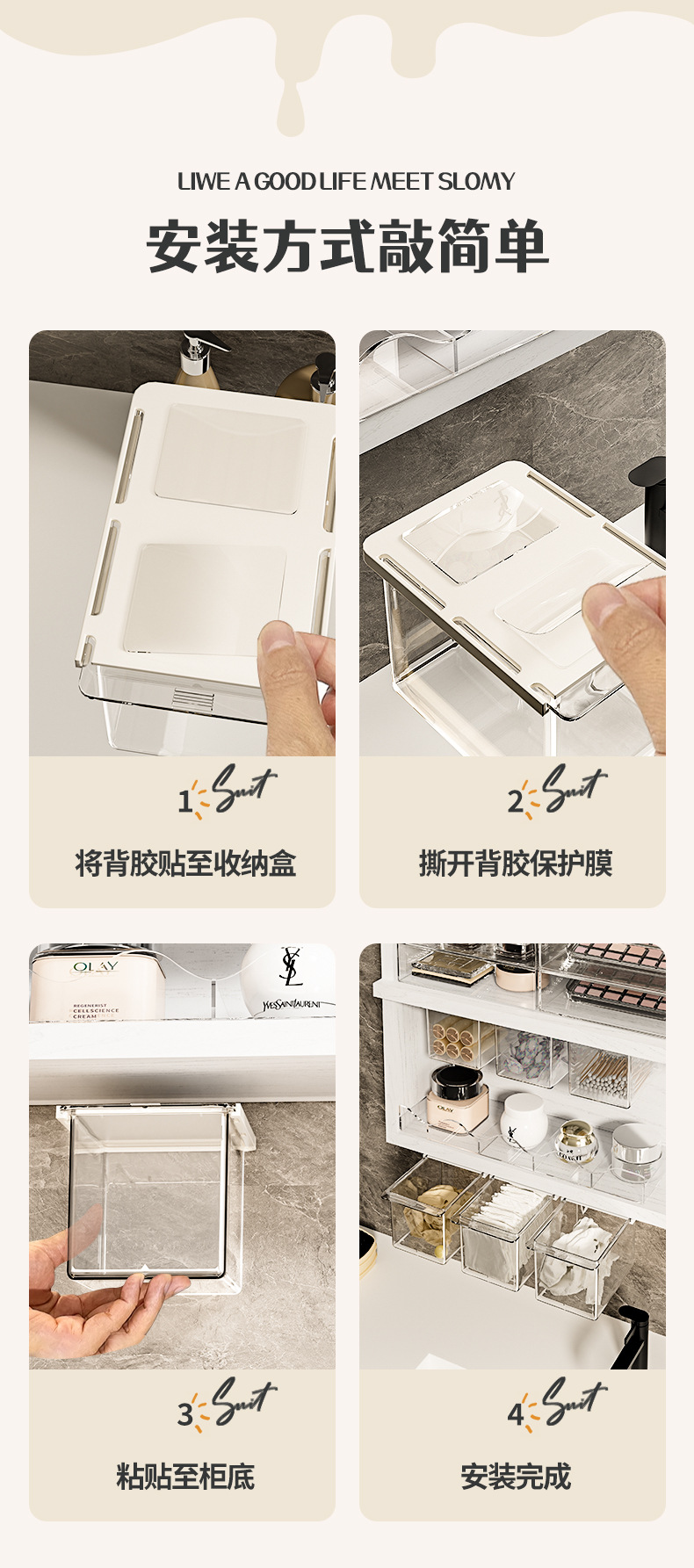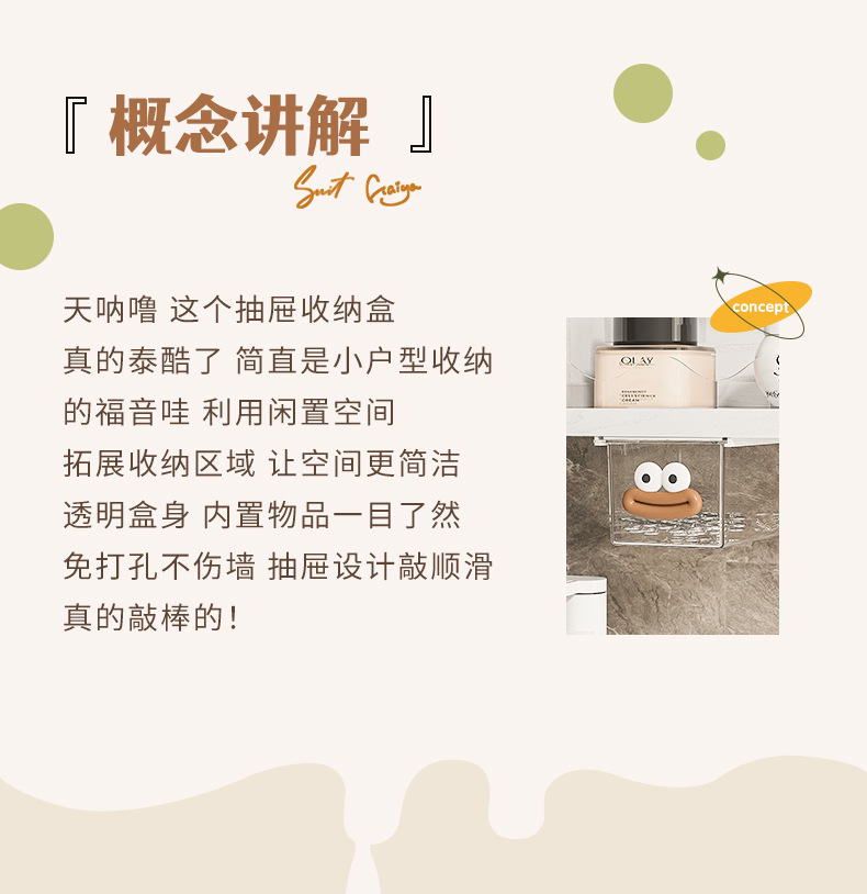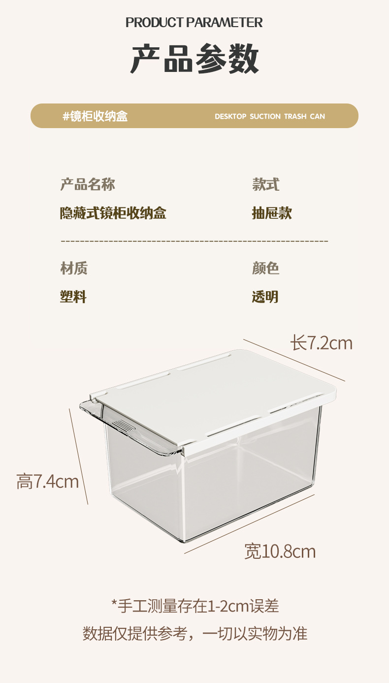 거울 캐비닛 서랍 유형 저장 상자 투명한 만화 화장실 면봉 화장품 면 욕실 캐비닛 풀아웃 저장 랙