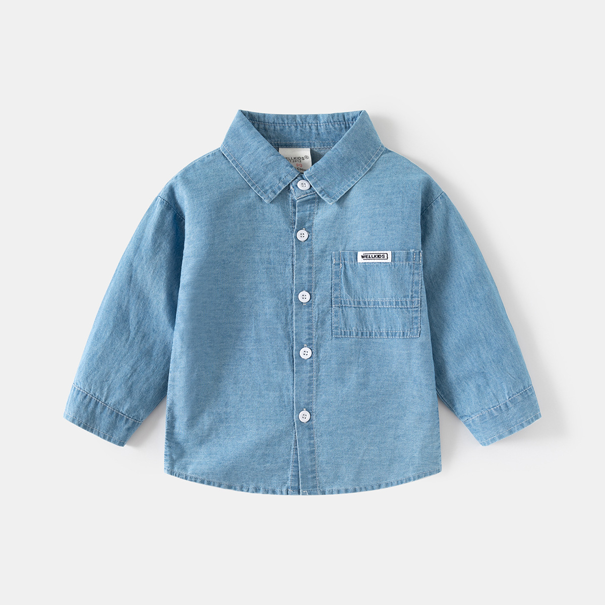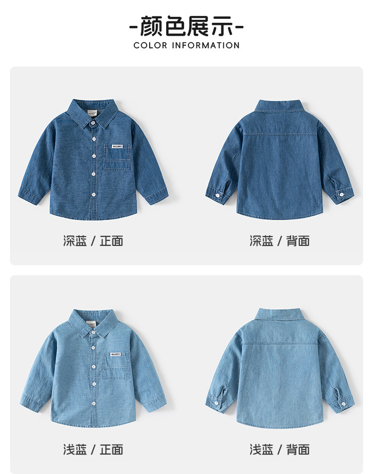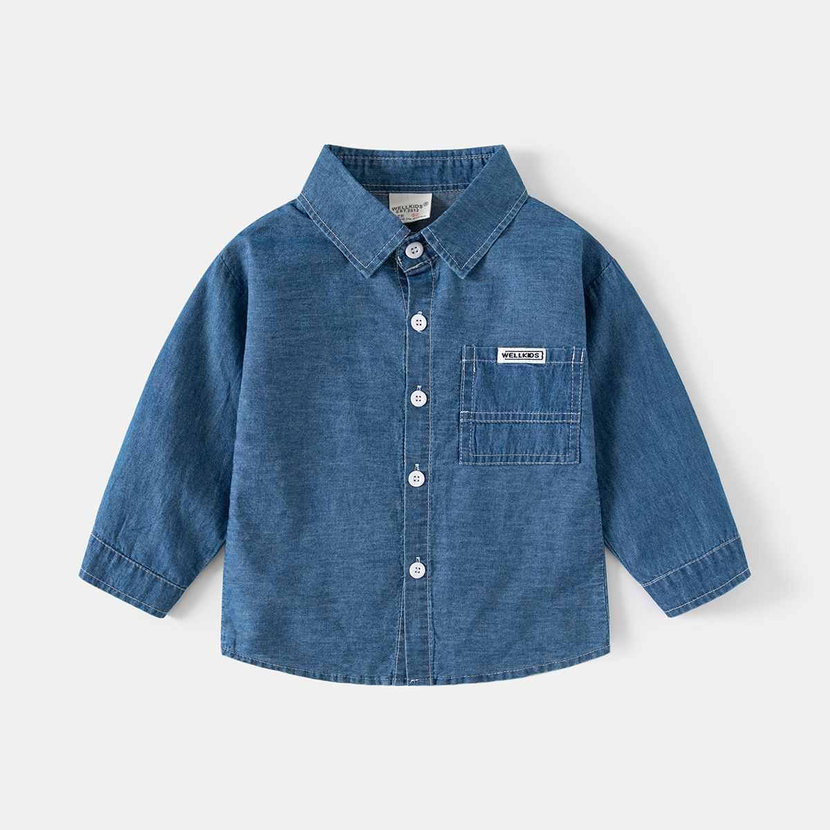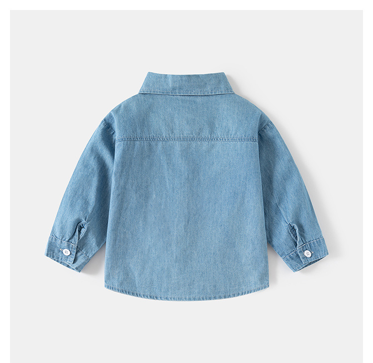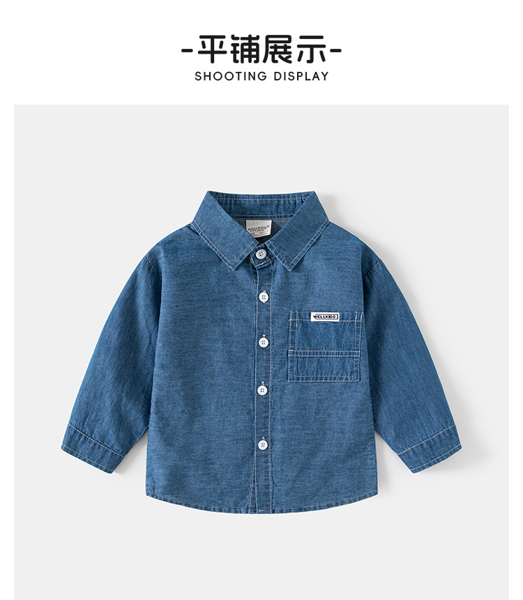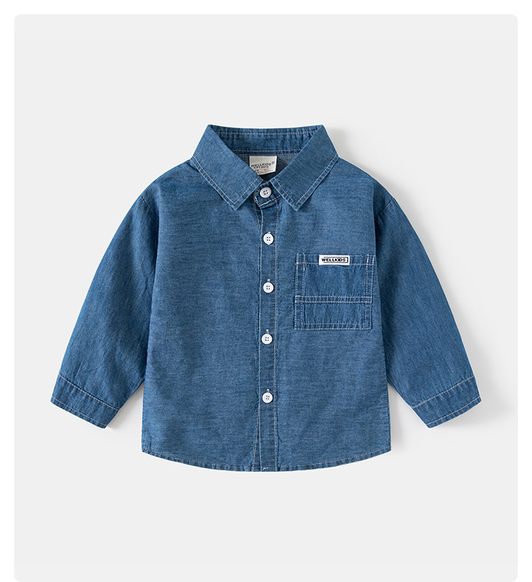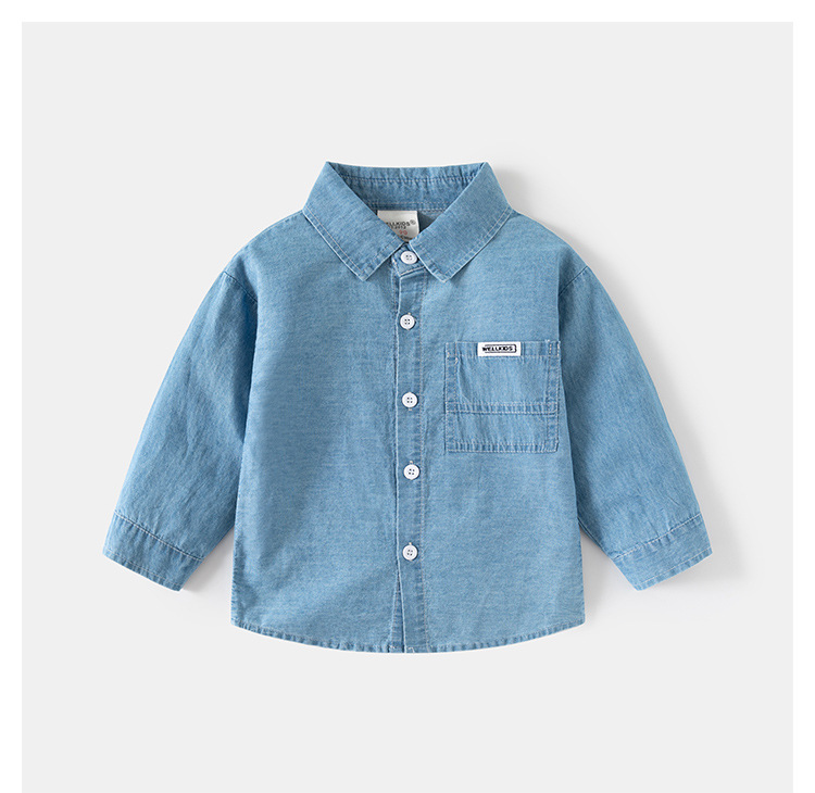 어린이 데님 셔츠 소년 긴팔 셔츠 2024 새로운 봄과 가을 옷 어린이 아기 한국 재킷 도매