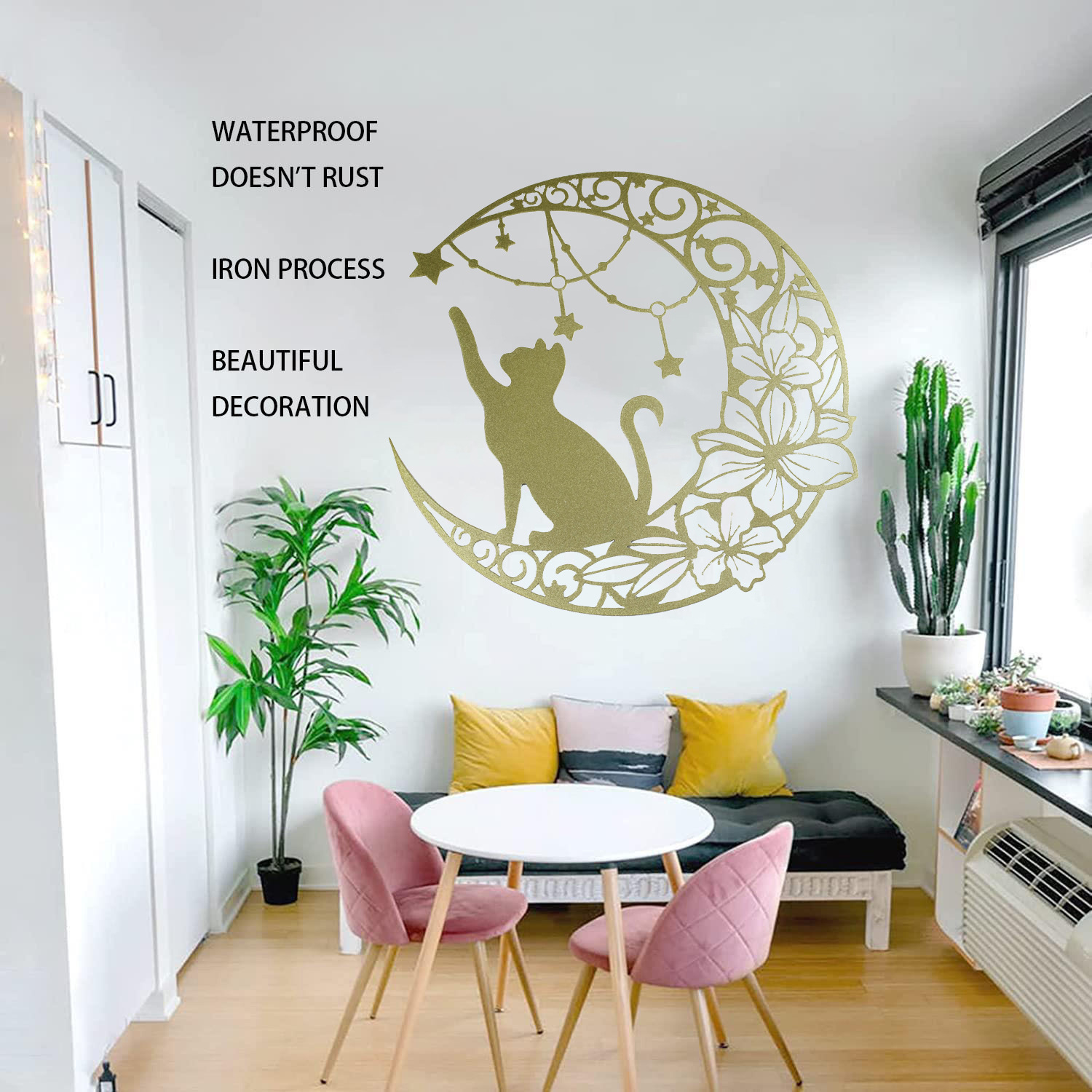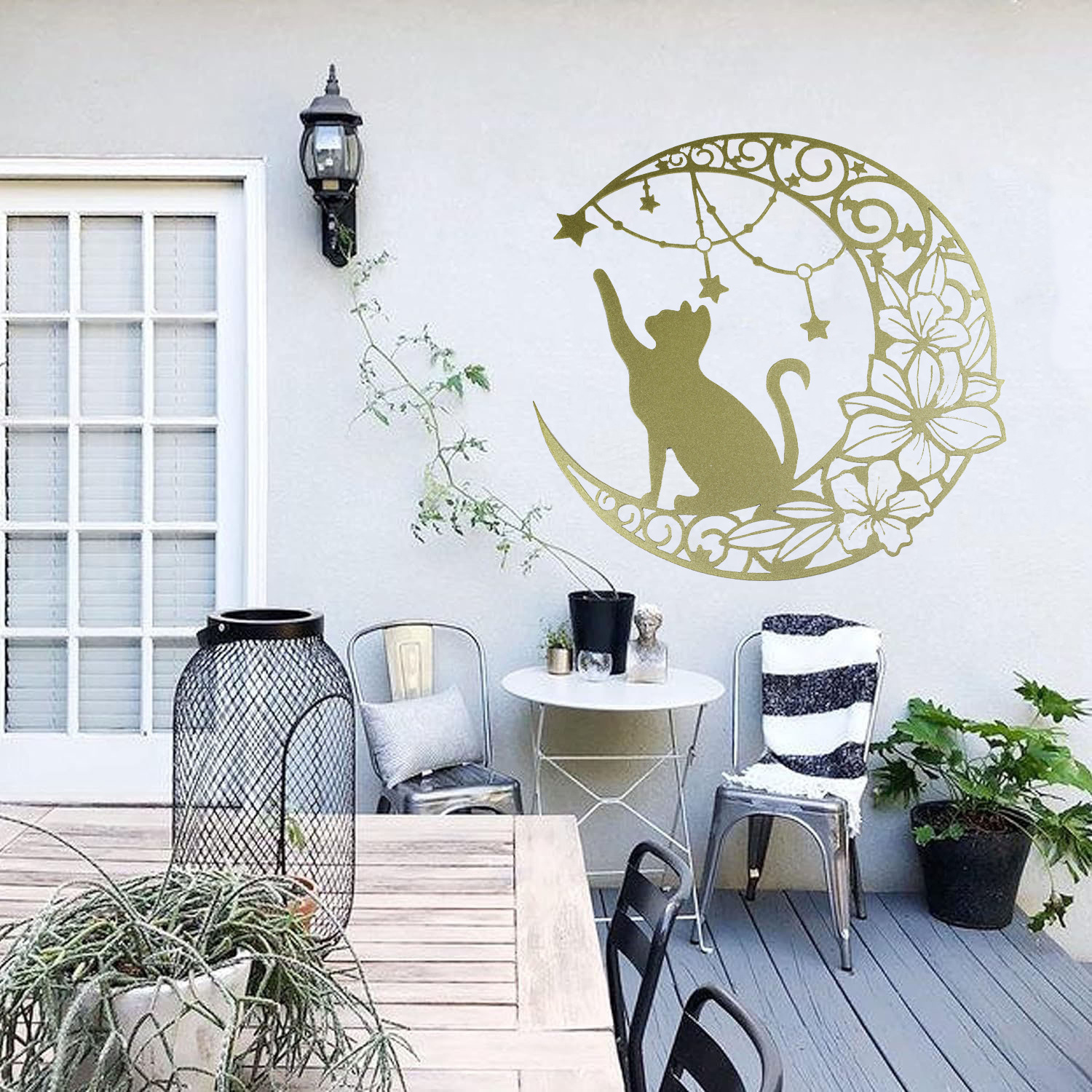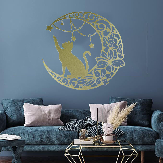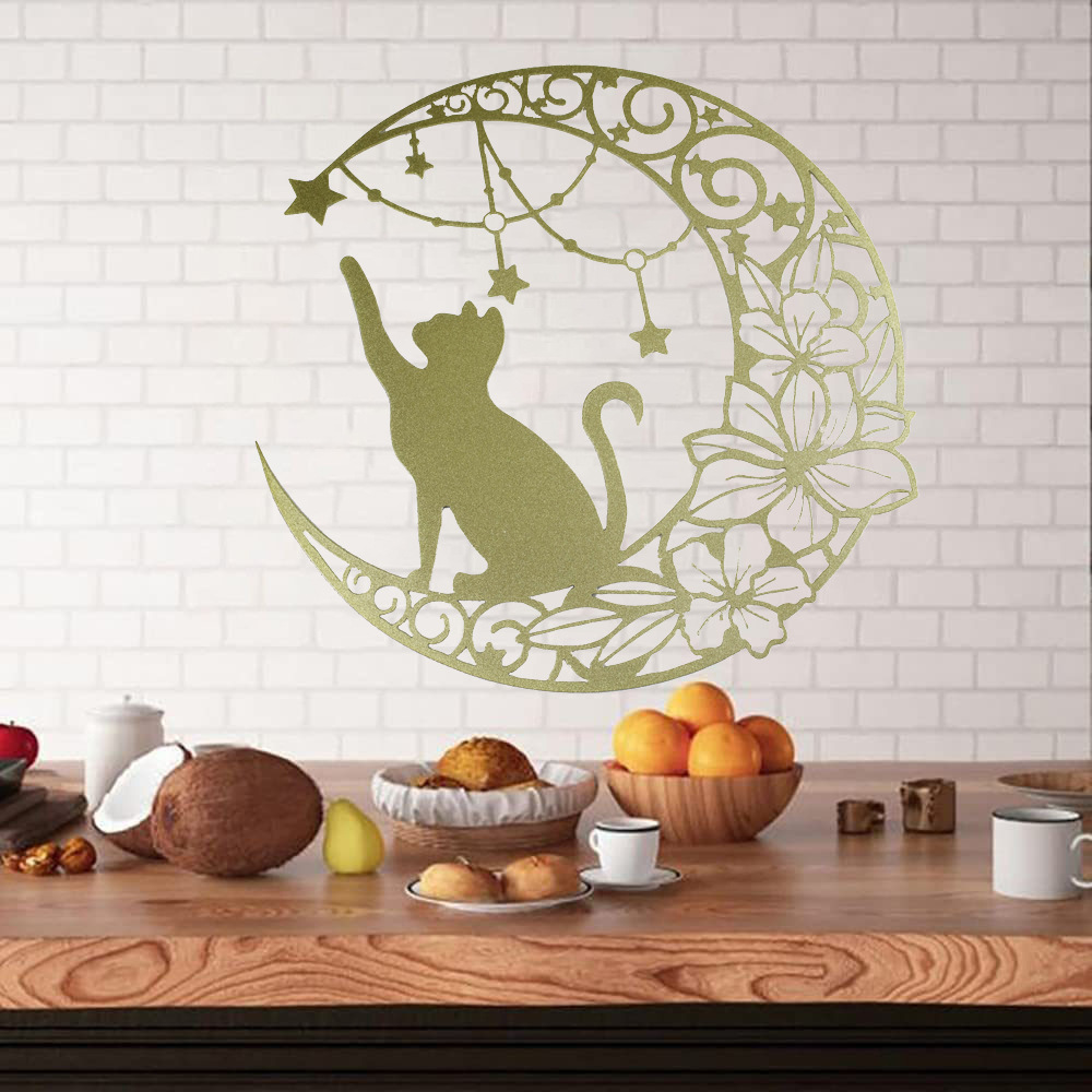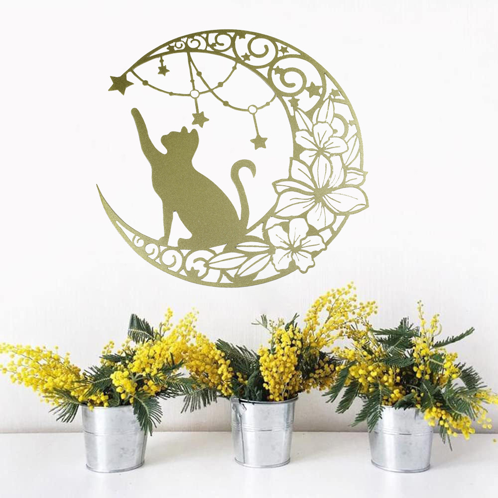 국경 간 실루엣 철 수공예 고양이 스타 따기 집 거실 침실 벽 장식 바 펜던트 벽 장식