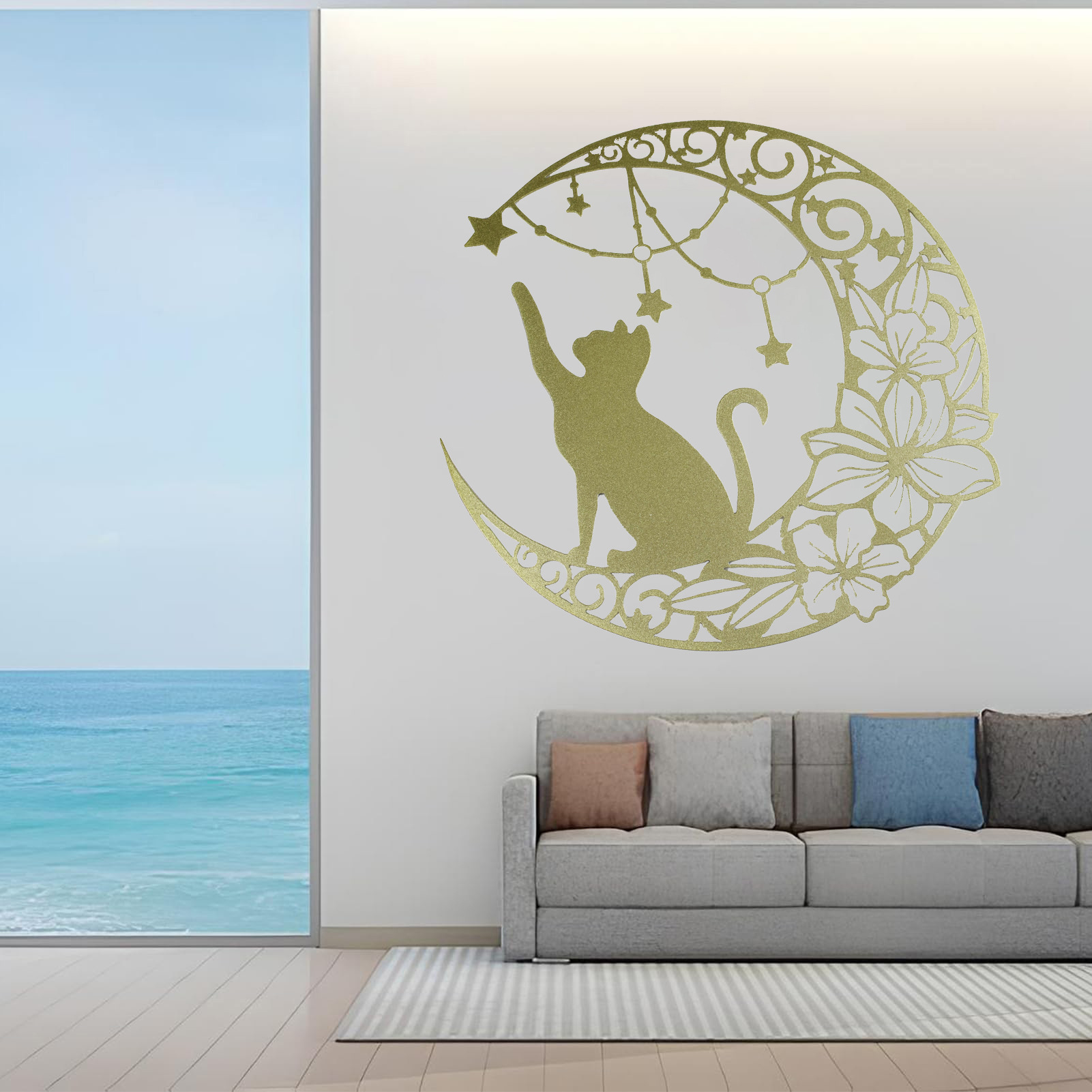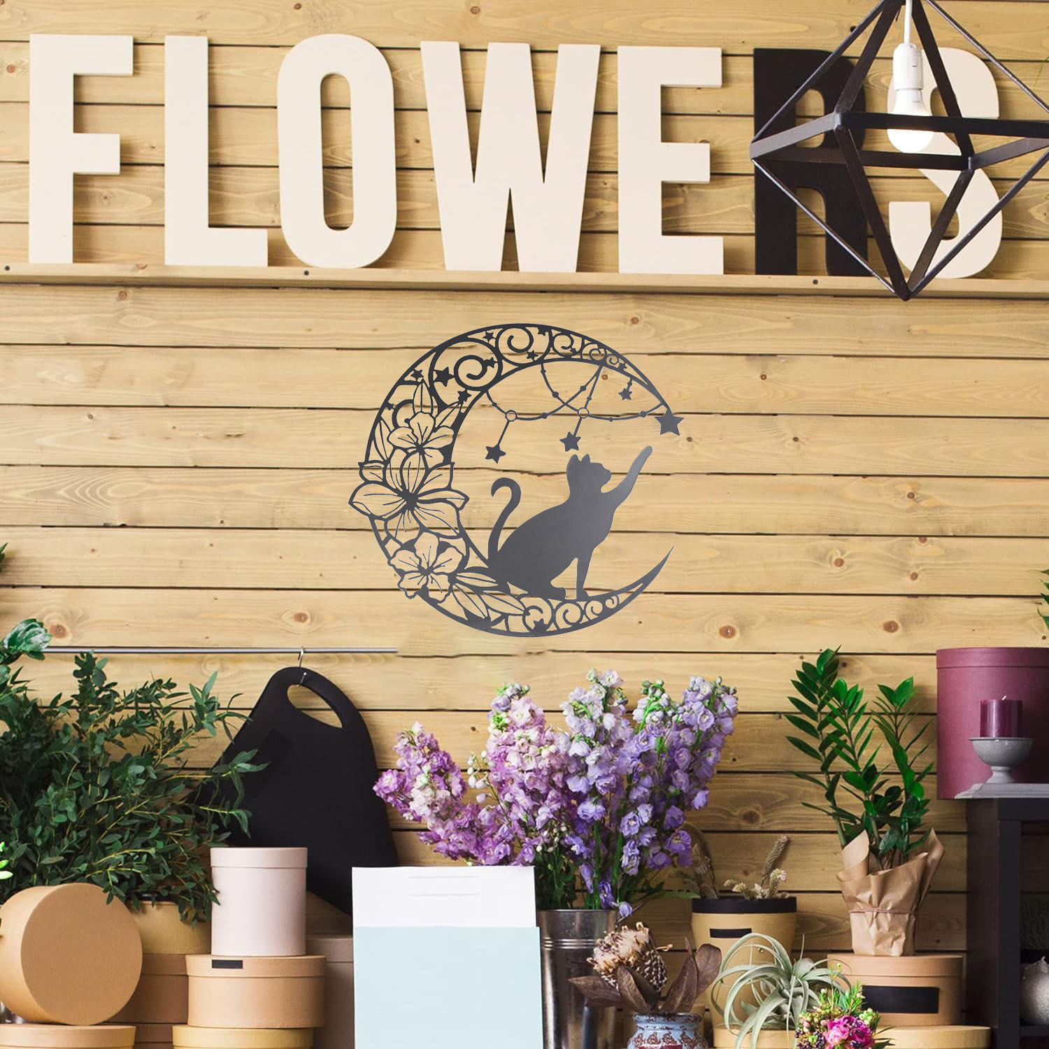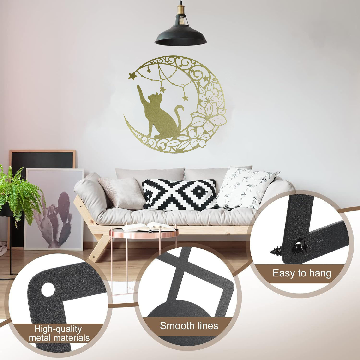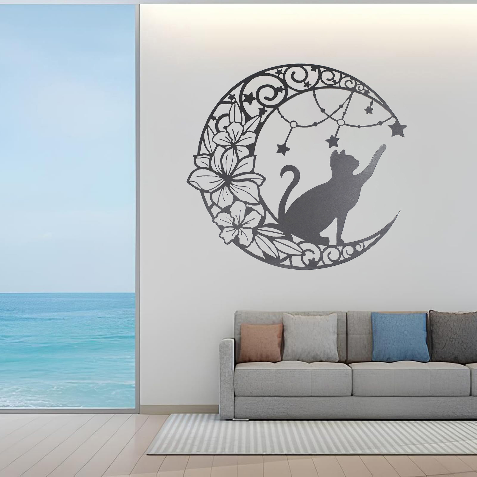 국경 간 실루엣 철 수공예 고양이 스타 따기 집 거실 침실 벽 장식 바 펜던트 벽 장식