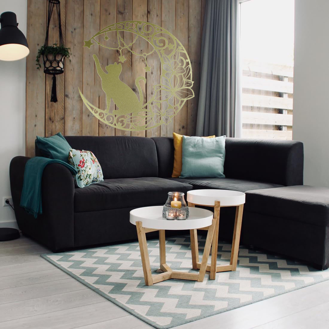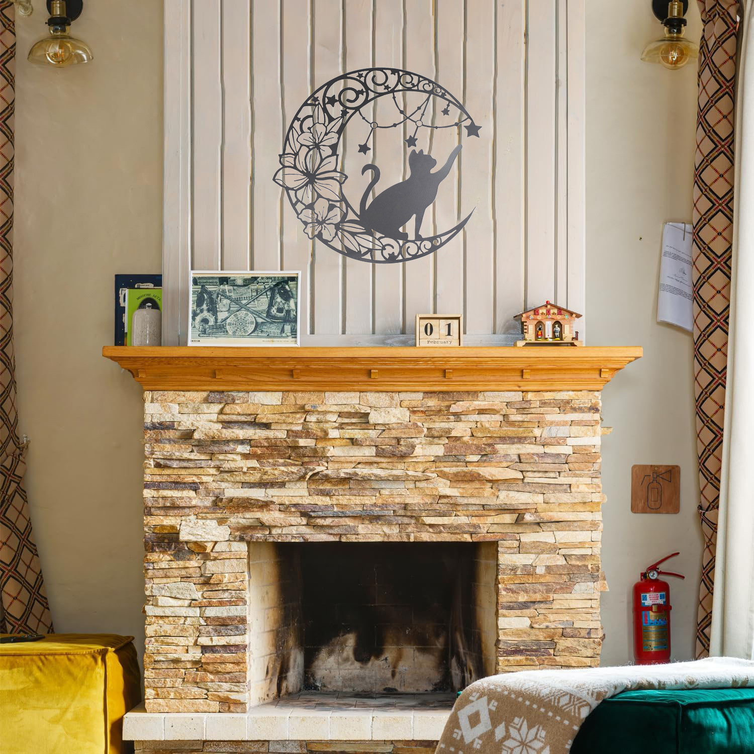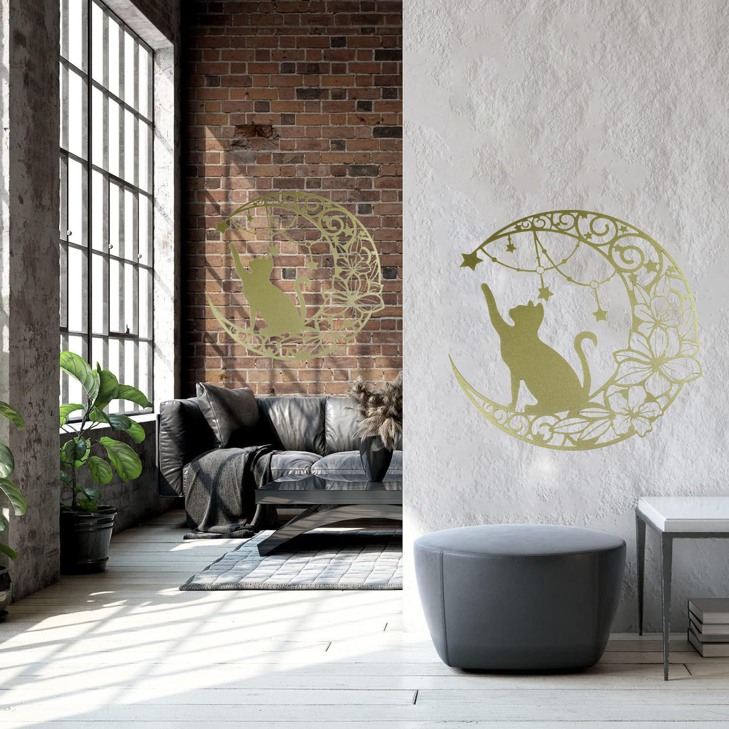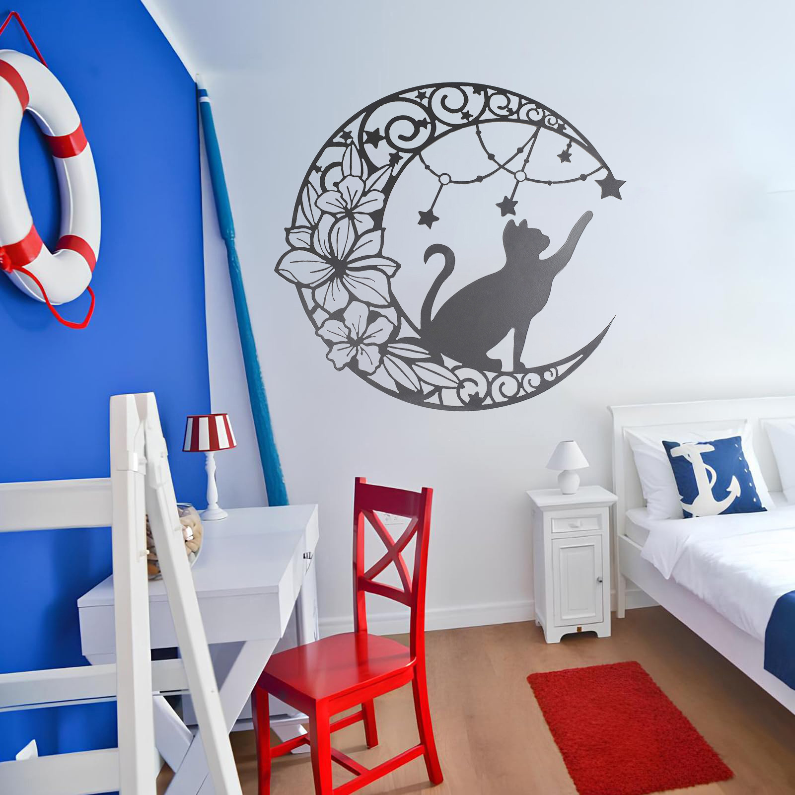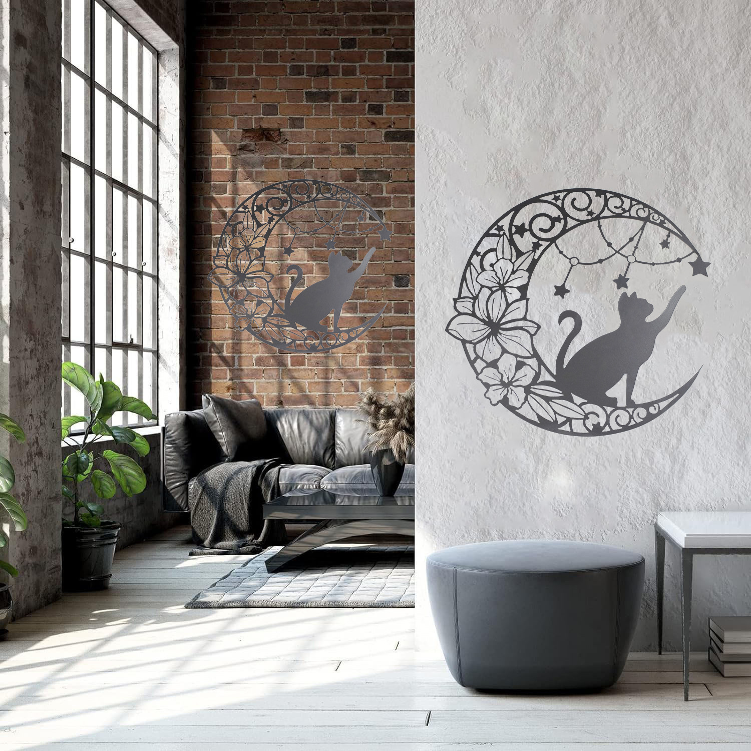국경 간 실루엣 철 수공예 고양이 스타 따기 집 거실 침실 벽 장식 바 펜던트 벽 장식