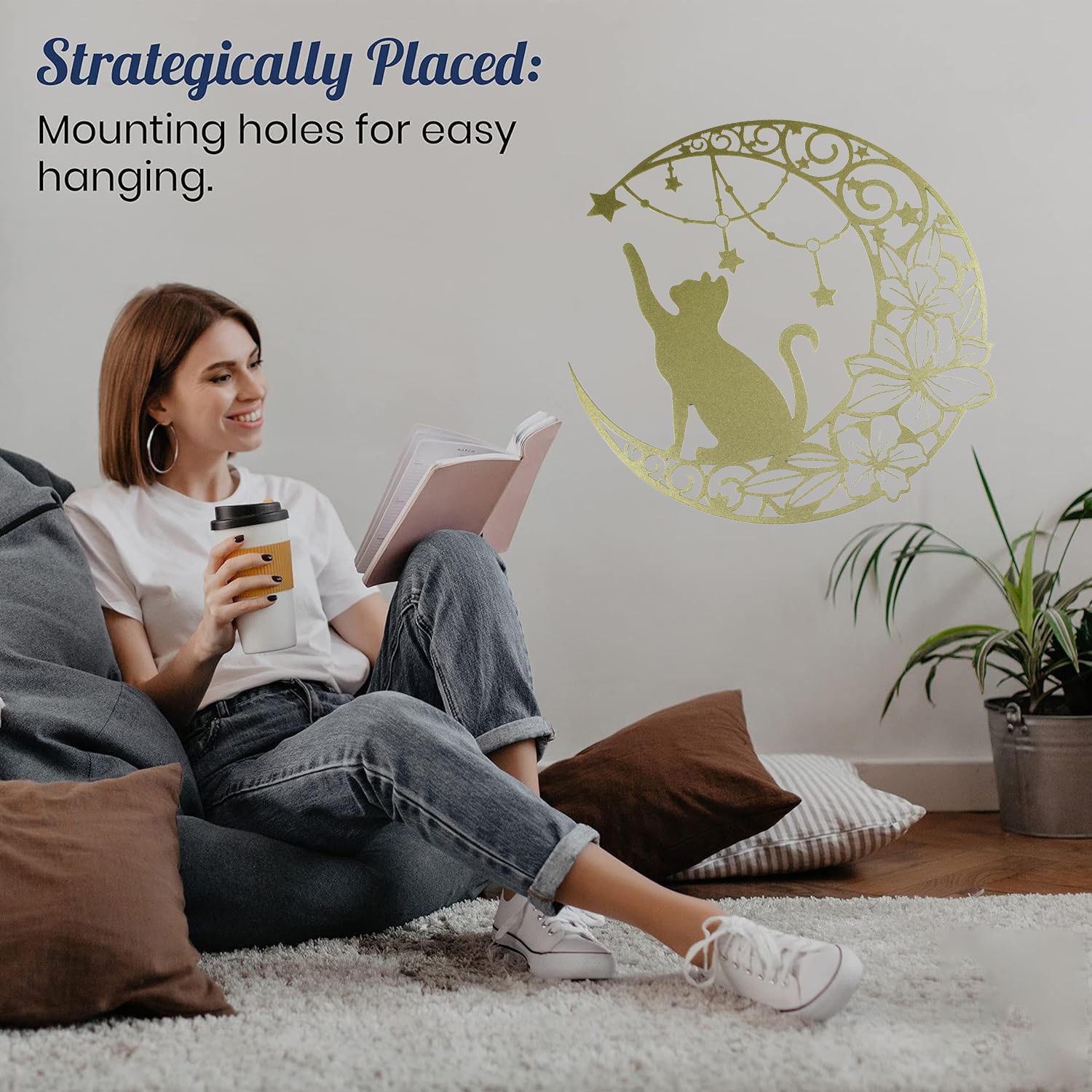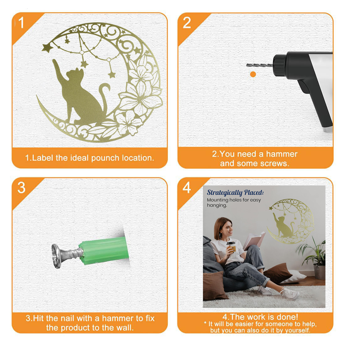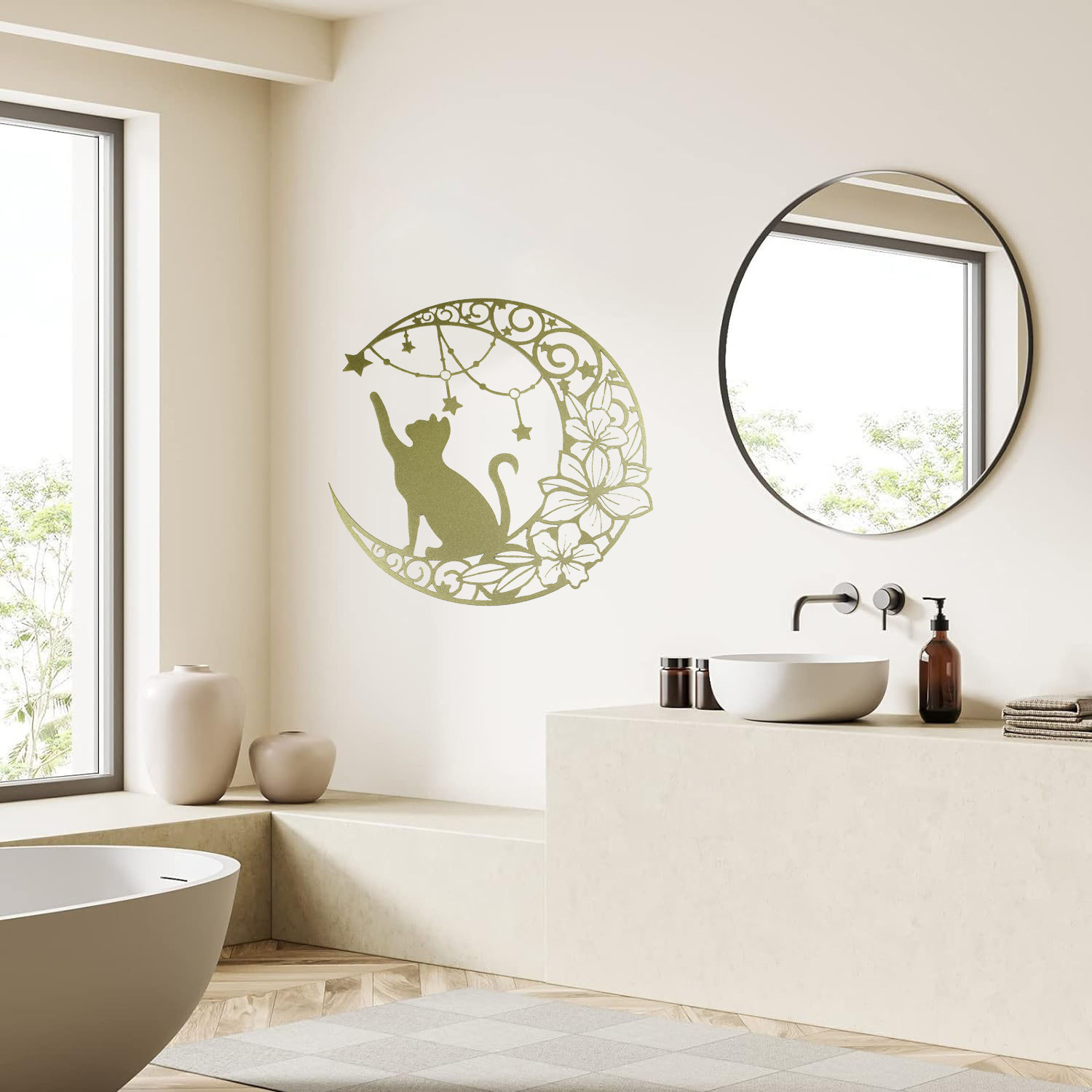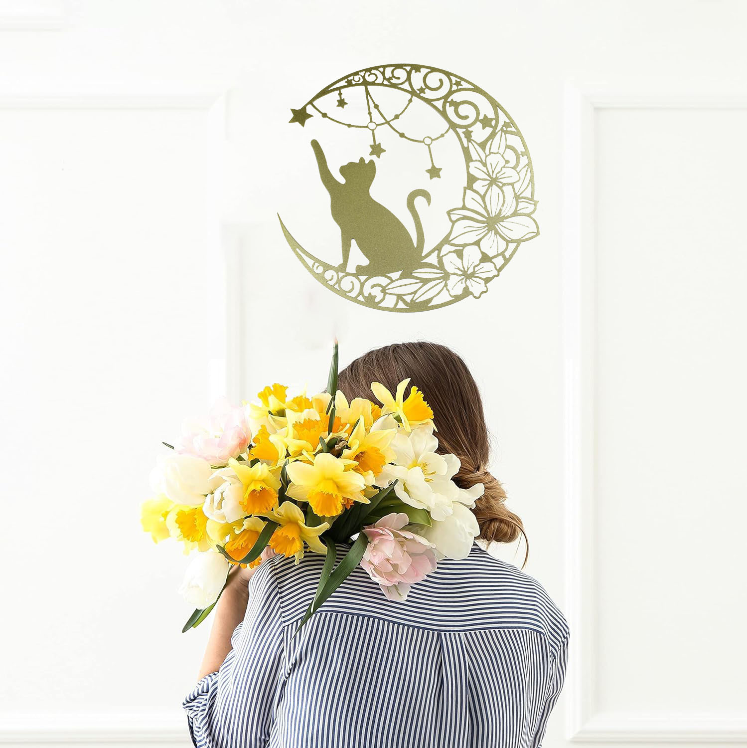 국경 간 실루엣 철 수공예 고양이 스타 따기 집 거실 침실 벽 장식 바 펜던트 벽 장식