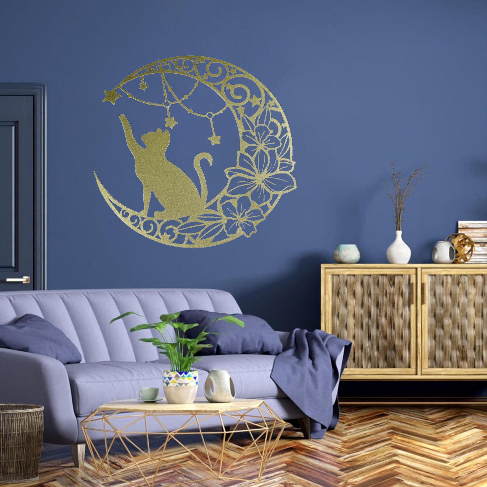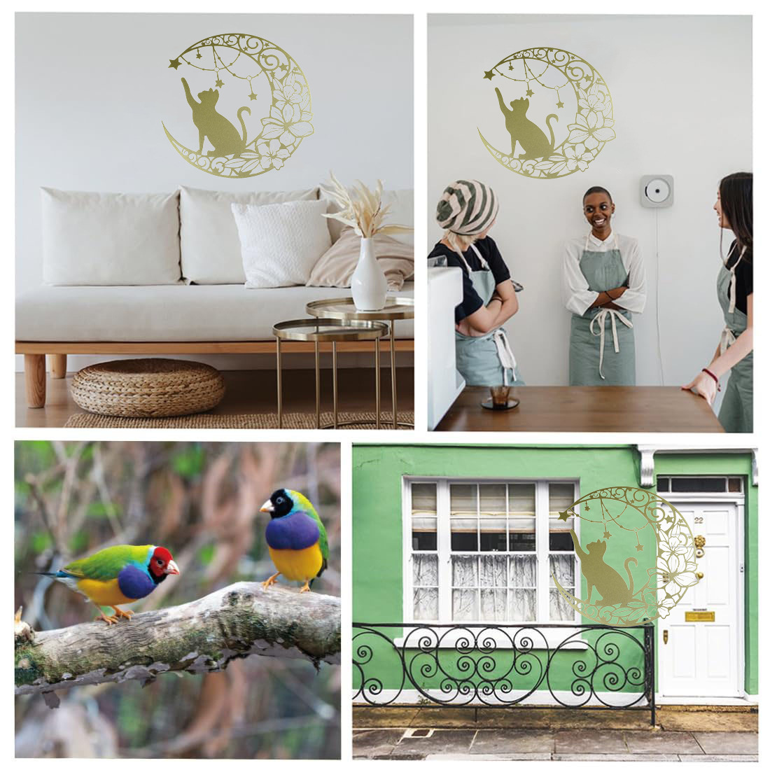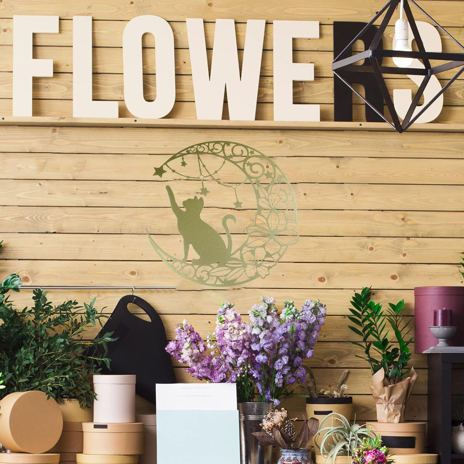 국경 간 실루엣 철 수공예 고양이 스타 따기 집 거실 침실 벽 장식 바 펜던트 벽 장식스토어 가기
