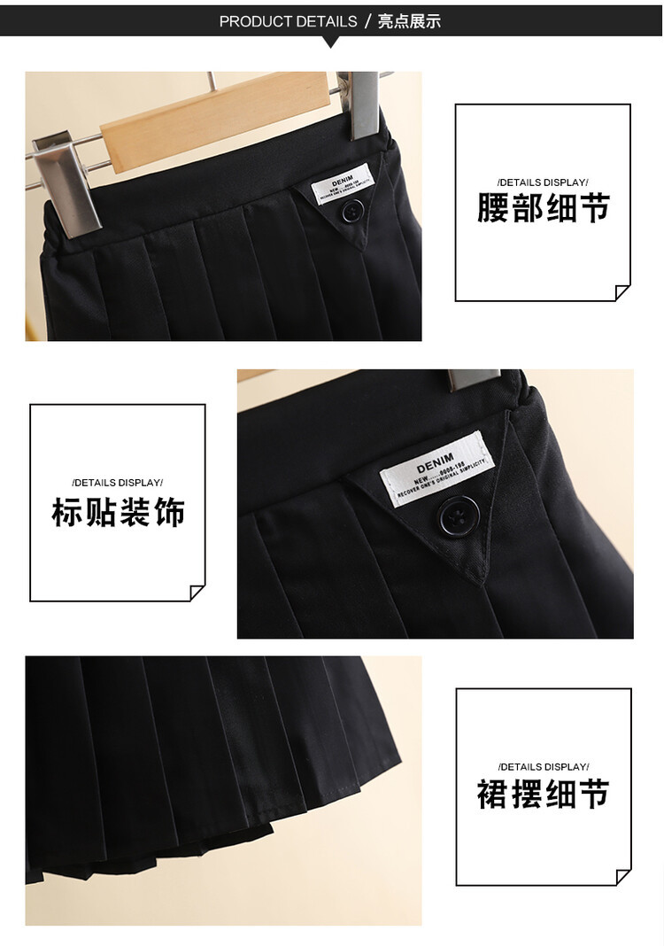 여자 짧은 치마 검은 주름 치마 여자 초등학교 어린이 주름 치마 스커트 2025 가을 검은 치마스토어 가기