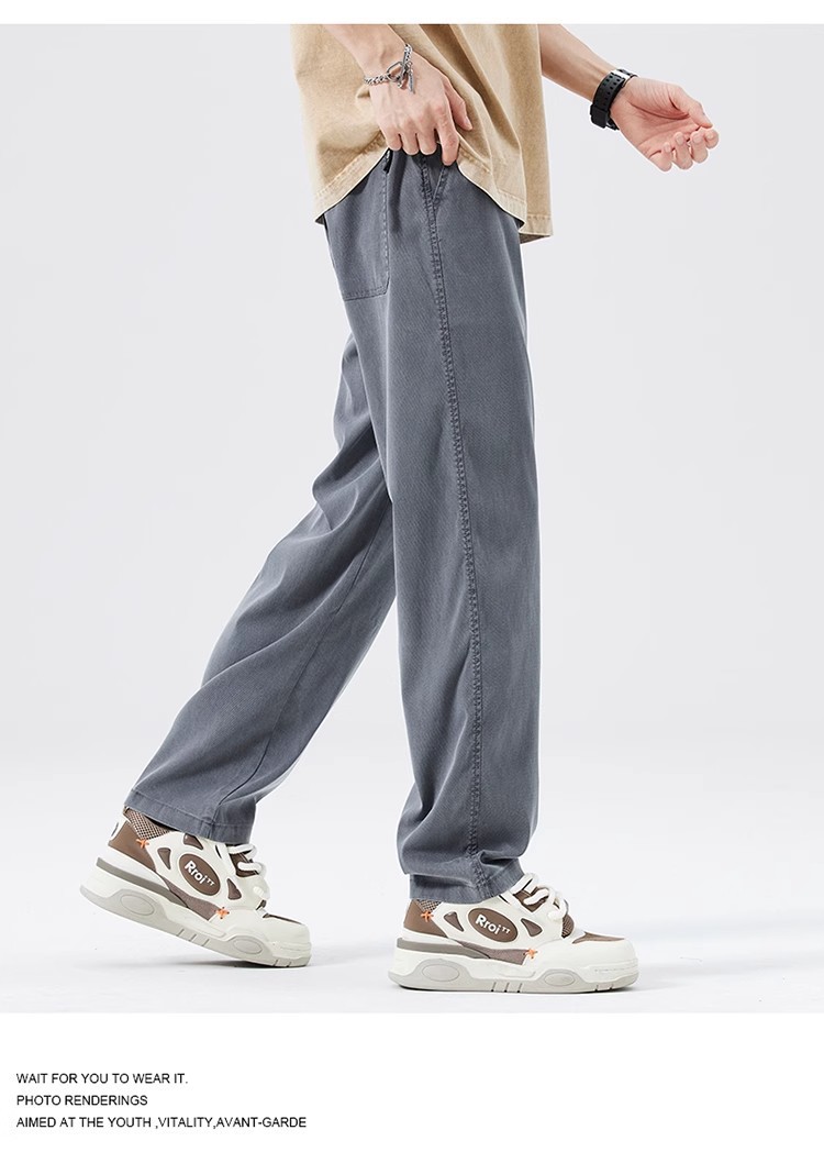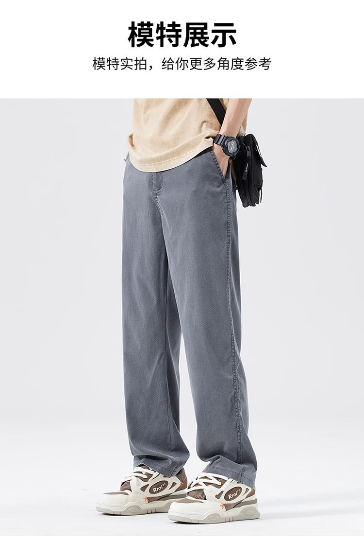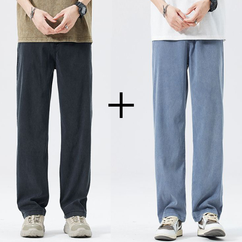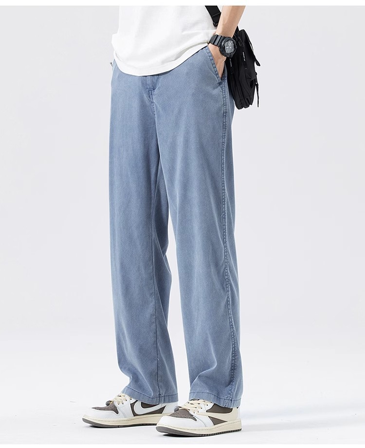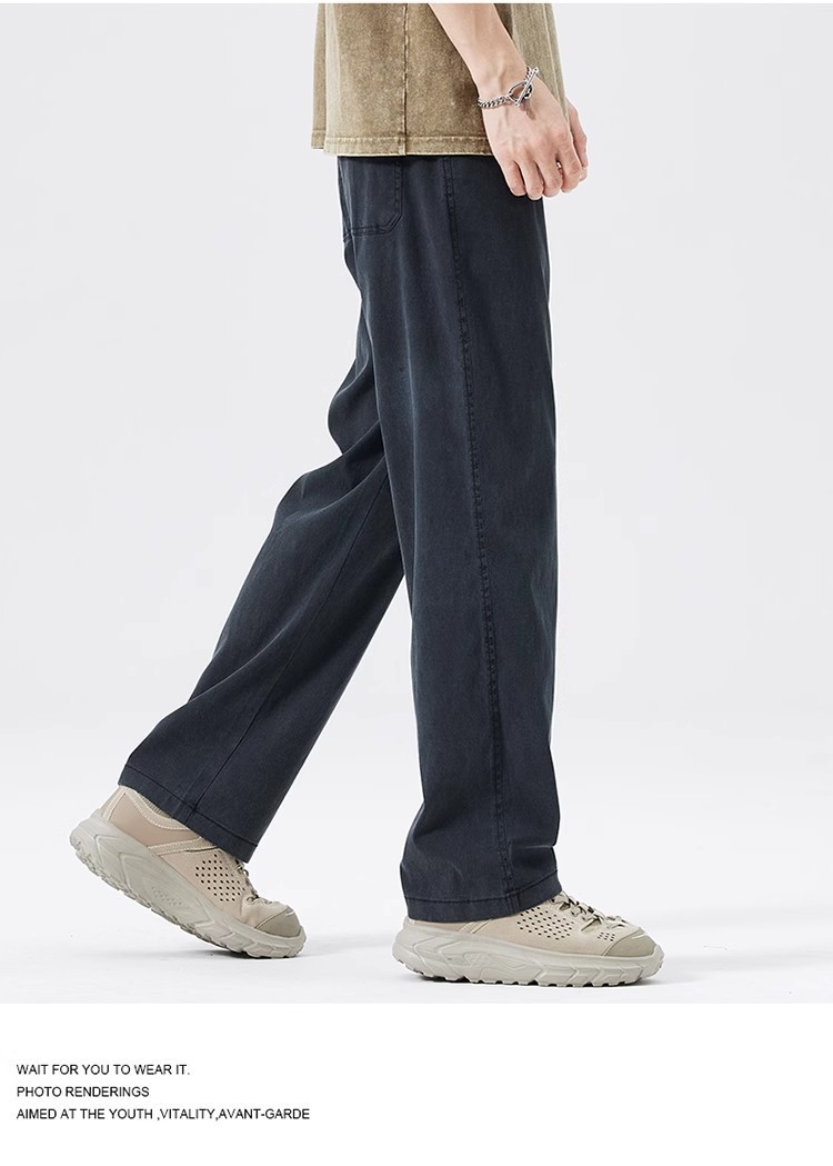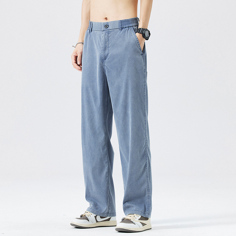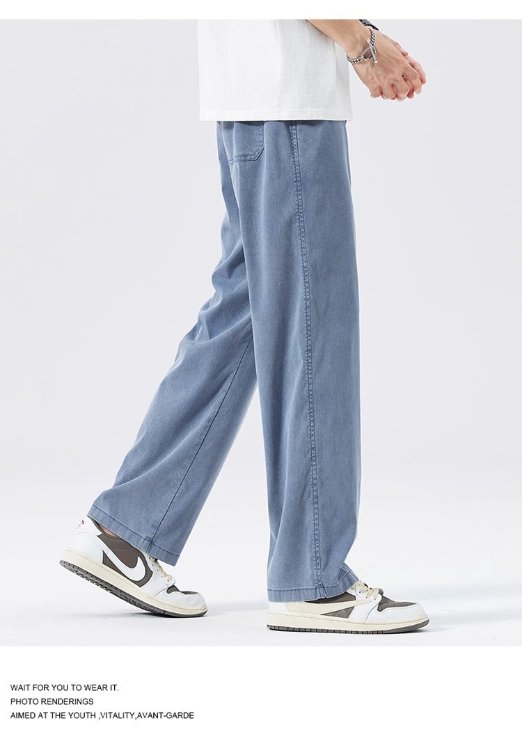 여름 초박형 텐셀 청바지 남자 통기성 트렌디 브랜드 느슨한 와이드 레그 바지 남자 캐주얼 올 매치 아이스 실크 바지스토어 가기
