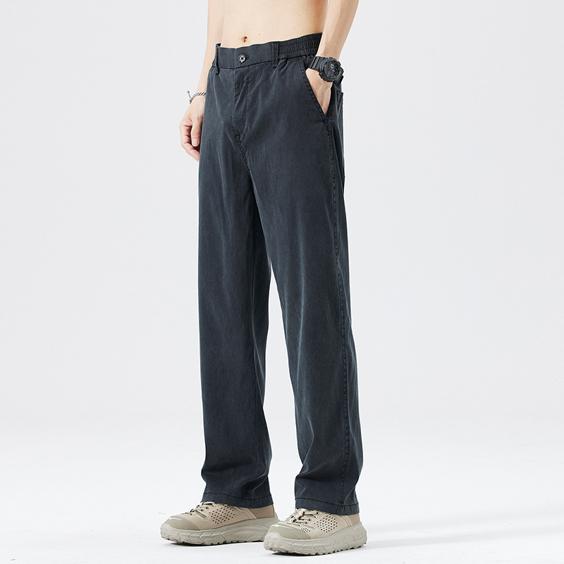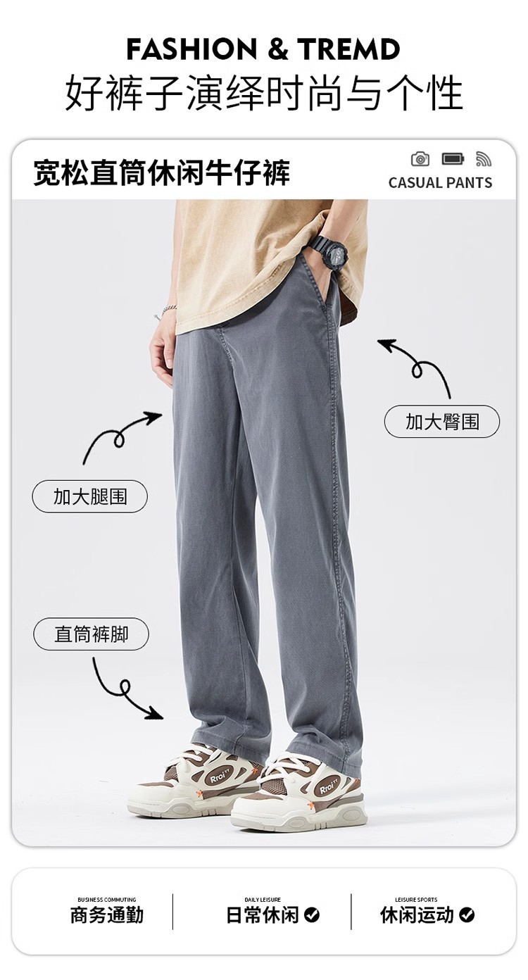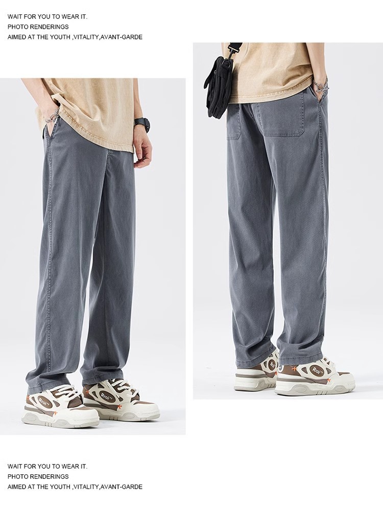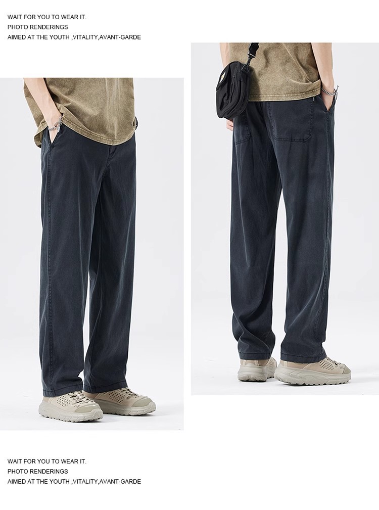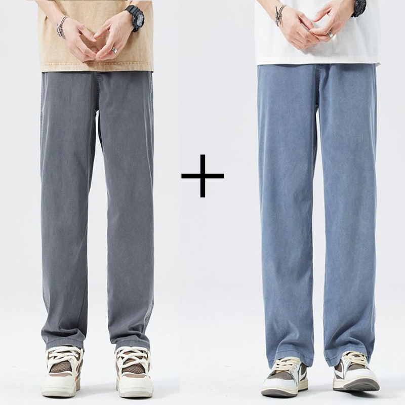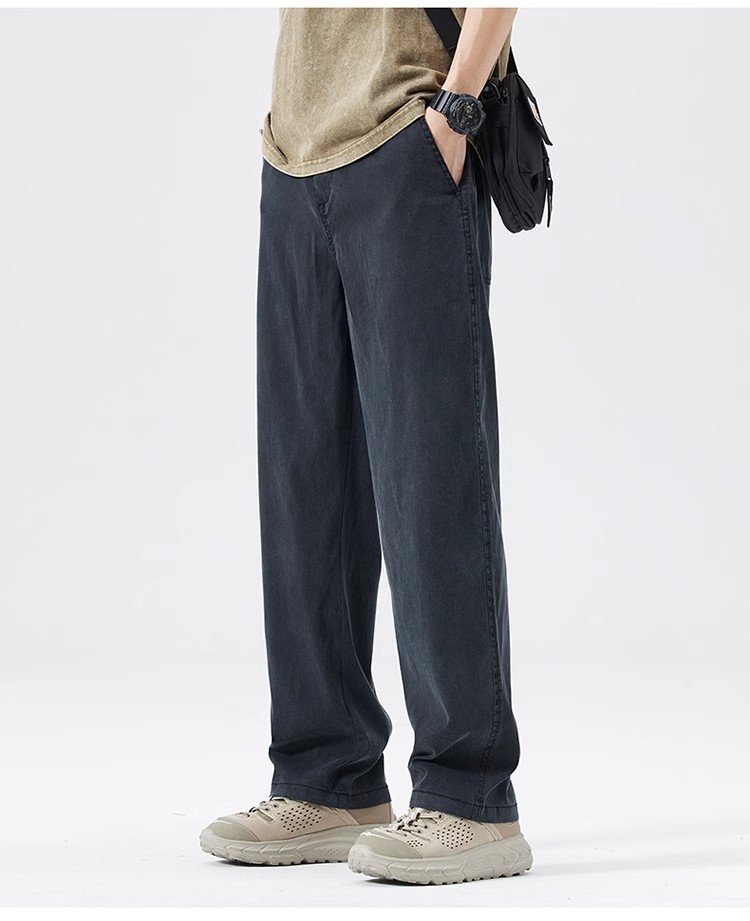 여름 초박형 텐셀 청바지 남자 통기성 트렌디 브랜드 느슨한 와이드 레그 바지 남자 캐주얼 올 매치 아이스 실크 바지스토어 가기