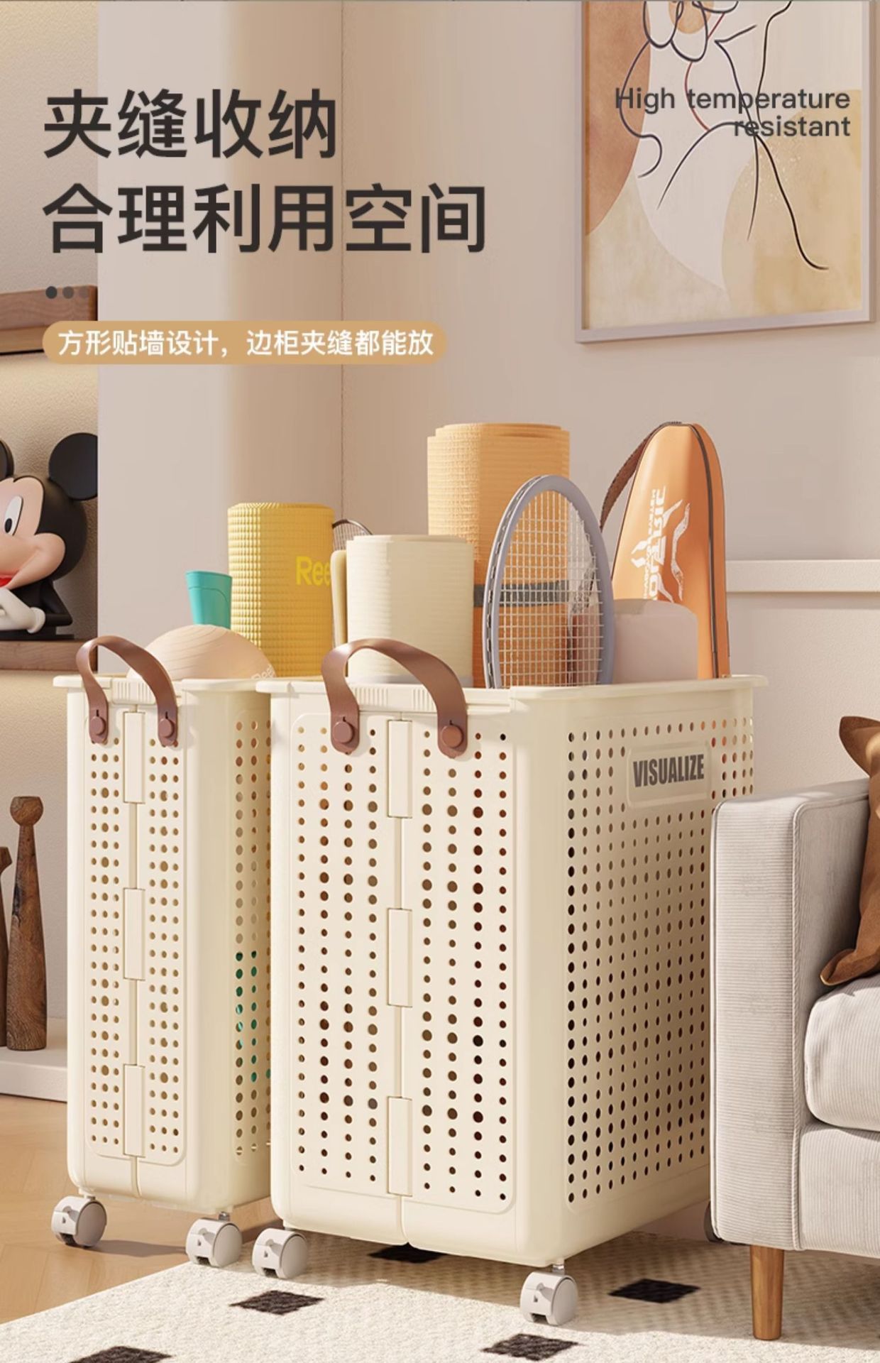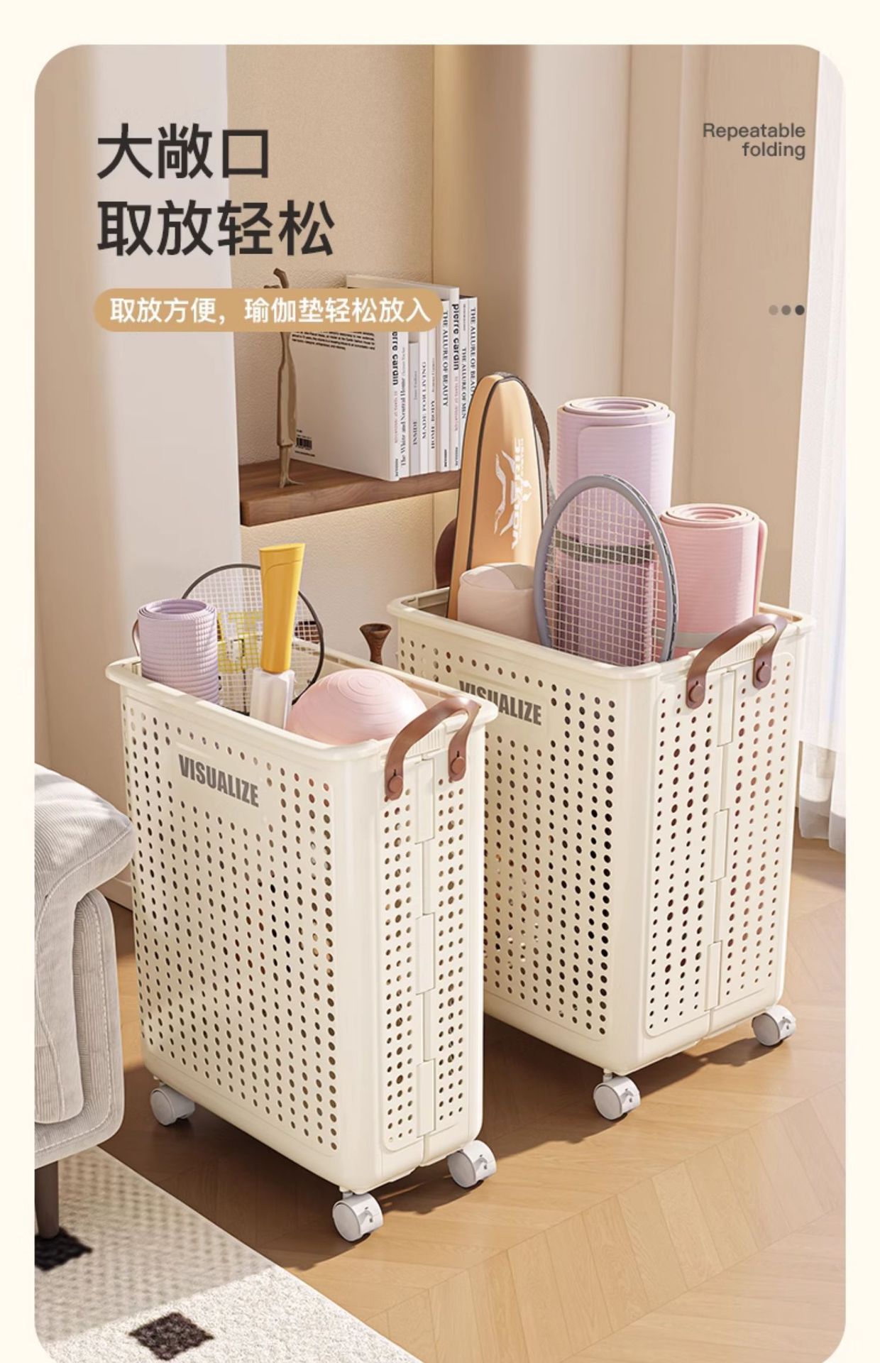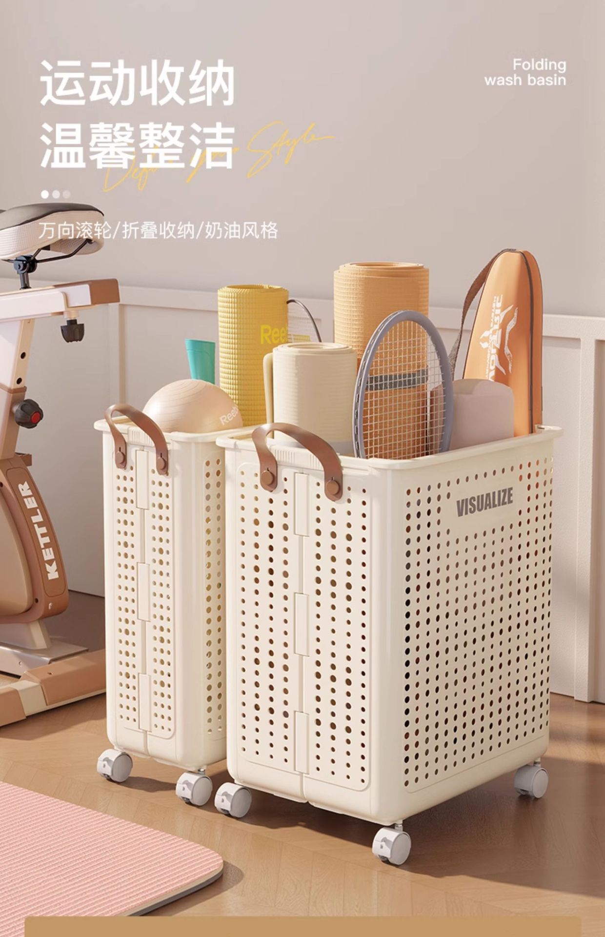 바퀴가 달린 요가 매트 보관 바구니 스포츠 피트니스 장비 가정용 보관 랙 다기능 아티팩트 폼 샤프트 보관 바구니스토어 가기