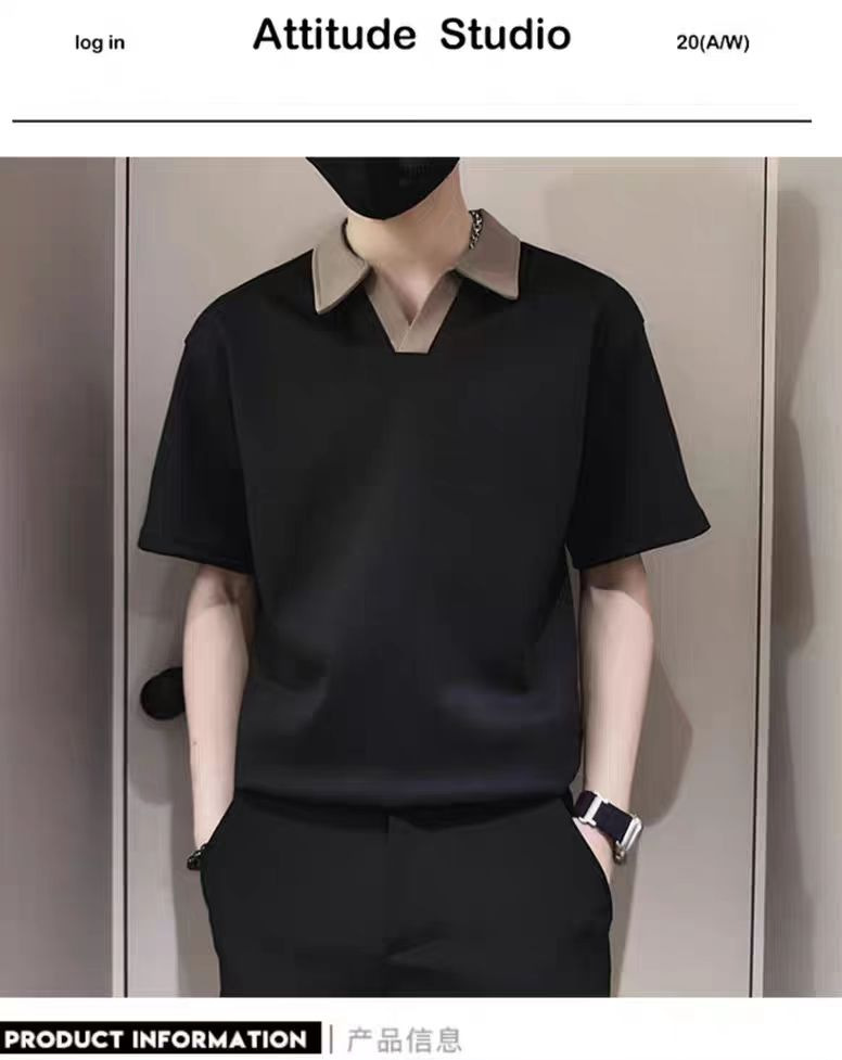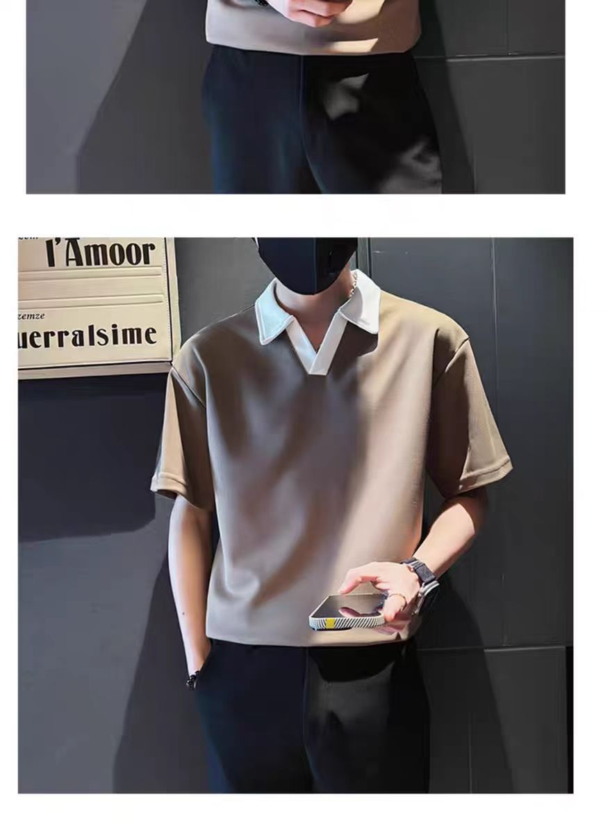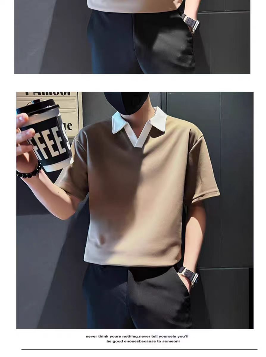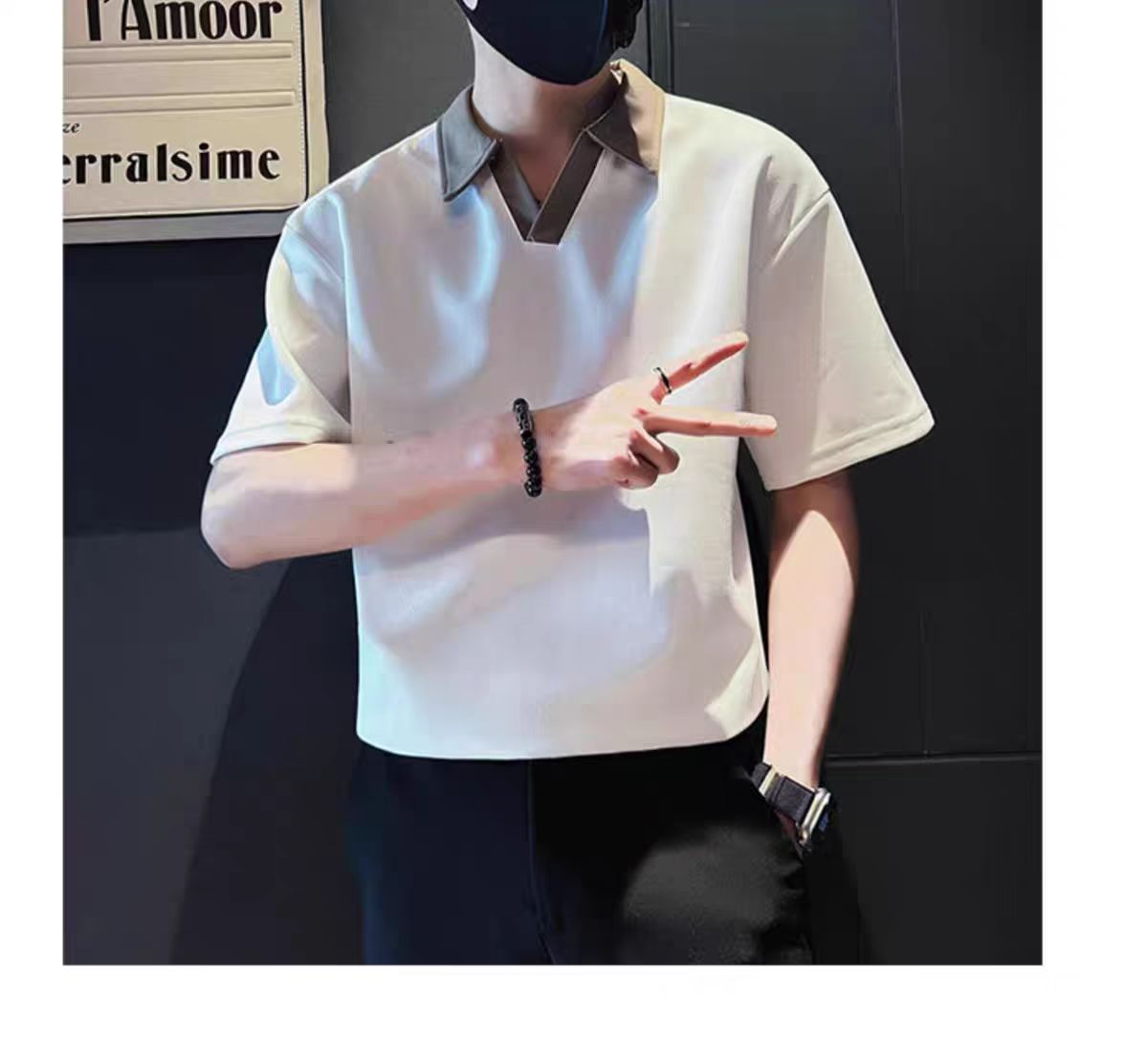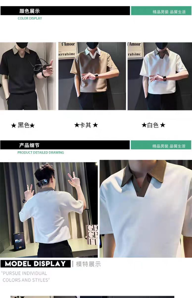 하이 엔드 반팔 남성 여름 트렌디 브랜드 플랑크톤 잘 생긴 콘트라스트 컬러 티셔츠 2024 새로운 패션 올매치 옷깃 폴로 셔츠스토어 가기