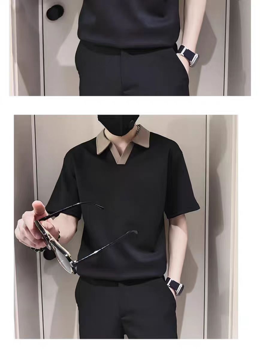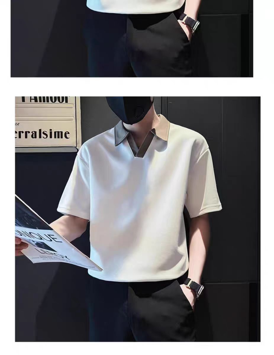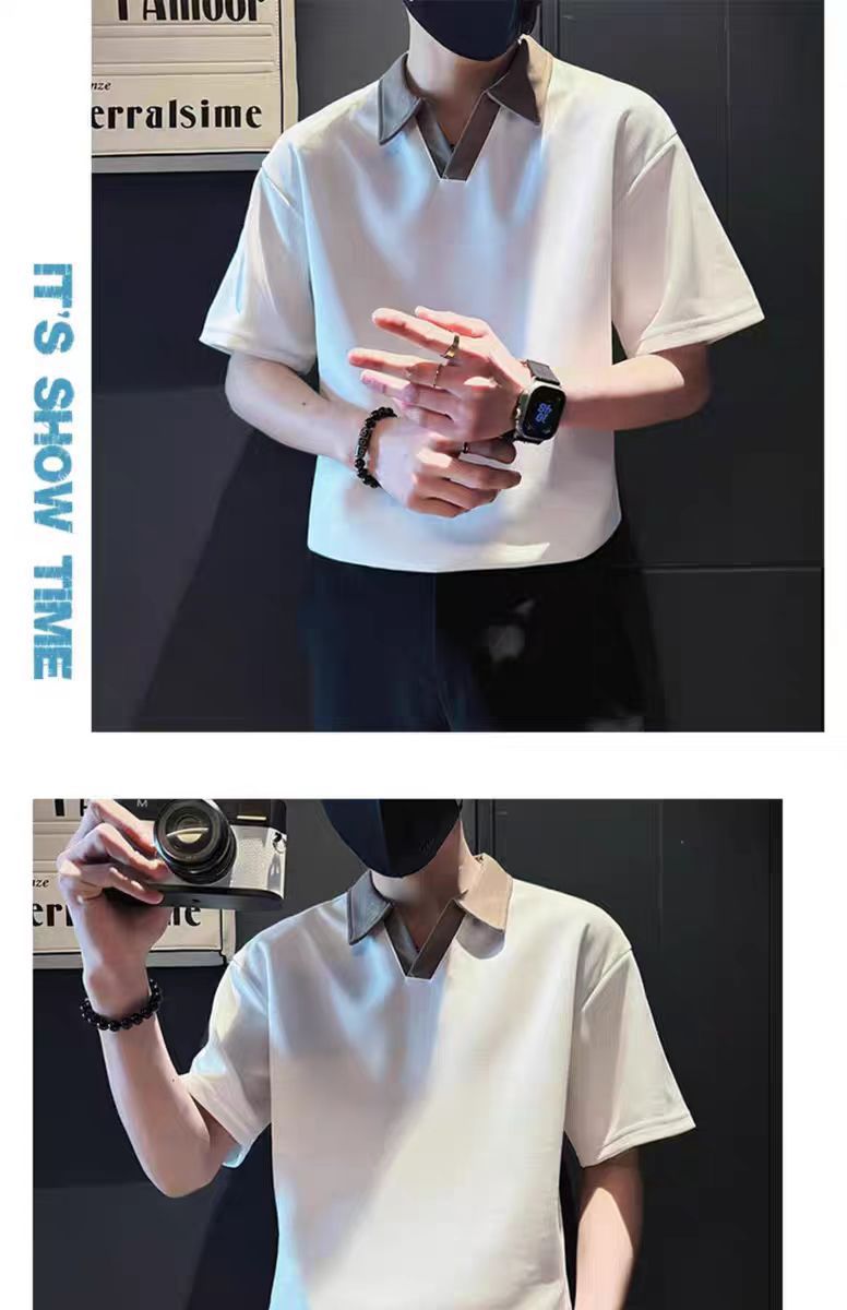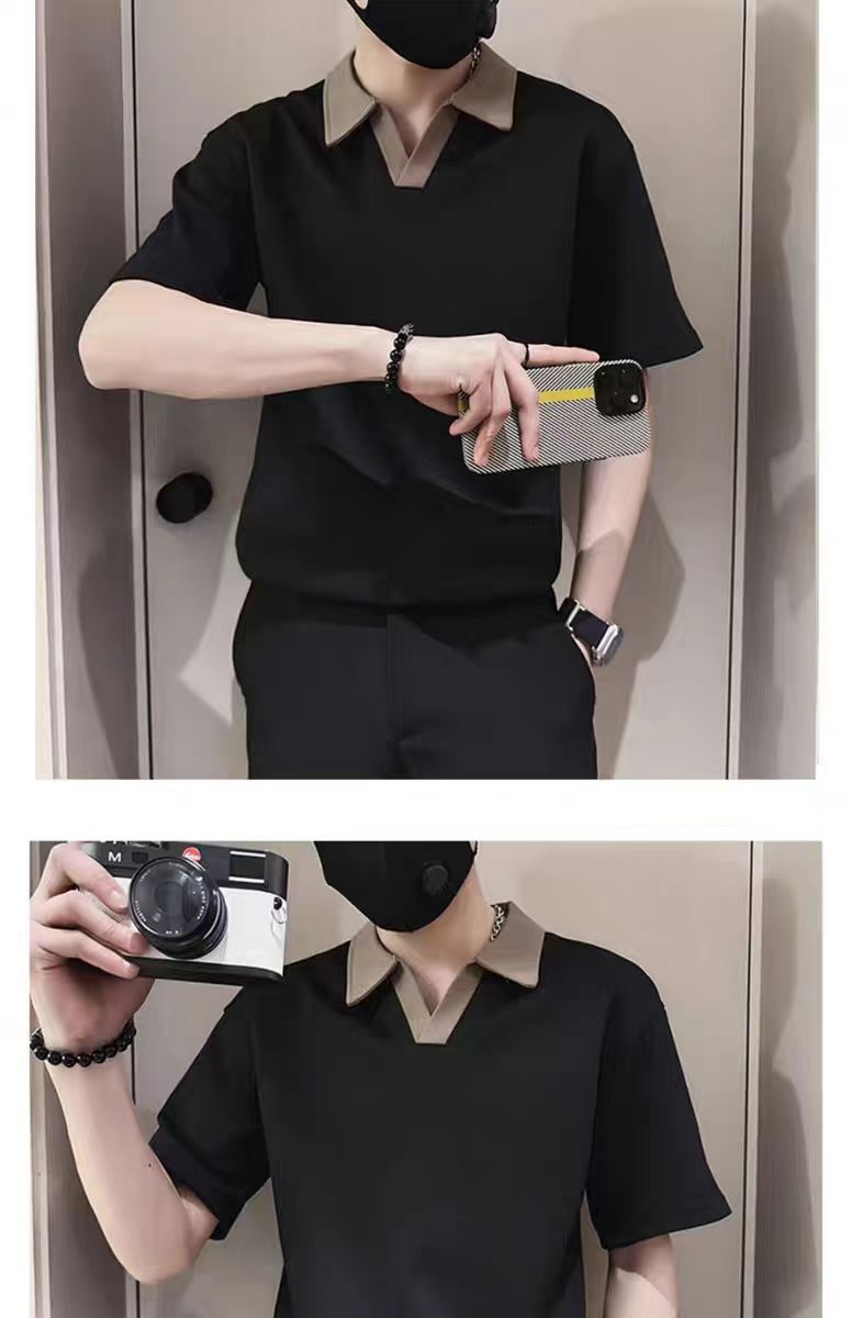 하이 엔드 반팔 남성 여름 트렌디 브랜드 플랑크톤 잘 생긴 콘트라스트 컬러 티셔츠 2024 새로운 패션 올매치 옷깃 폴로 셔츠