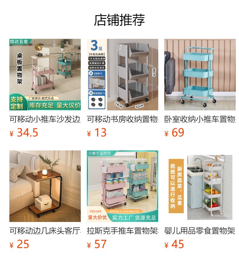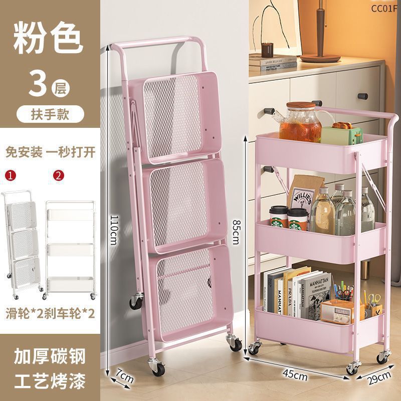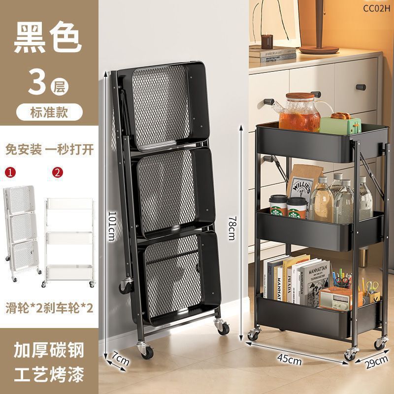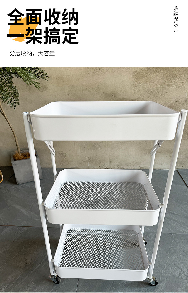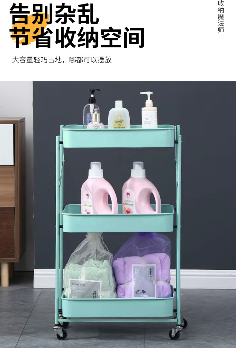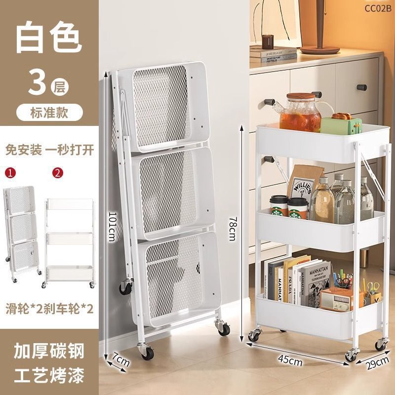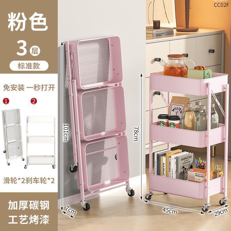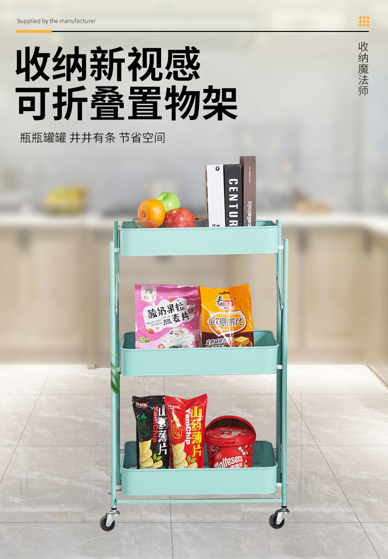 折叠移动收纳架家用可移动零食堆放置物架客厅厨房小推车置物架