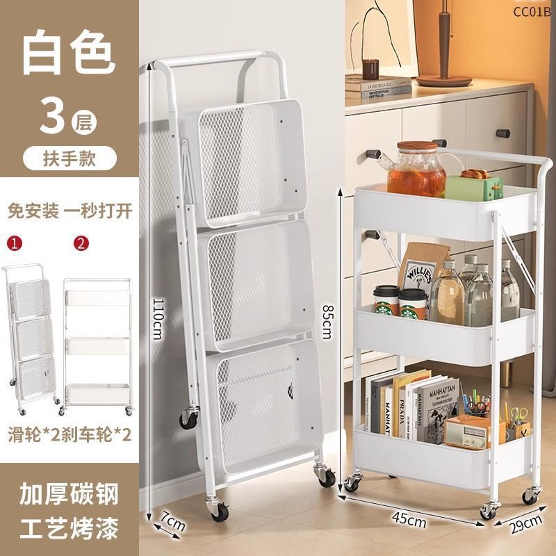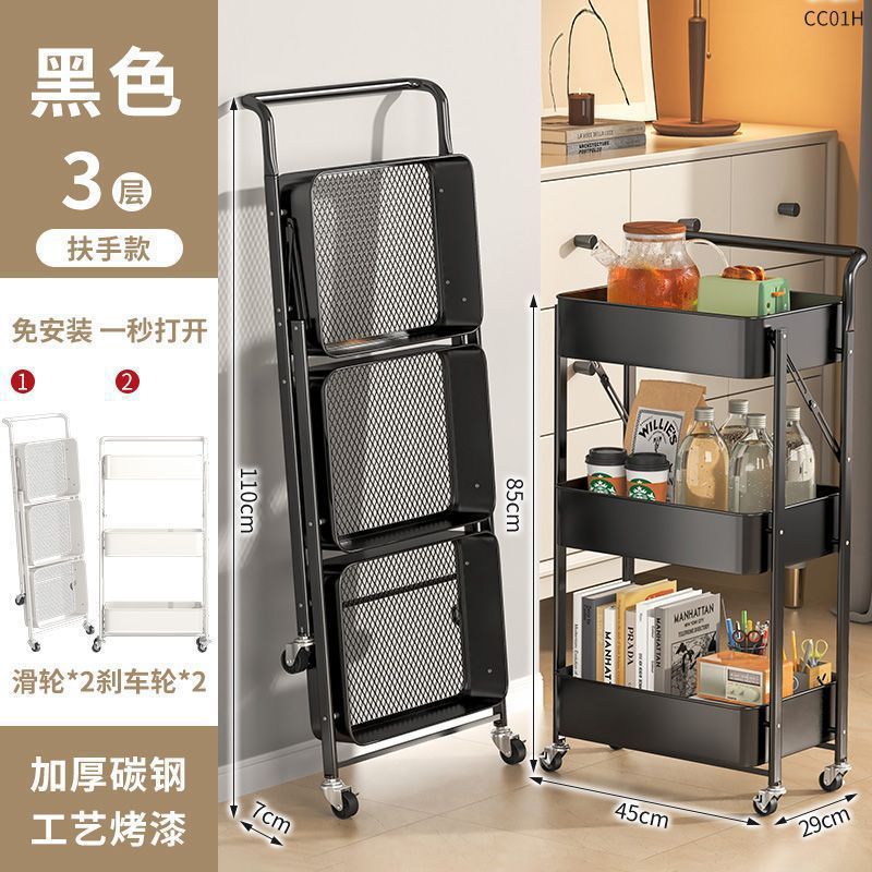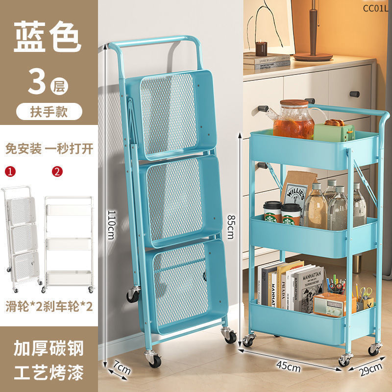 접이식 모바일 스토리지 랙 가정용 이동식 스낵 스태킹 스토리지 랙 거실 주방 트롤리 스토리지 랙
