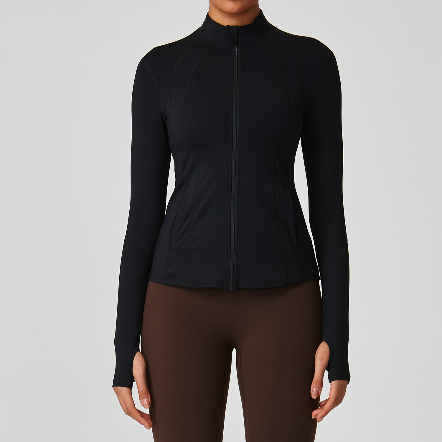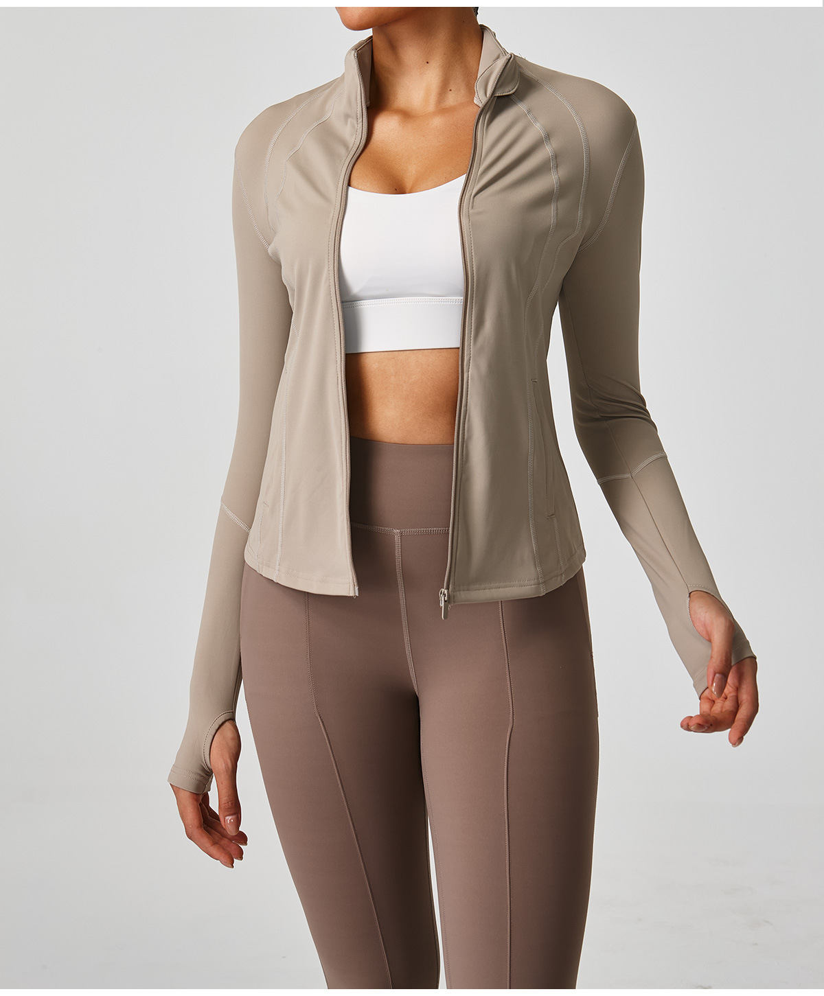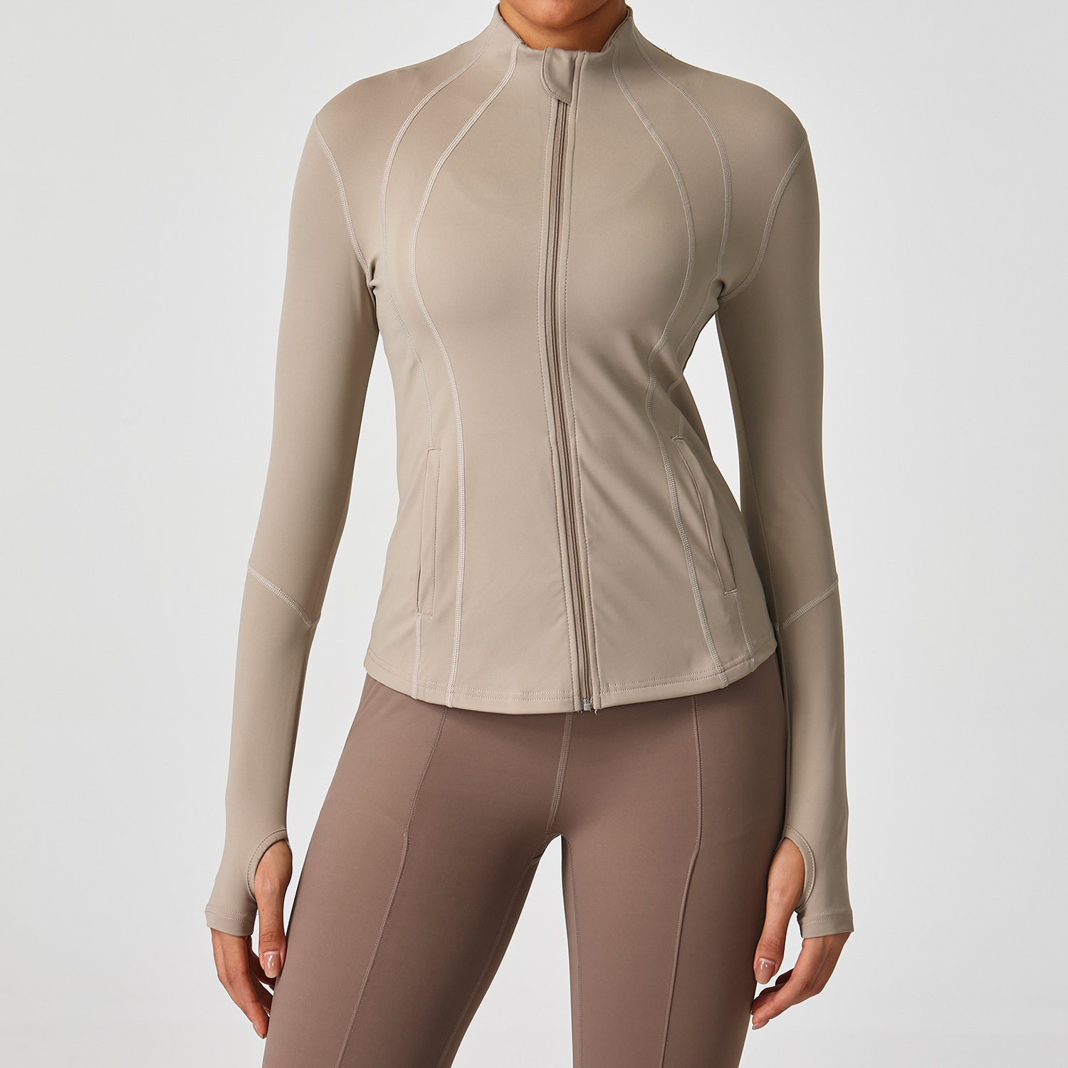 2025 신상 스탠드 칼라 지퍼 요가복 여성 러닝 트레이닝 속건 스포츠 상의 긴팔 피트니스복