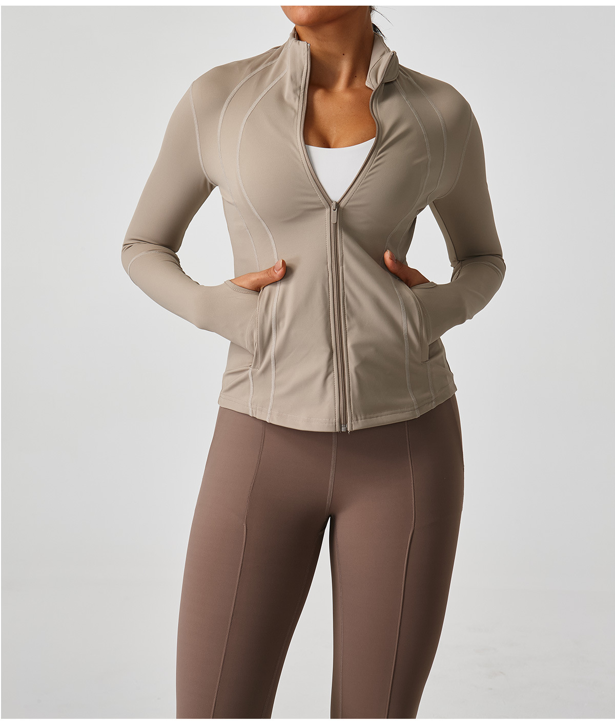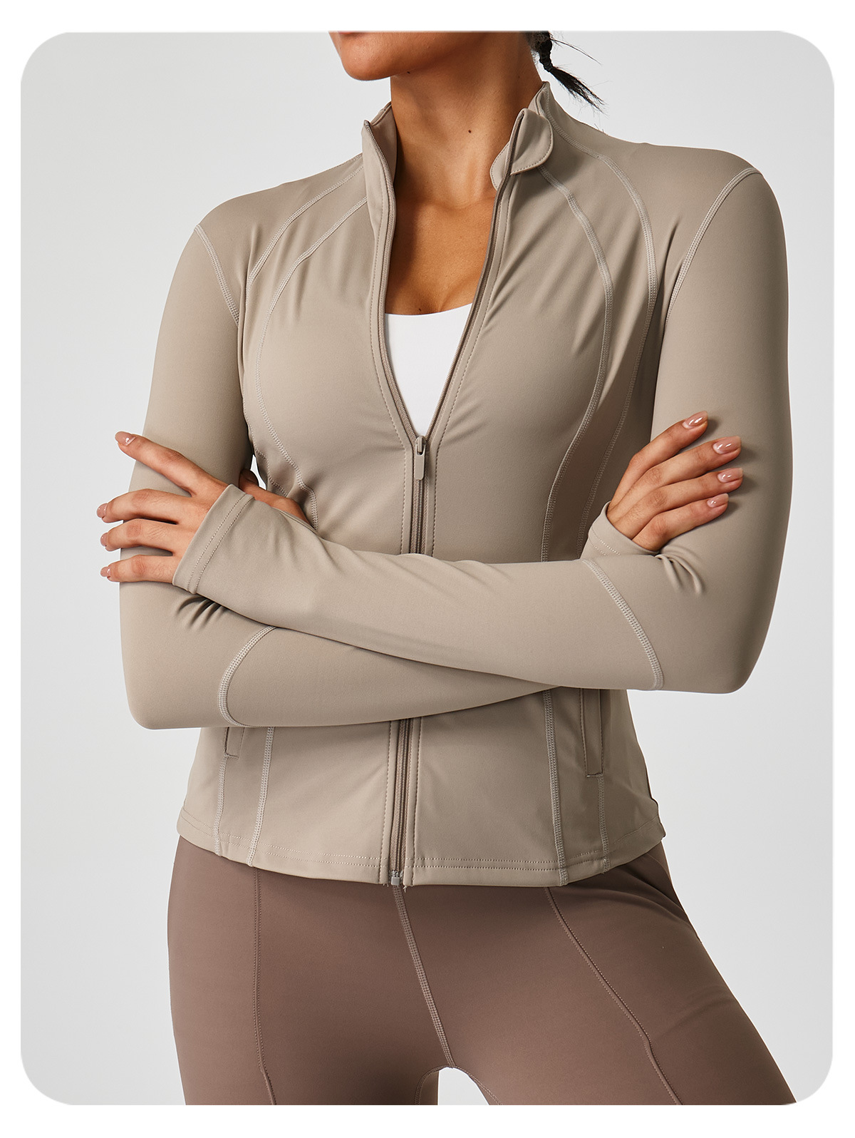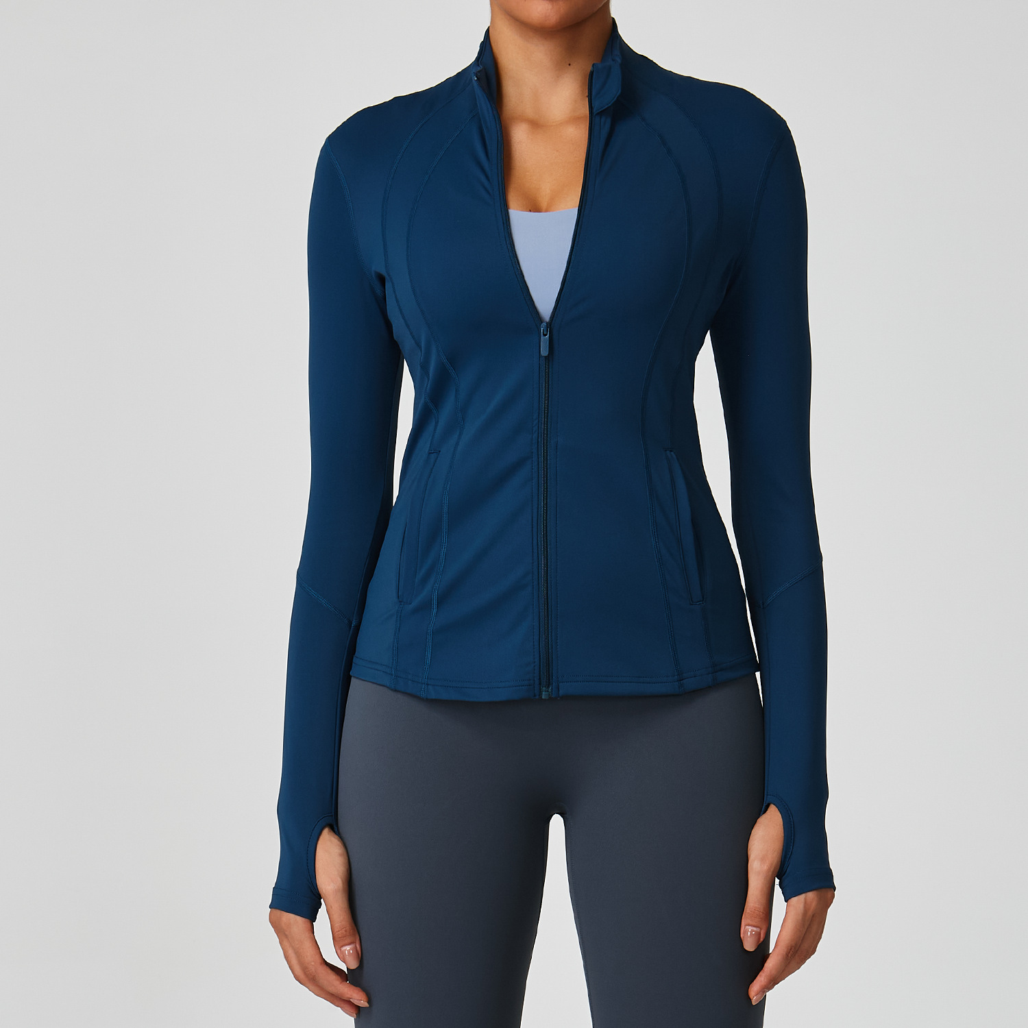 2025 신상 스탠드 칼라 지퍼 요가복 여성 러닝 트레이닝 속건 스포츠 상의 긴팔 피트니스복
