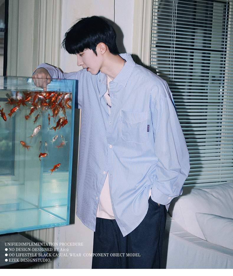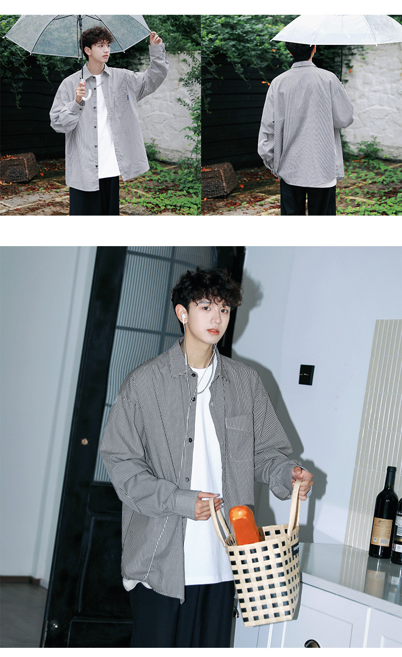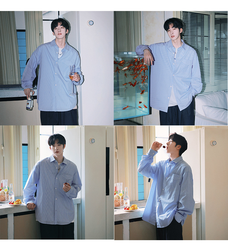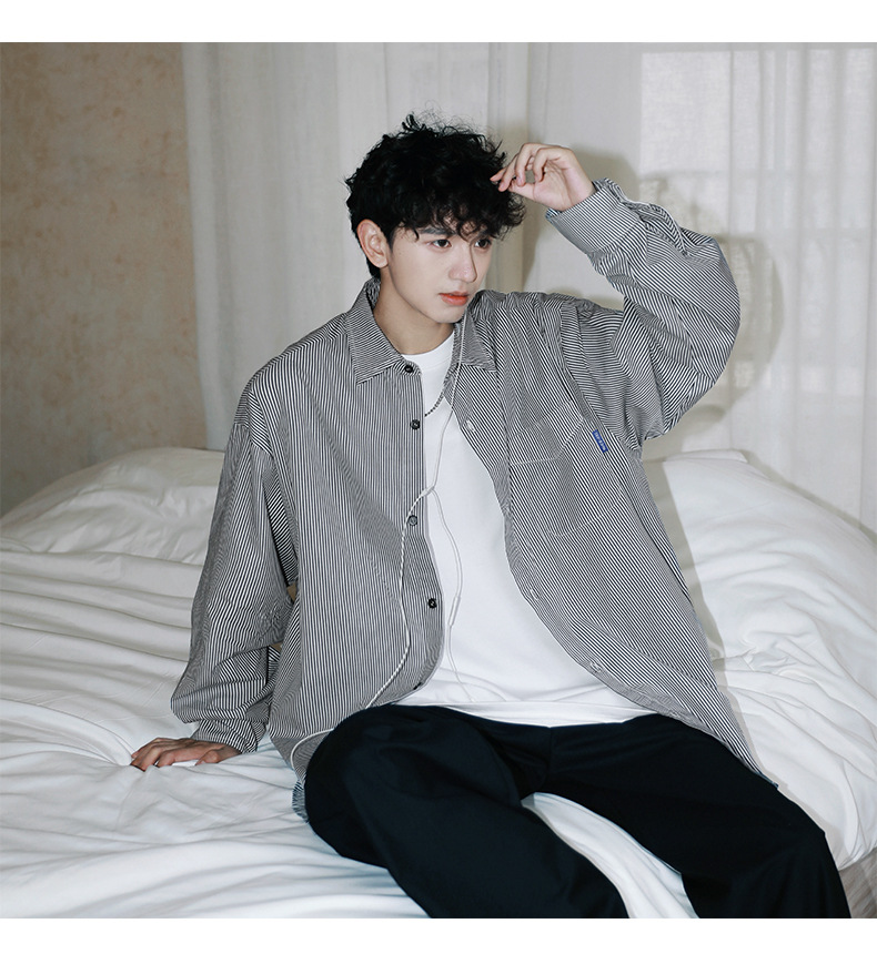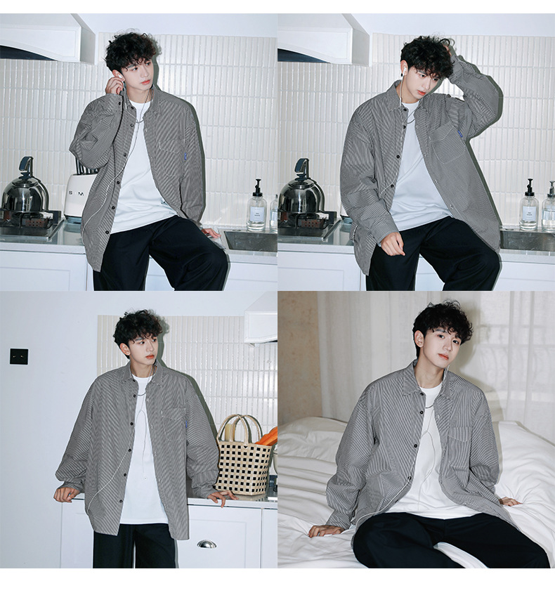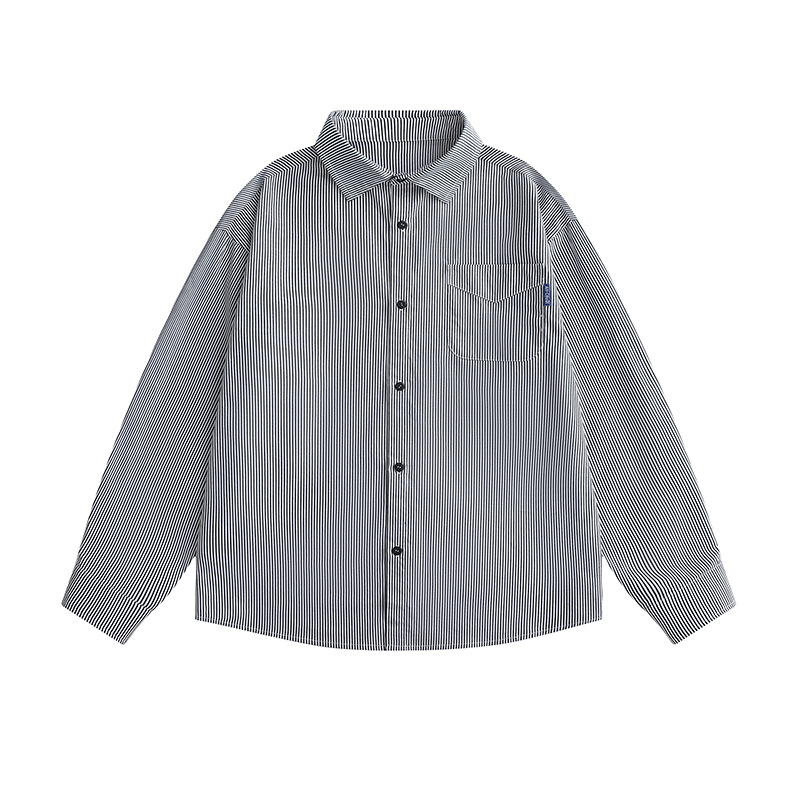 ACU 남성복 | 세로 스트라이프 스트리트 패션 아메리칸 스타일 배색 셔츠 2026 가을 트렌드 브랜드 루즈핏 커플 긴팔 셔츠 남성용스토어 가기