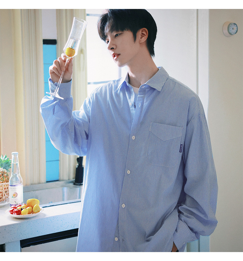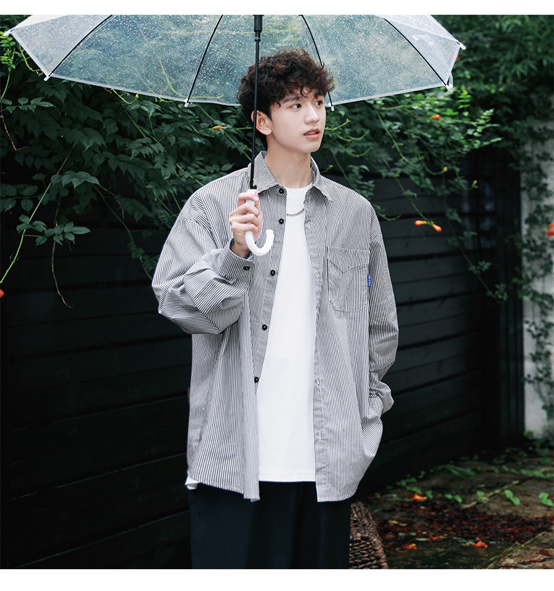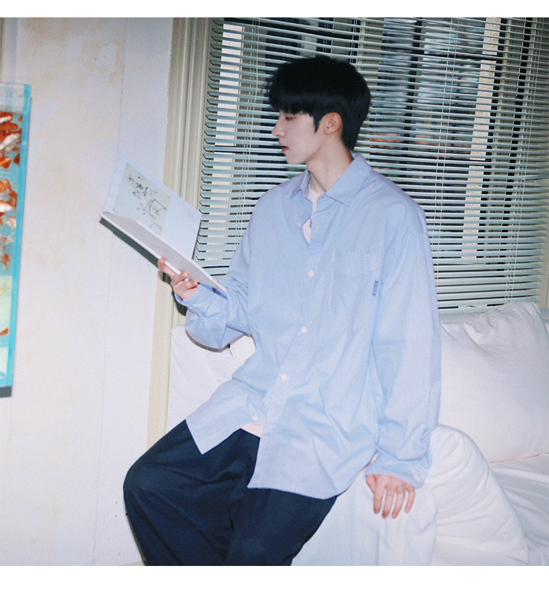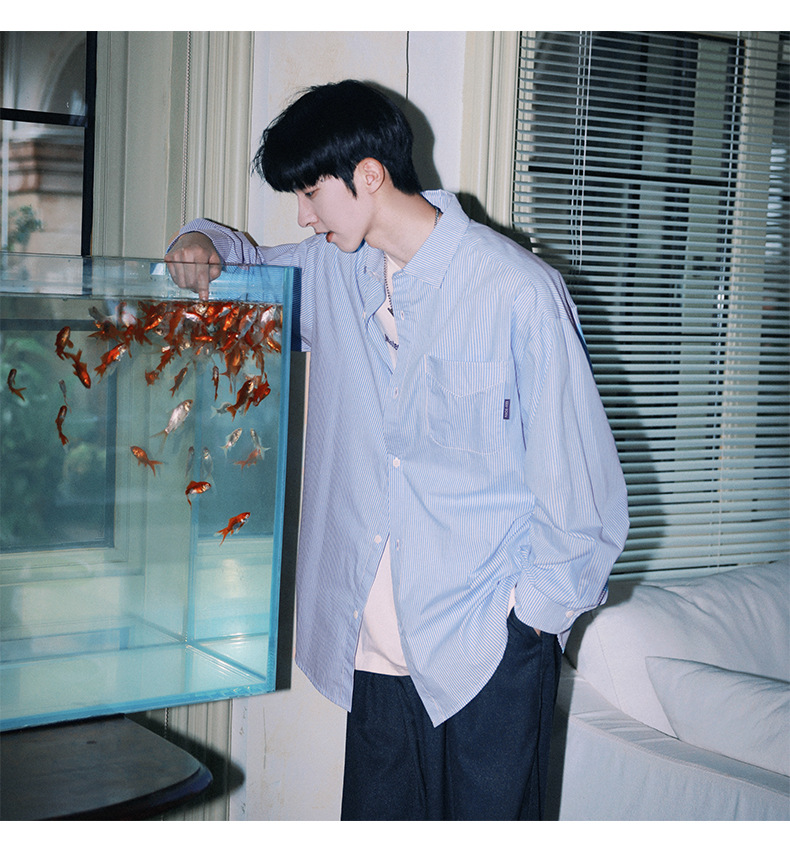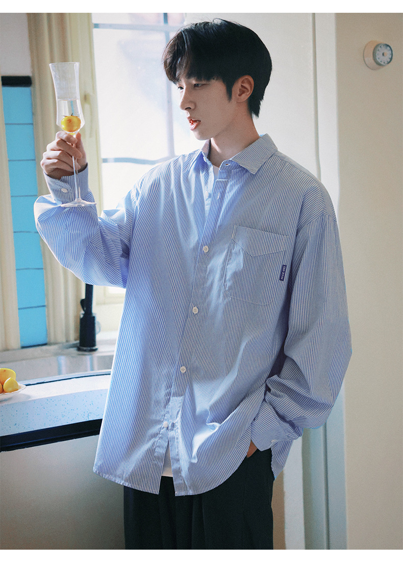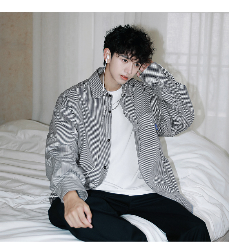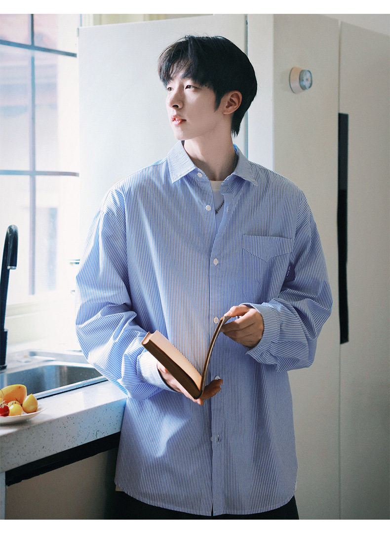 ACU 남성복 | 세로 스트라이프 스트리트 패션 아메리칸 스타일 배색 셔츠 2026 가을 트렌드 브랜드 루즈핏 커플 긴팔 셔츠 남성용스토어 가기