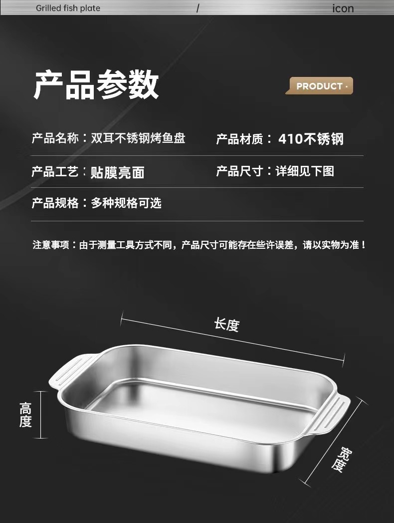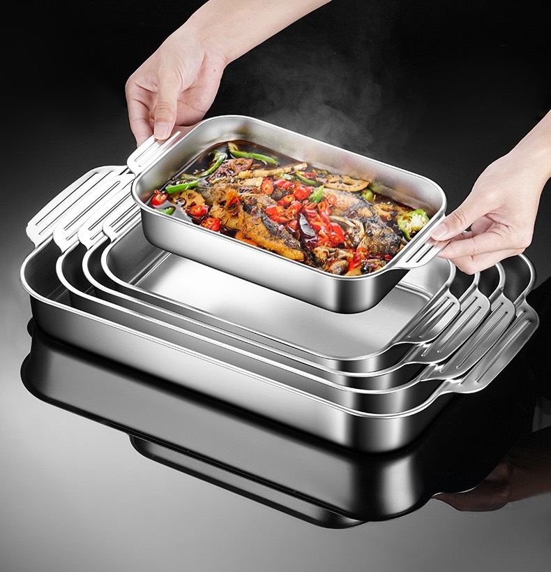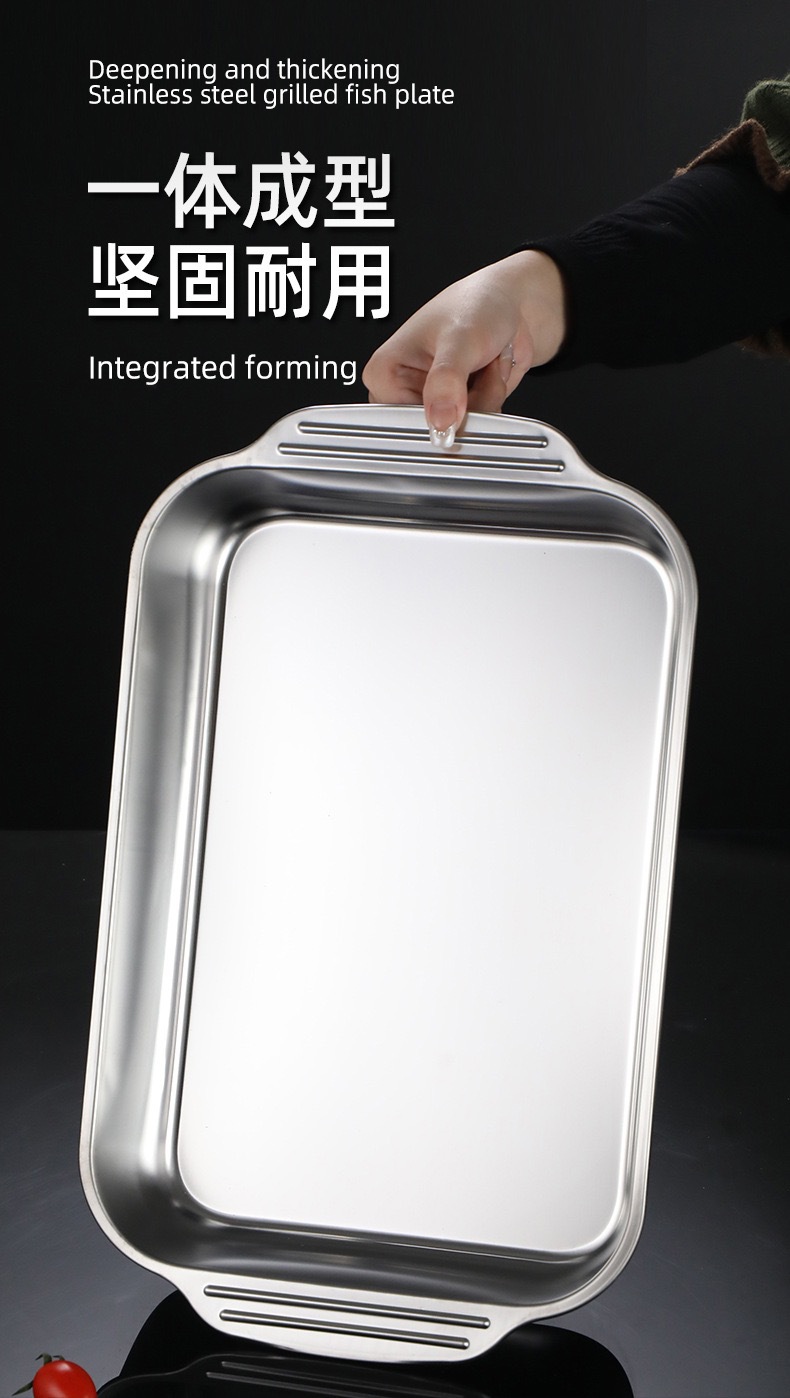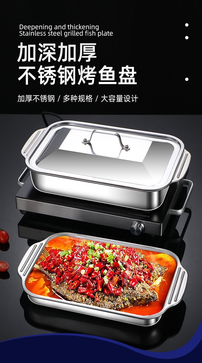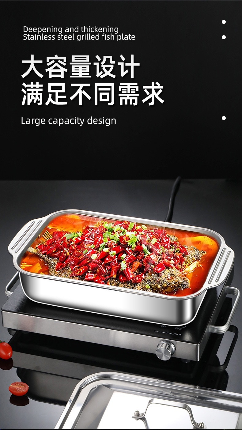 공장 핀 스테인레스 스틸 깊어진 피쉬 플레이트 랍스터 플레이트 직사각형 트레이 유도 쿠커 바베큐 플레이트 플랫 하단 플레이트 생선 스토브