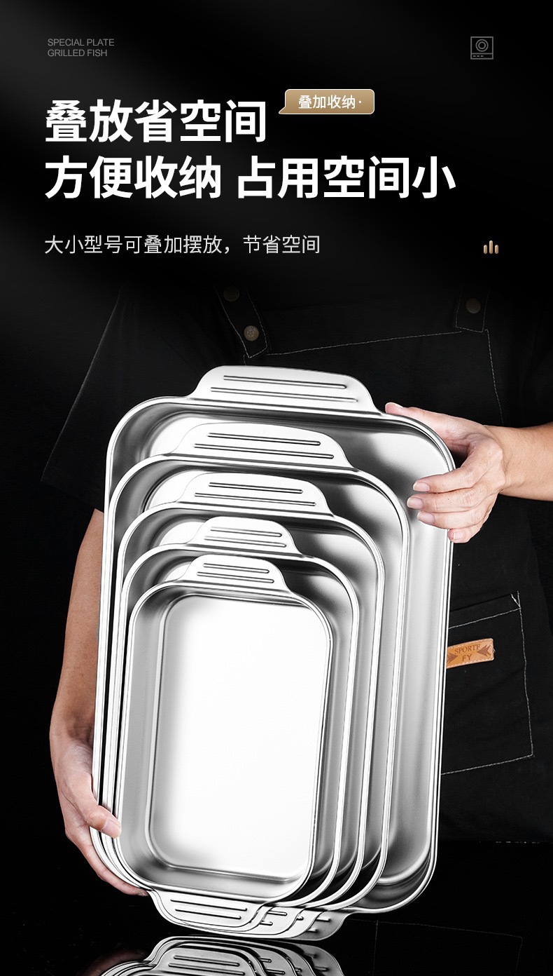 공장 핀 스테인레스 스틸 깊어진 피쉬 플레이트 랍스터 플레이트 직사각형 트레이 유도 쿠커 바베큐 플레이트 플랫 하단 플레이트 생선 스토브스토어 가기