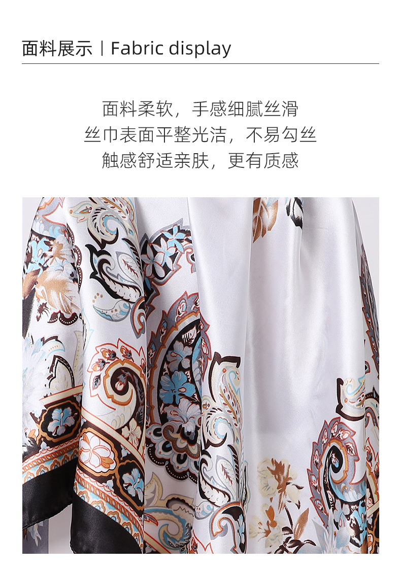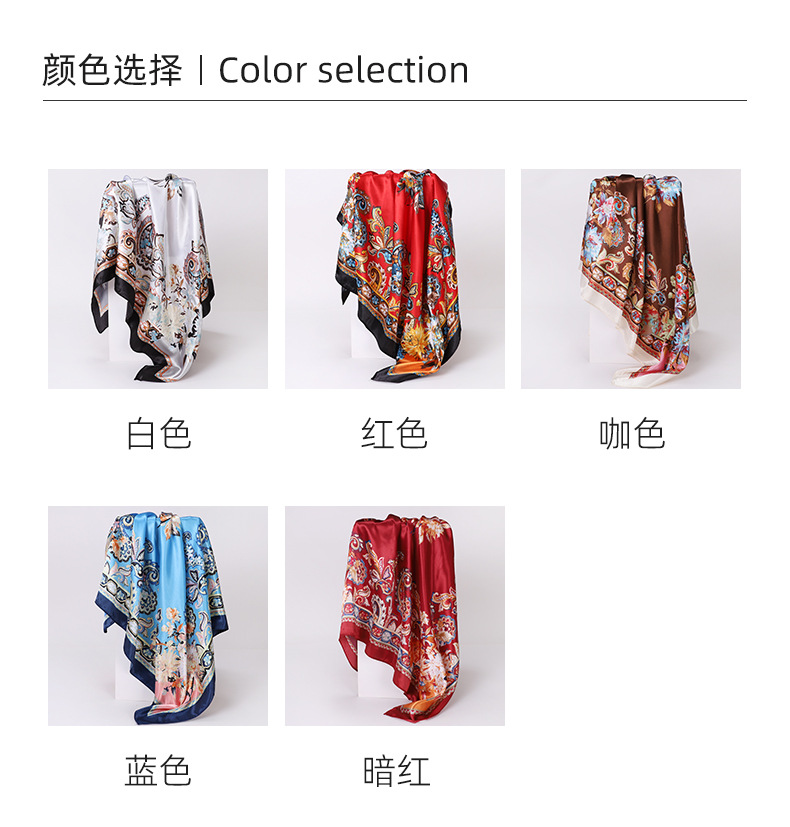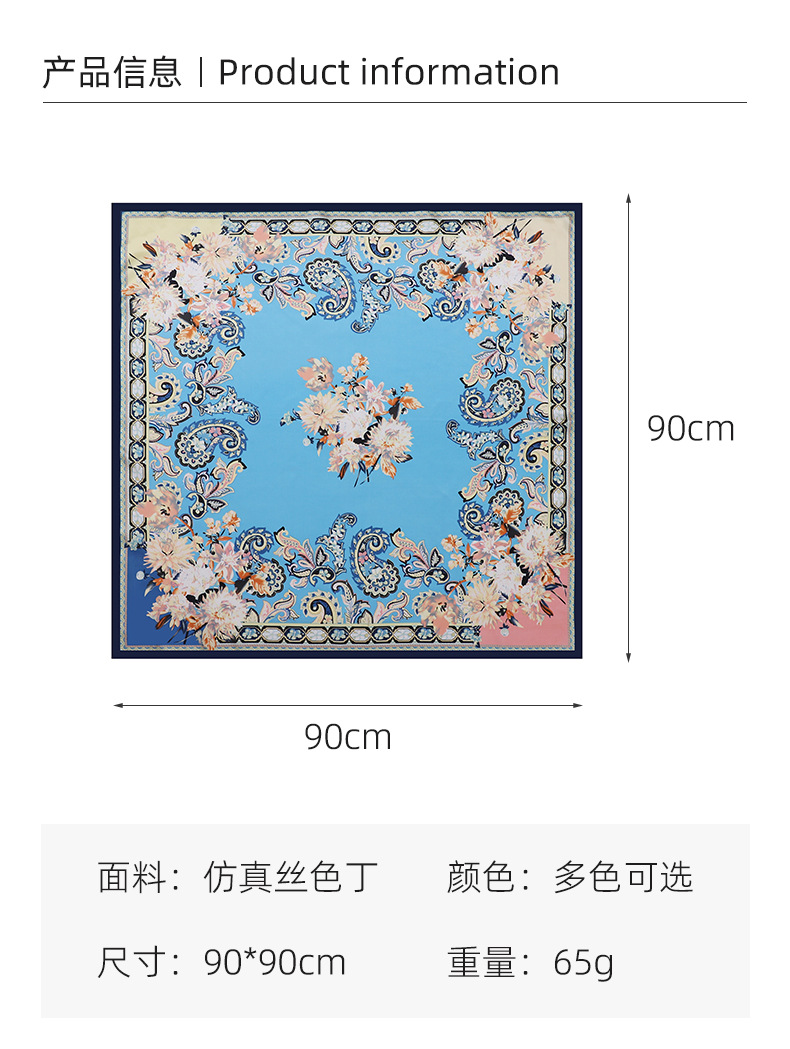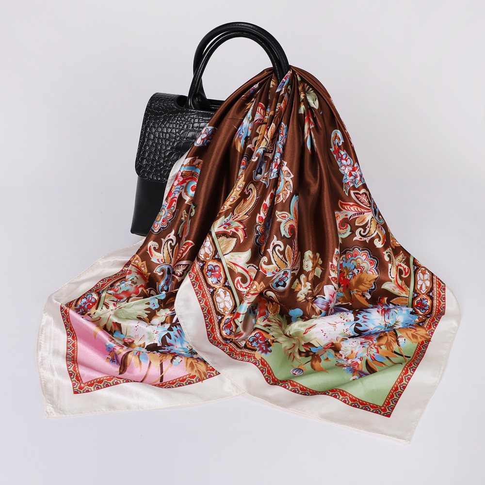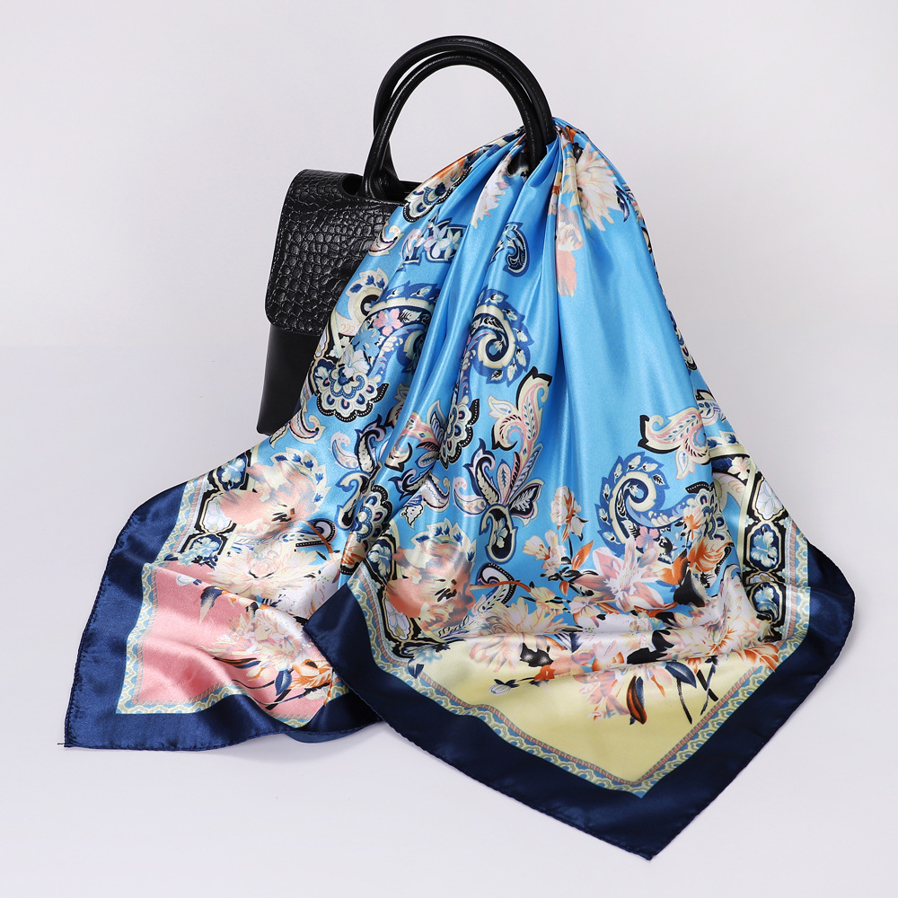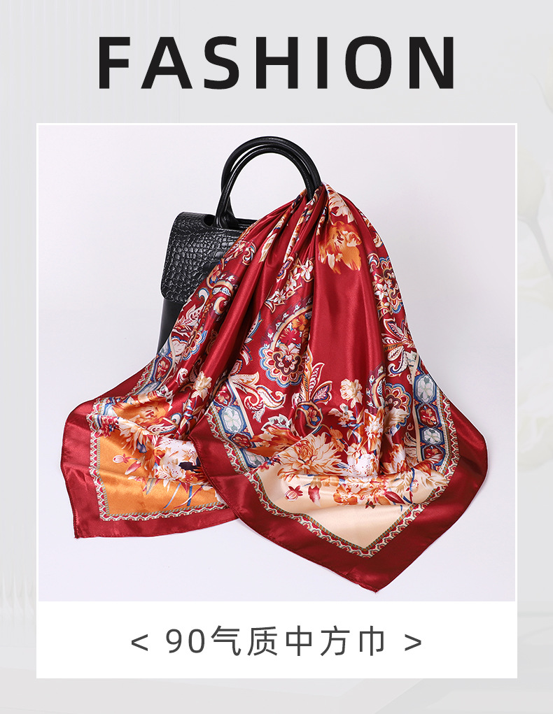 90cm 컬러 헤드 스카프 유럽과 미국의 크로스 보더 프린트 스퀘어 스카프 여성 기질 모조 실크 스카프 목도리 스카프 도매